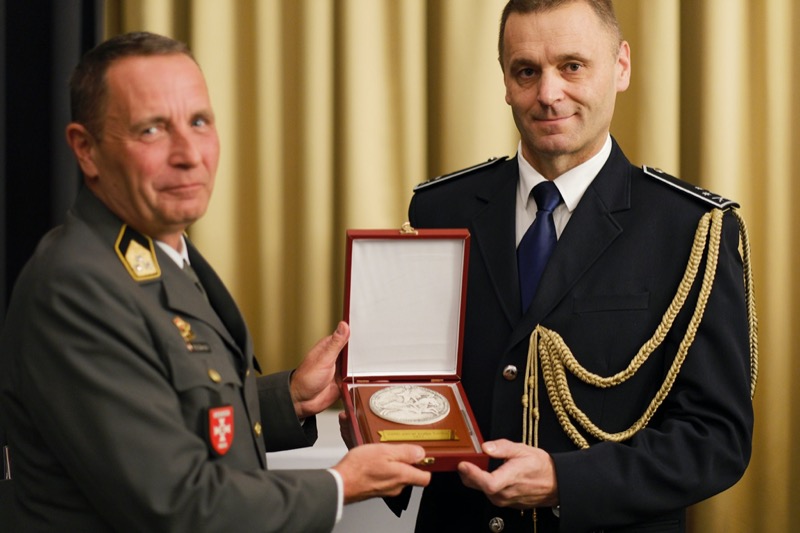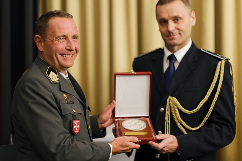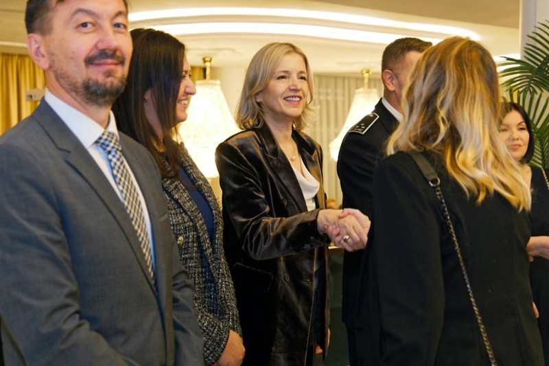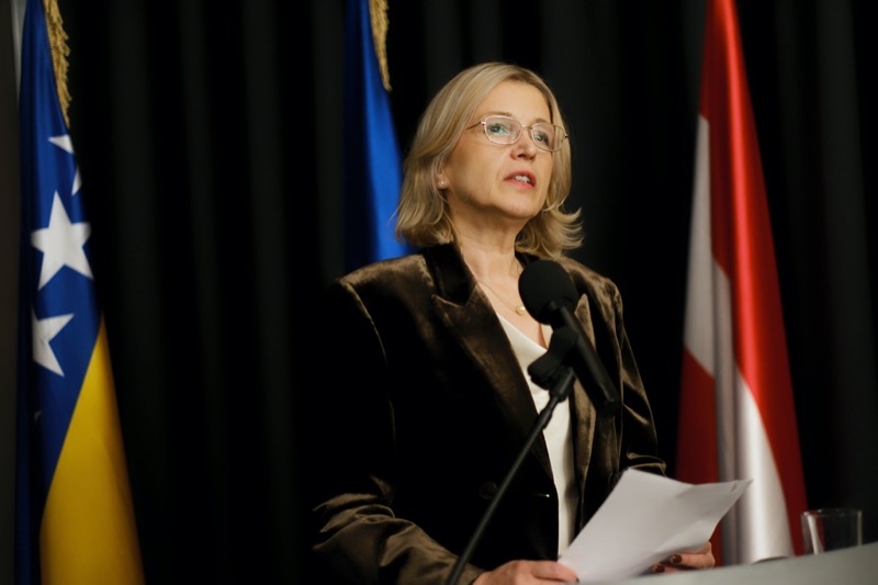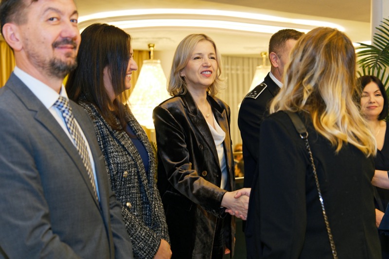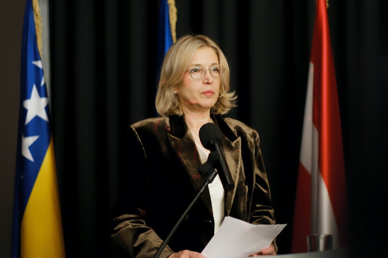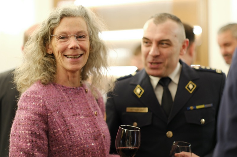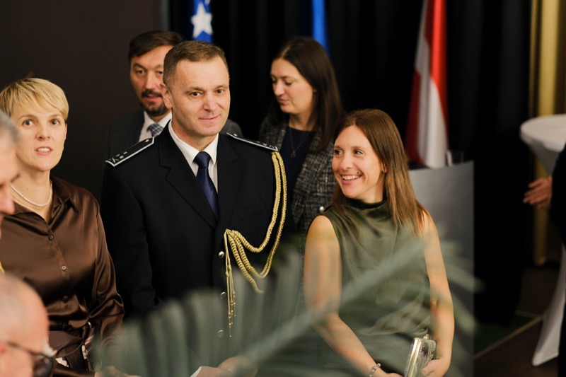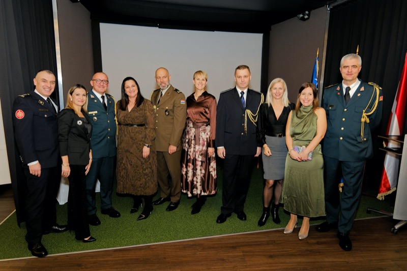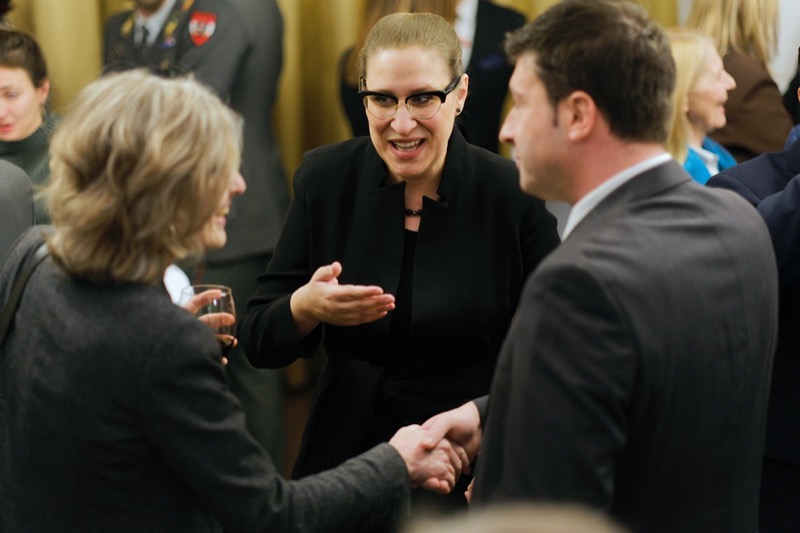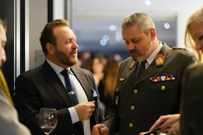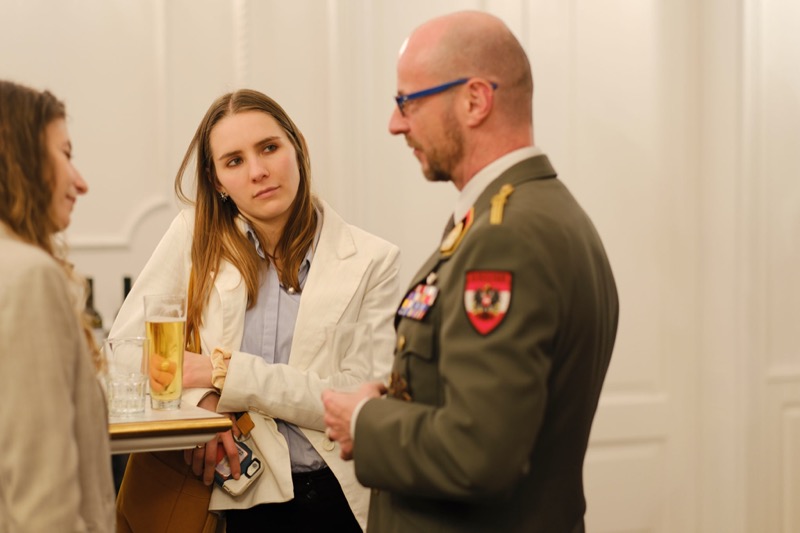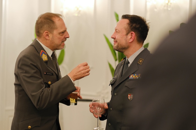 die Botschafterin und Ständige Vertreterin von Bosnien und Herzegowina bei der OSZE und den Vereinten Nationen in Wien, I.E. Danka Savić, sowie der Verteidigungsattaché von Bosnien und Herzegowina und Militärberater der Ständigen Vertretung von Bosnien und Herzegowina bei der OSZE und den Vereinten Nationen, Oberst Herman Jerman, zu einem Empfang in das Gartenhotel Altmannsdorf.