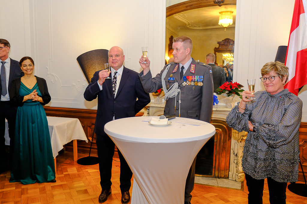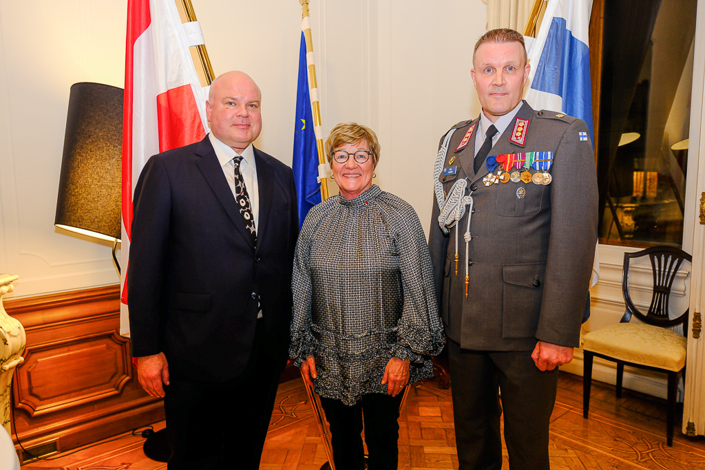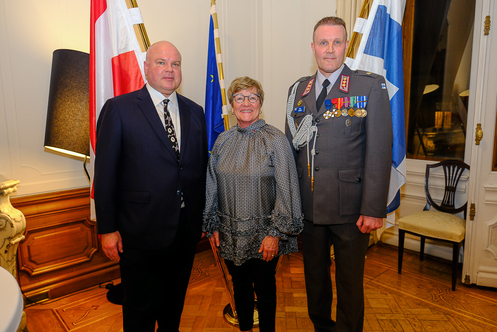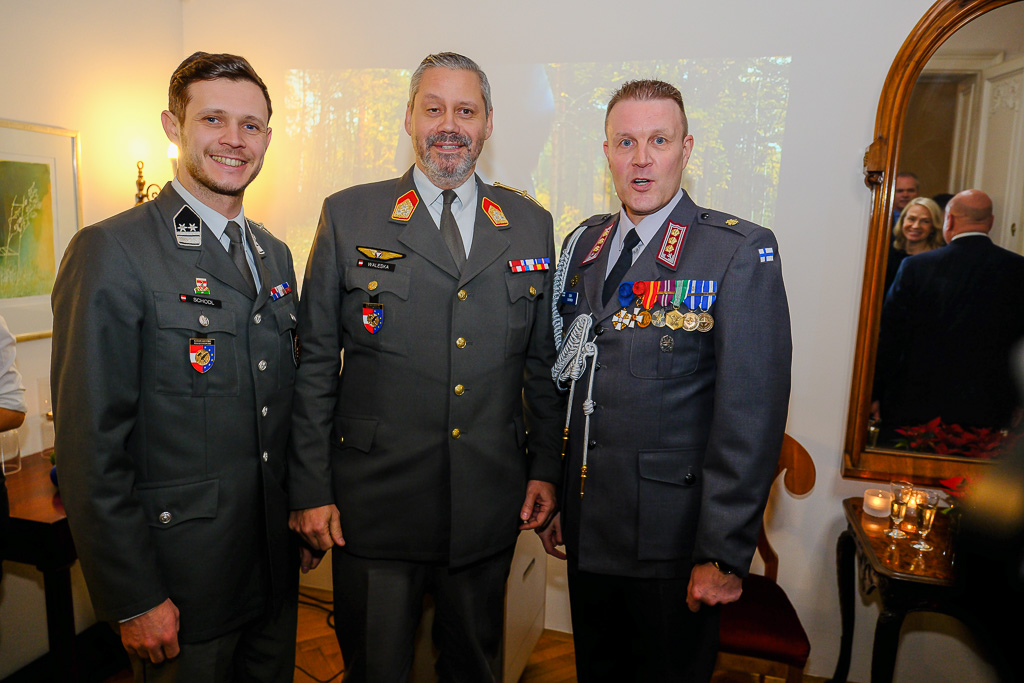 Anlässlich des Unabhängigkeitstags der Republik Finnland luden die Botschafterin Finnlands in Österreich und Ständige Vertreterin Finnlands bei den internationalen Organisationen in Wien, I. E. Frau Nina Vaskunlahti, der ständige Vertreter Finnlands bei der OSZE und Vorsitzende des Ständigen Rates, S. E. Herr Vesa Häkkinen, sowie der Verteidigungsattaché Oberst Tero Savonen zu einem Empfang in die Residenz der Botschafterin.