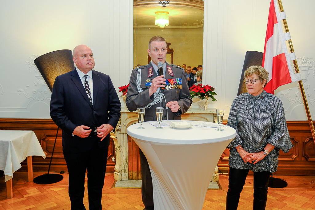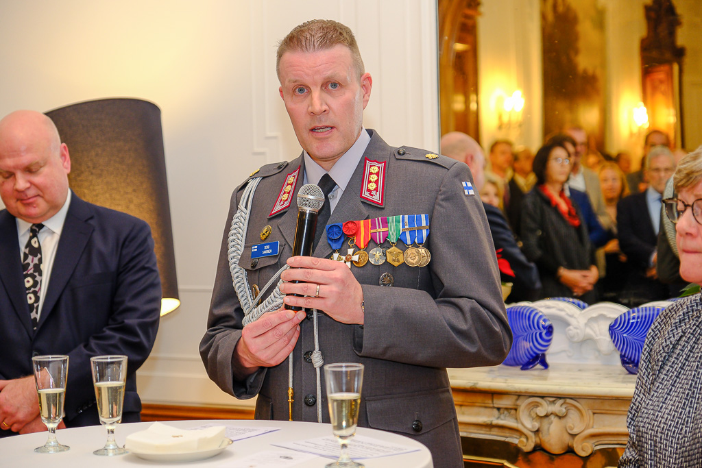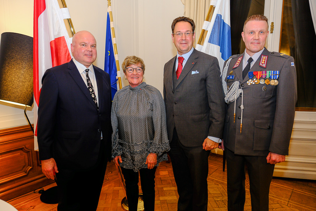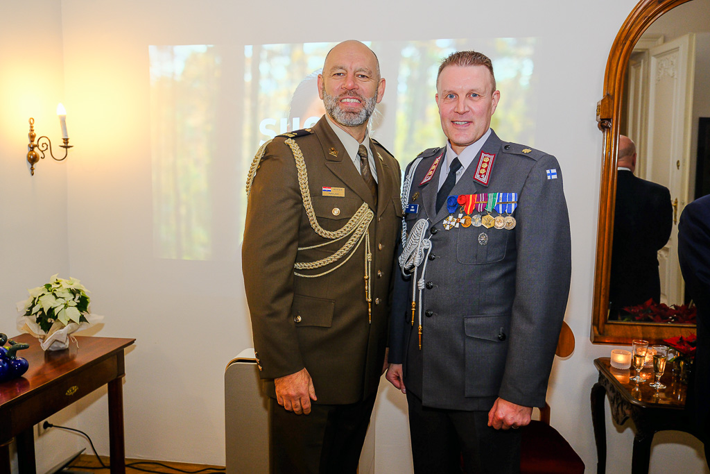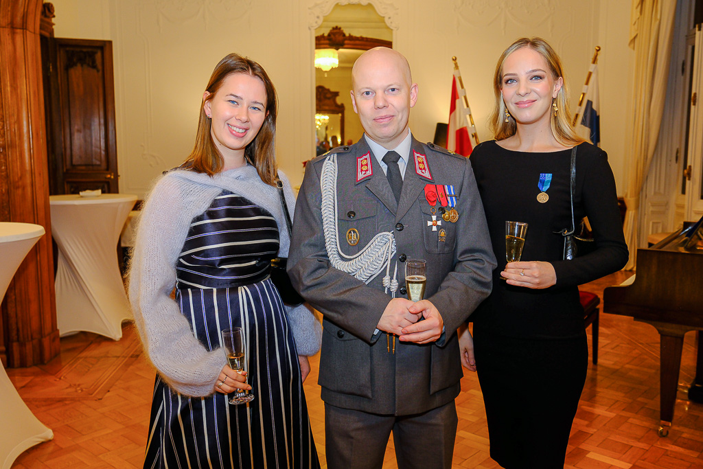 Anlässlich des Unabhängigkeitstags der Republik Finnland luden die Botschafterin Finnlands in Österreich und Ständige Vertreterin Finnlands bei den internationalen Organisationen in Wien, I. E. Frau Nina Vaskunlahti, der ständige Vertreter Finnlands bei der OSZE und Vorsitzende des Ständigen Rates, S. E. Herr Vesa Häkkinen, sowie der Verteidigungsattaché Oberst Tero Savonen zu einem Empfang in die Residenz der Botschafterin.