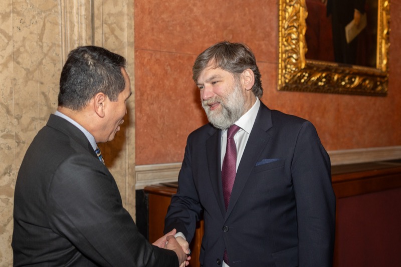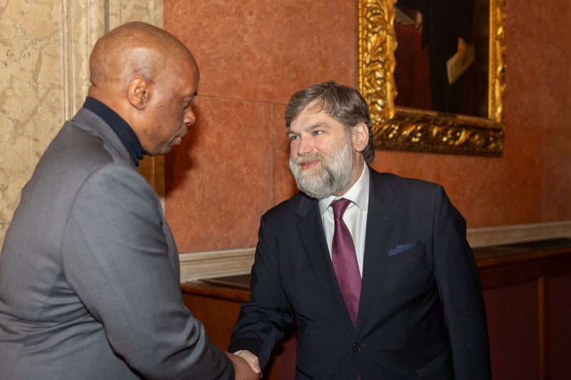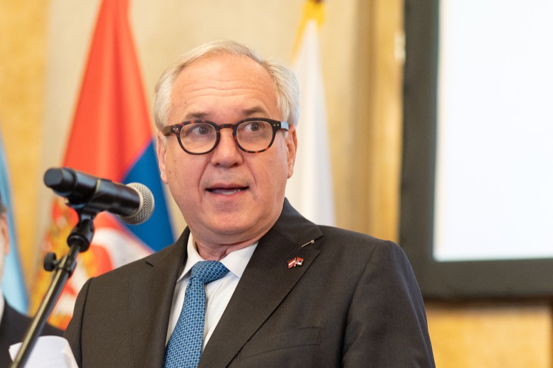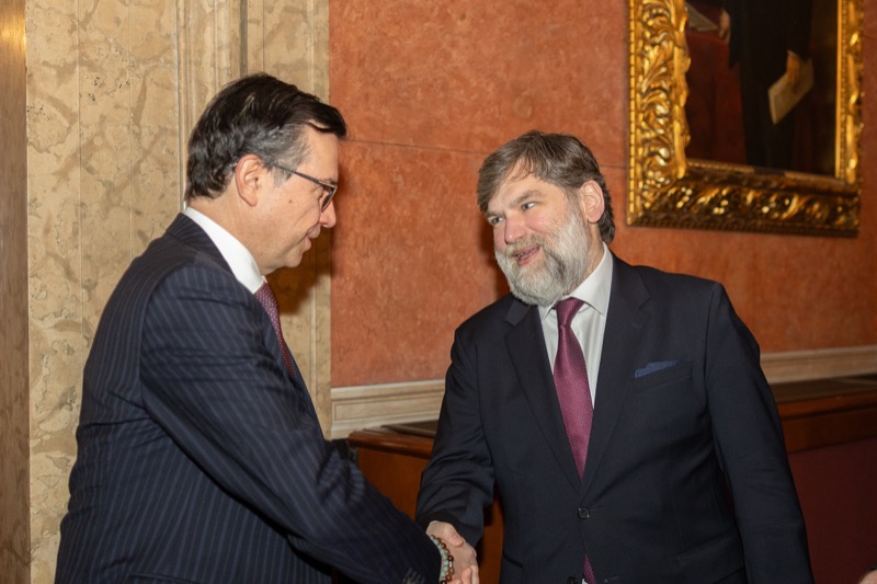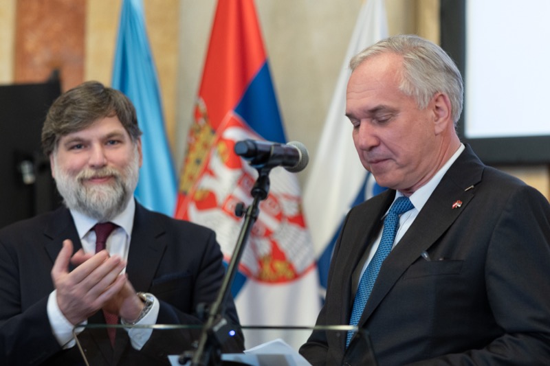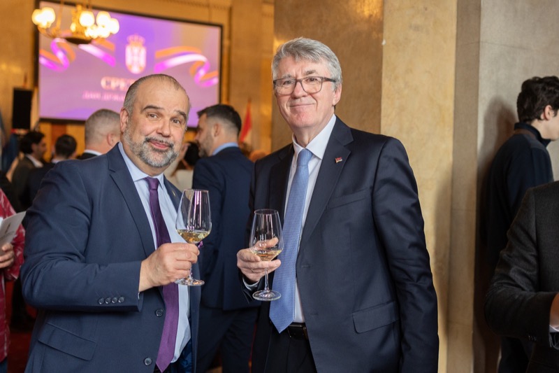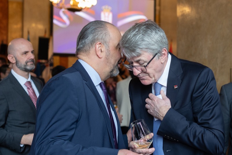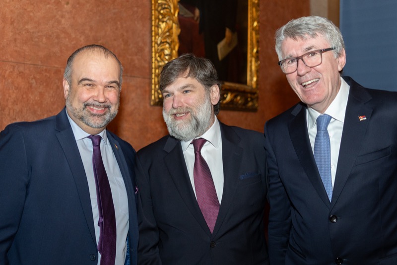 S. E. Marko Blagojević, Botschafter der Republik Serbien in der Republik Österreich, und S. E. Žarko Obradović, Ständiger Vertreter der Republik Serbien bei der OSZE und anderen Internationalen Organisationen, luden anlässlich des Nationalfeiertages und des Tages der serbischen Streitkräfte zu einem Empfang in die Wieder Börsensäle.