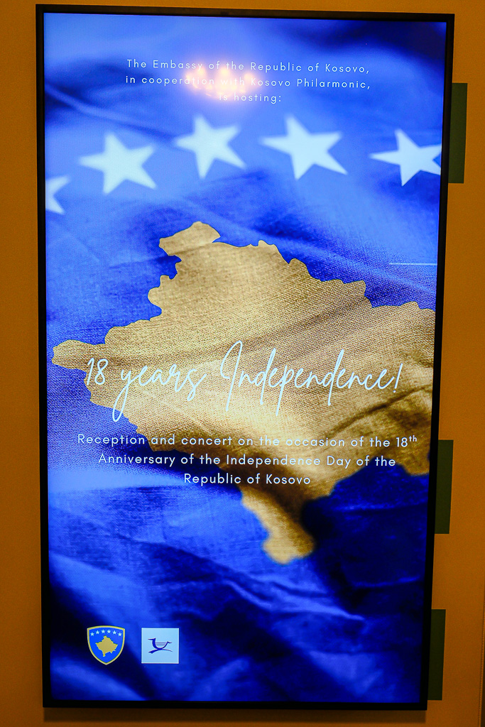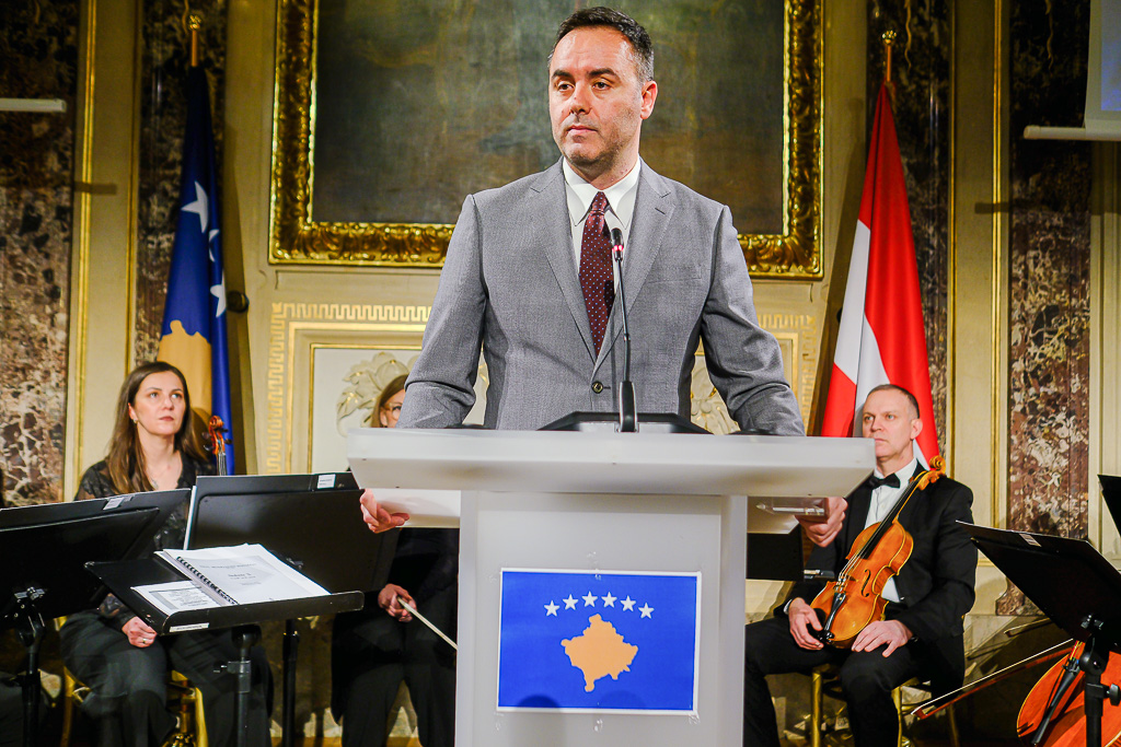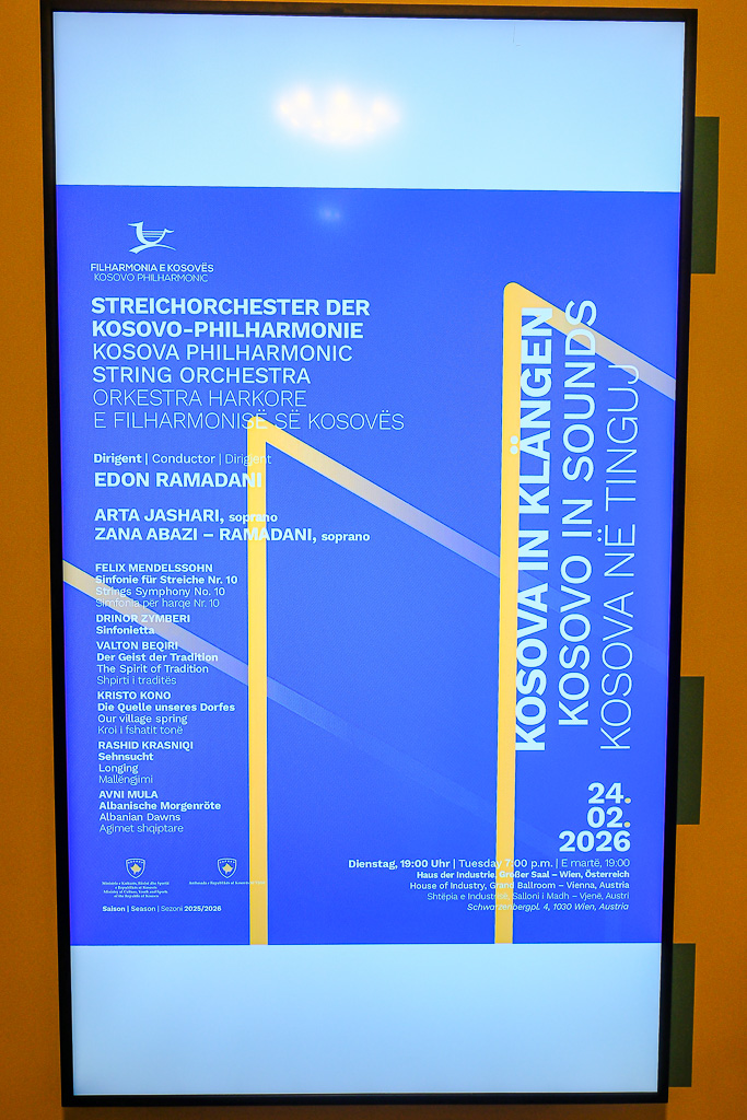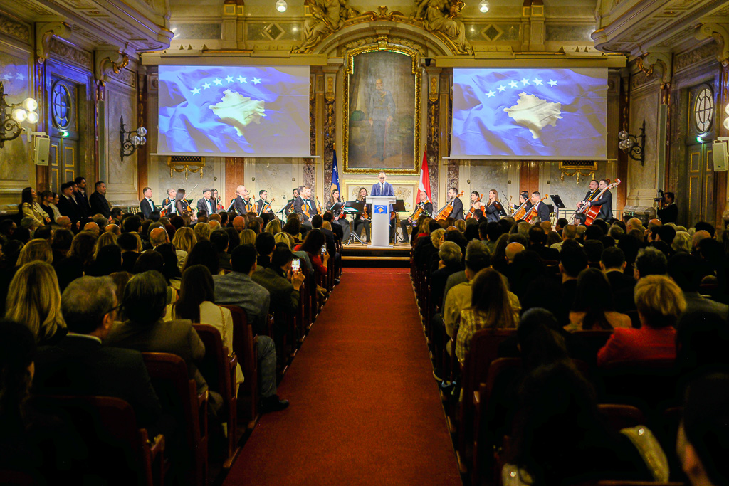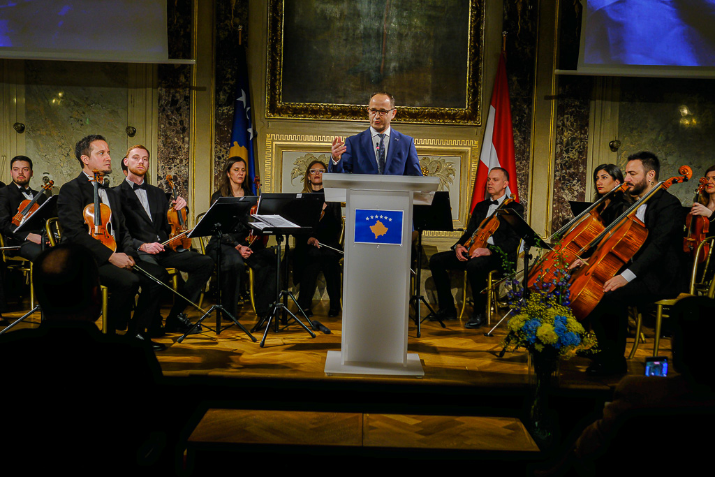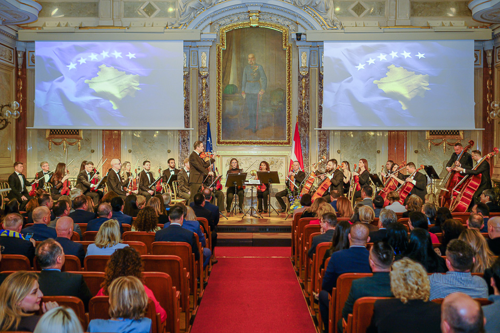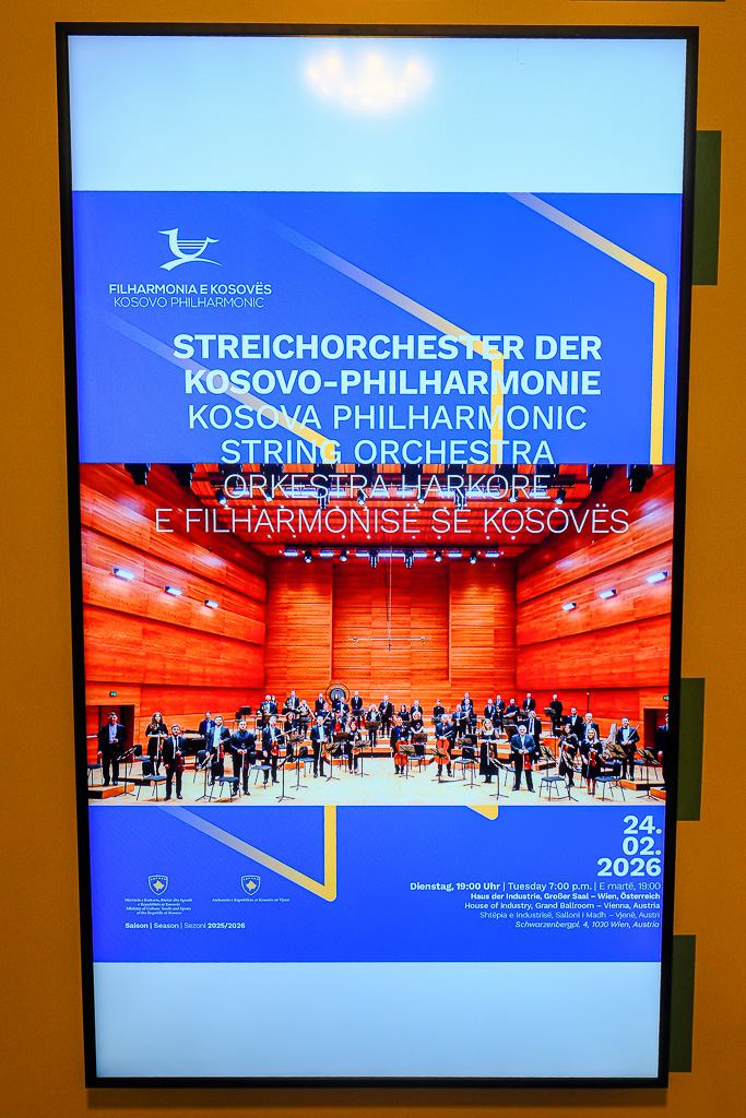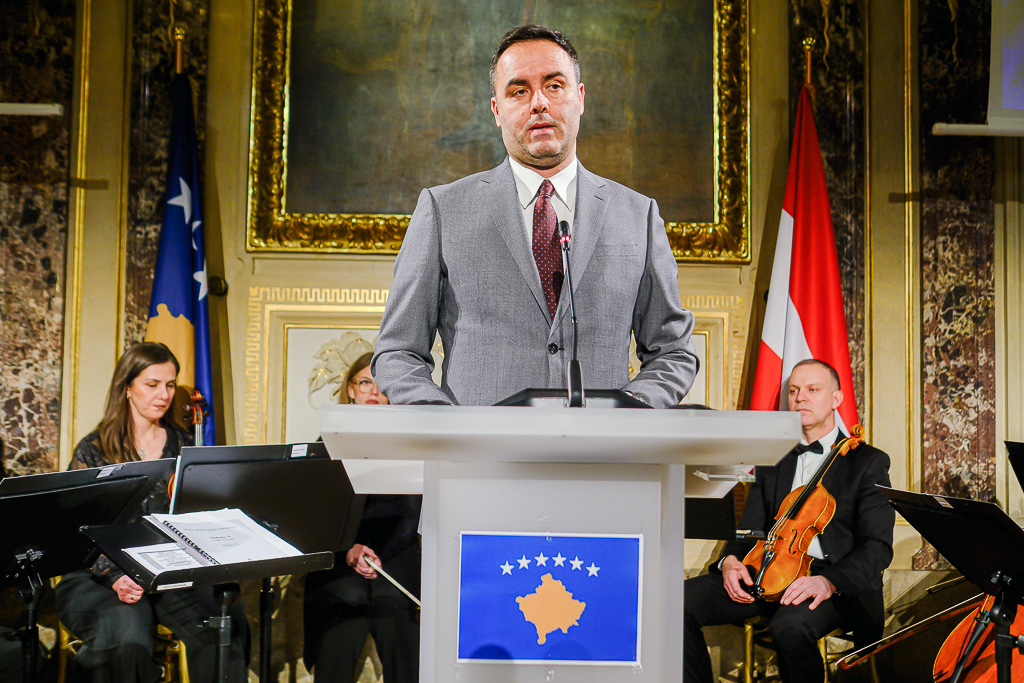 Albinot Bimbashi, Chargé d'Affaires a.i. der Botschaft der Republik Kosovo in Österreich, lud anlässlich des 18. Unabhängigkeitstages der Republik Kosovo zu einem Empfang und Konzert der Kosovo Philharmonie unter dem Motto "Kosovo in Sounds" in das Haus der Industrie.