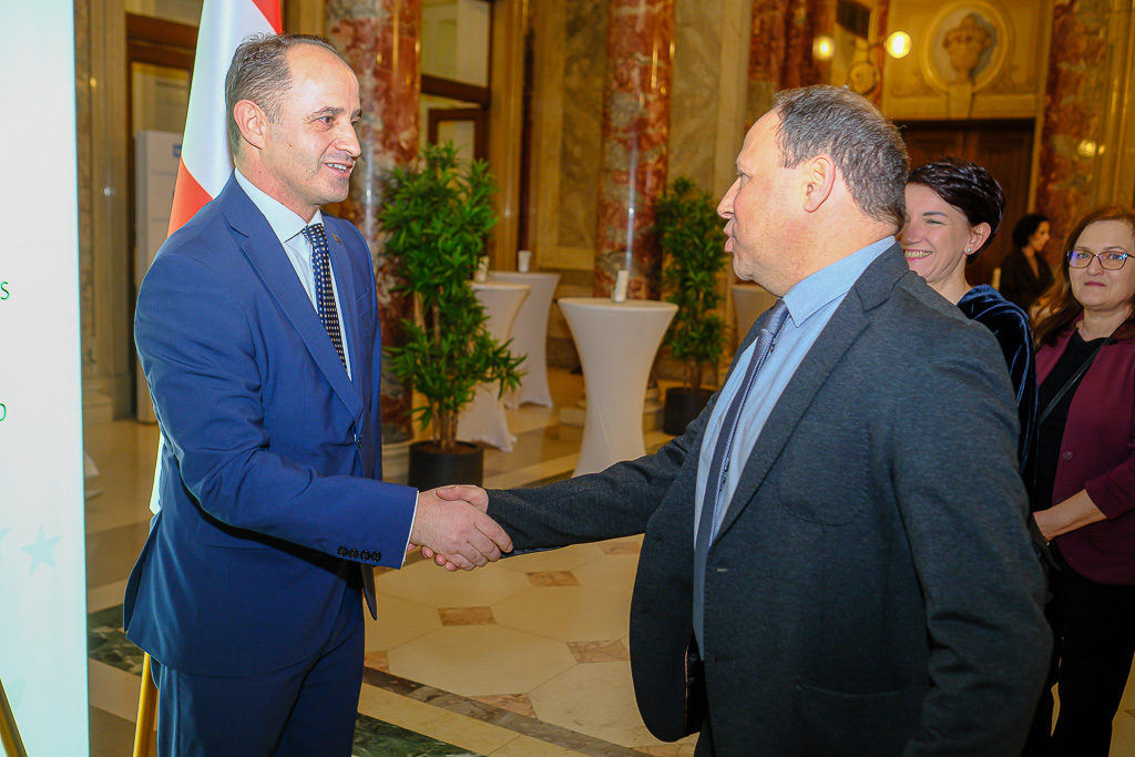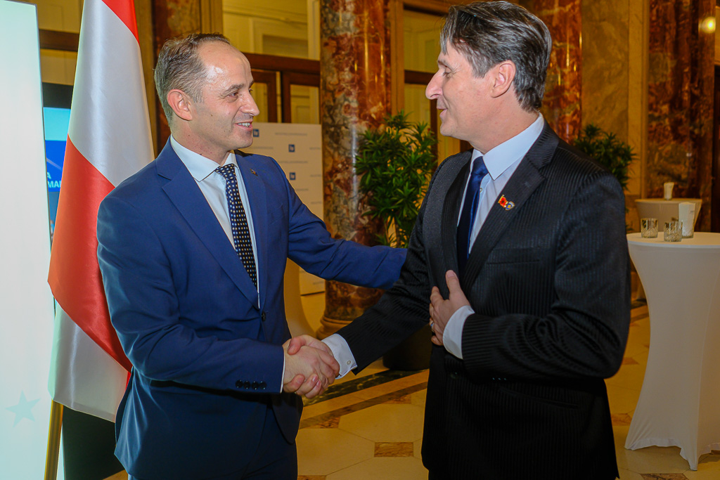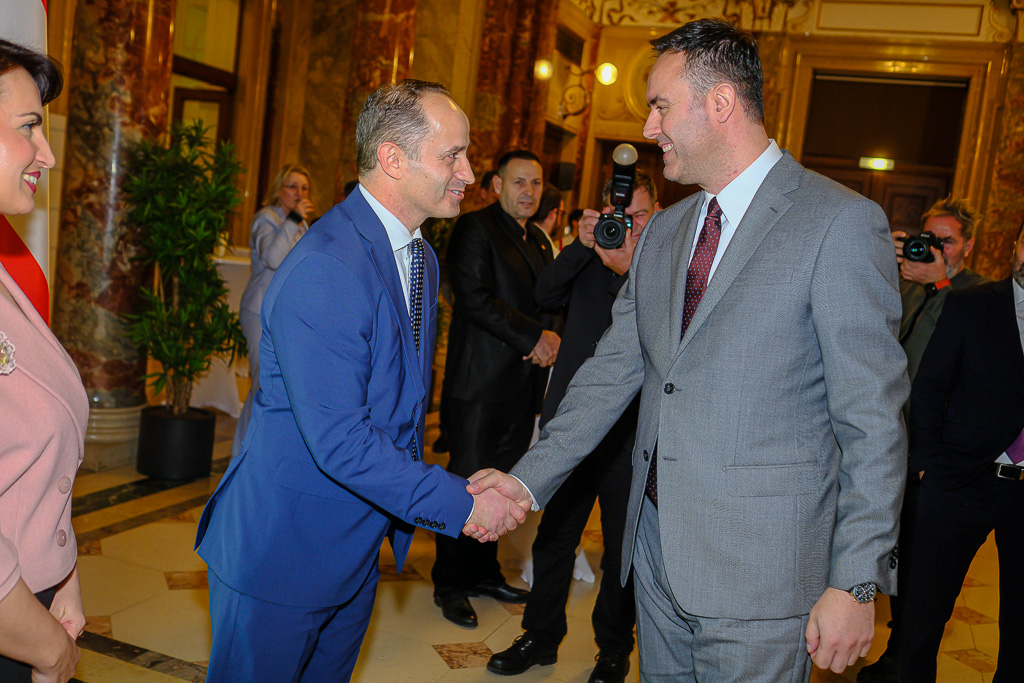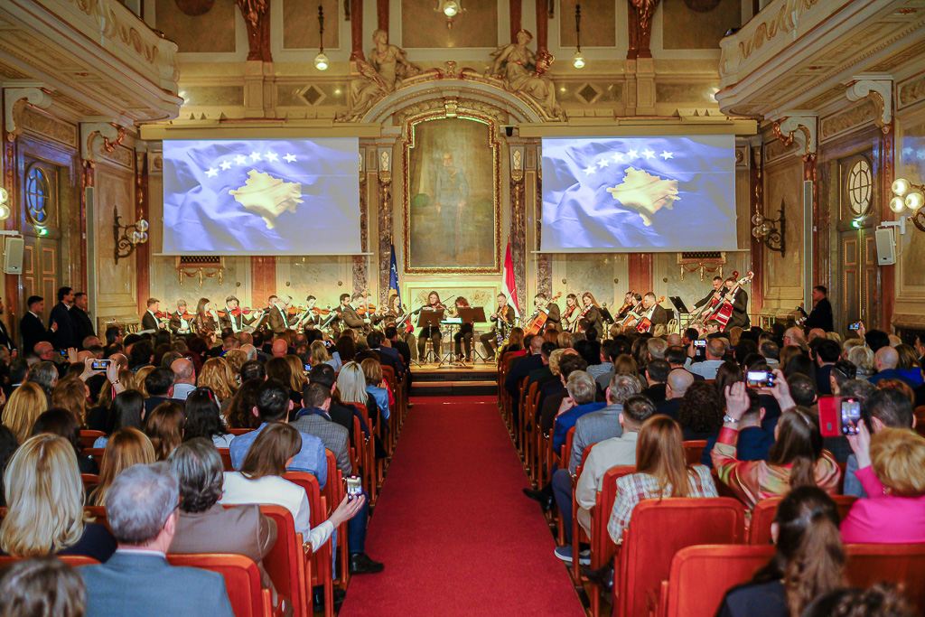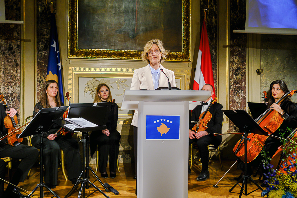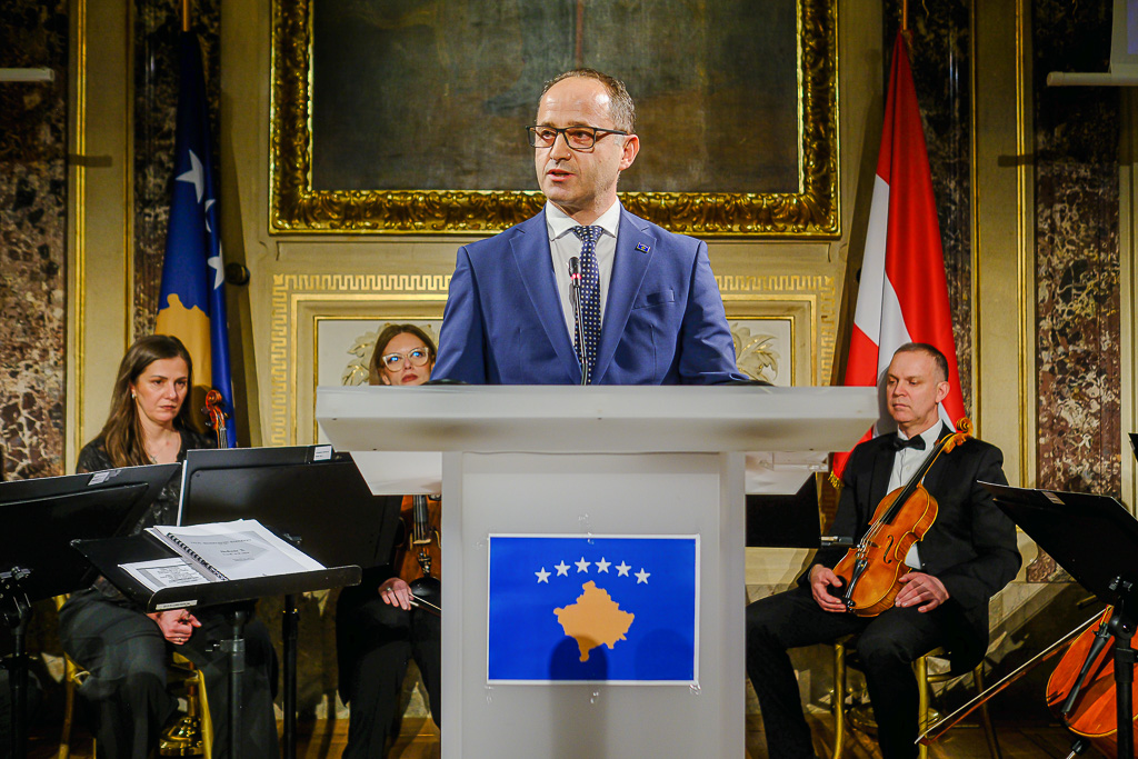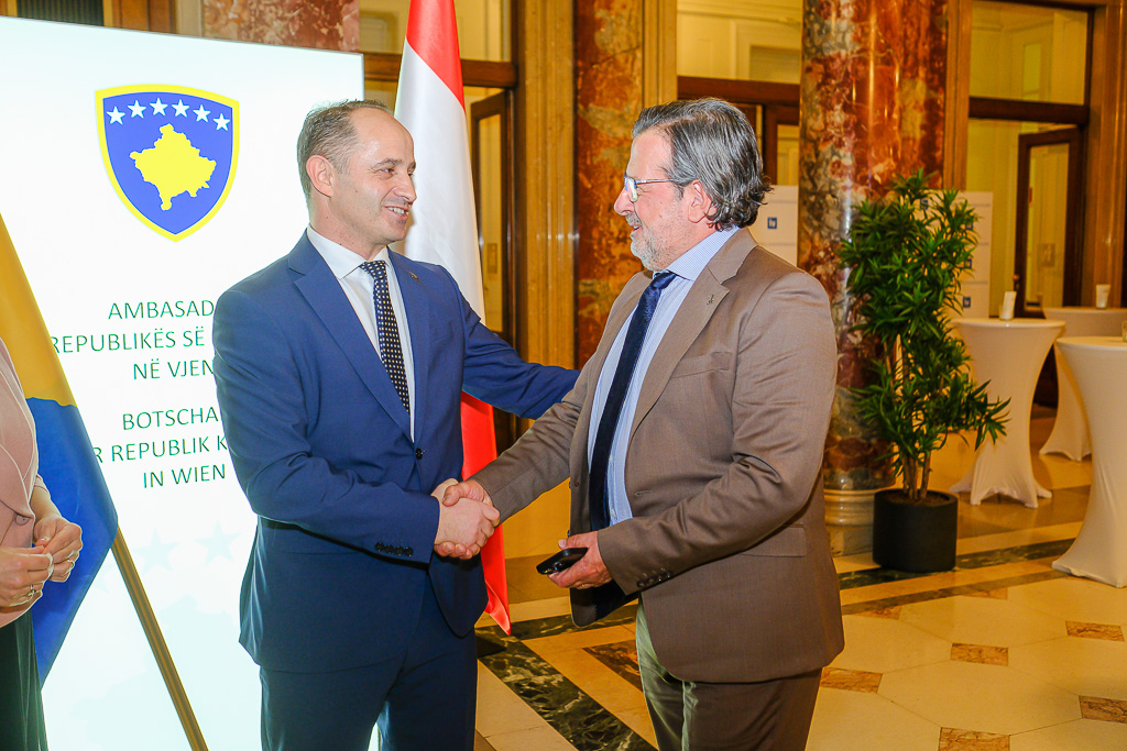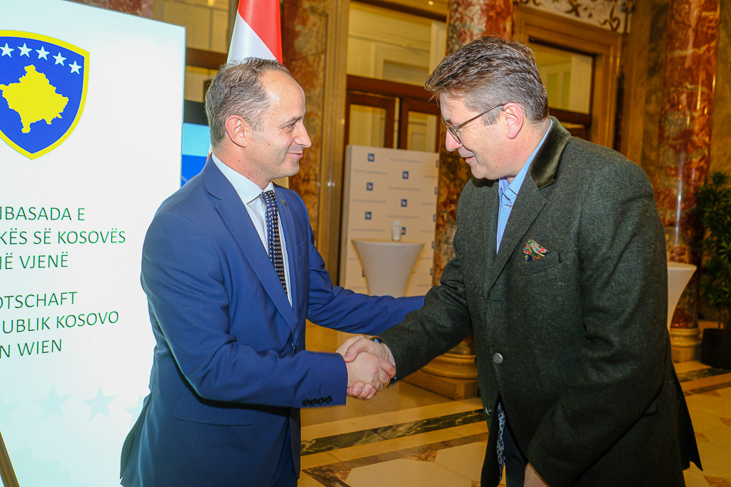 Albinot Bimbashi, Chargé d'Affaires a.i. der Botschaft der Republik Kosovo in Österreich, lud anlässlich des 18. Unabhängigkeitstages der Republik Kosovo zu einem Empfang und Konzert der Kosovo Philharmonie unter dem Motto "Kosovo in Sounds" in das Haus der Industrie.