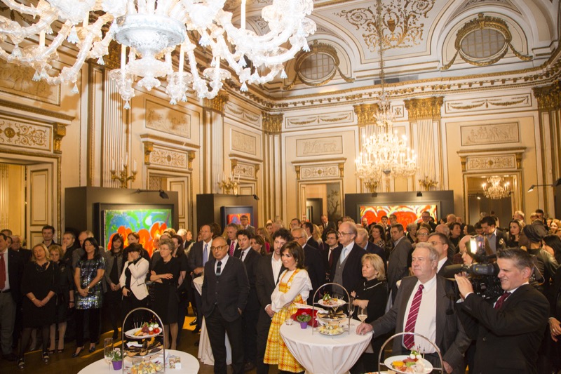 Der italienische Botschafter, S.E. Giorgio Marrapodi, begrüsste rund 200 Gäste aus Politik, Kunst, Kultur und Wirtschaft zur Vernissage des Triester Kaffee-Doyens Martino Zanetti im Palais Metternich. Unter dem Titel “Colours” stellt Zanetti erstmals seine großformatigen Kunstwerke einem breiten Publikum in Österreich vor. Neben der Ausstellung, die bis 17. Februar am Rennweg gegen Voranmeldung zu sehen ist, dienten drei dekorative Bilder als Vorbild für die Kunst-Damenspende am diesjährigen Ball der Wiener Kaffeesieder: Kunst-Fächer werden den anwesenden Ballgästen zur Verfügung gestellt, um nicht nur Abkühlung zu schaffen, sondern vorallem auch die historische Fächersprache des 18. Jahrhundert wieder aufleben zu lassen.
