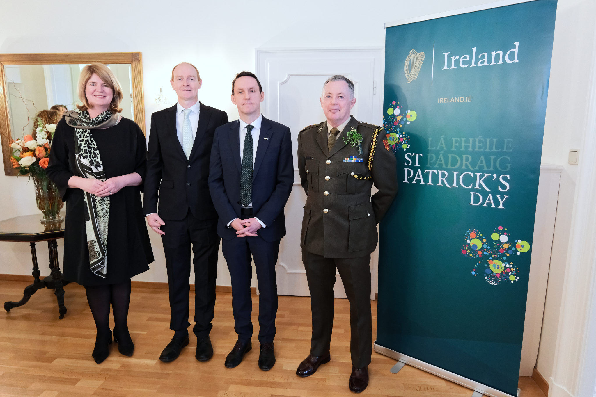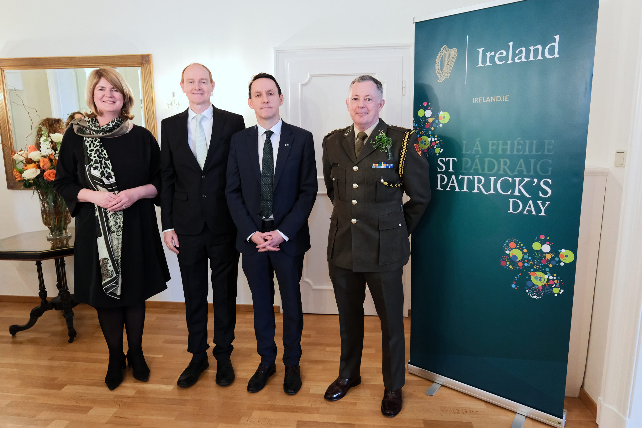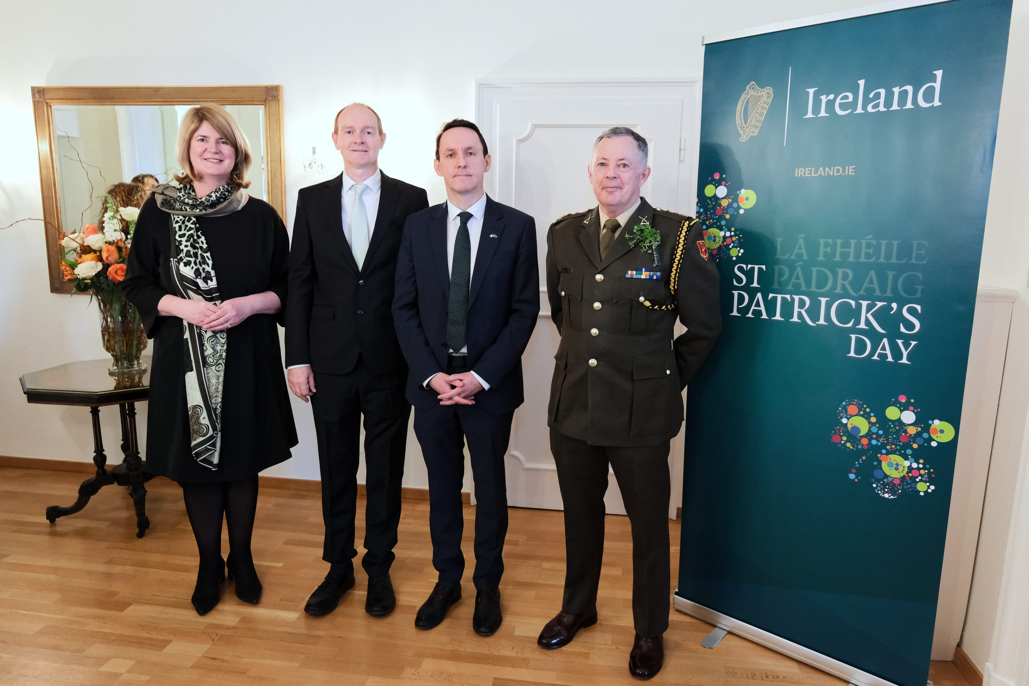 Die Botschafterin Irlands in Österreich und Ständige Vertreterin Irlands bei den Internationalen Organisationen in Wien, I. E. Barbara Cullinane, sowie der Botschafter und Ständiger Vertreter Irlands bei der OSZE, S. E. Brian Flynn, luden anlässlich des St. Patrick’s Day am 12. März zu einem Empfang in die Residenz.