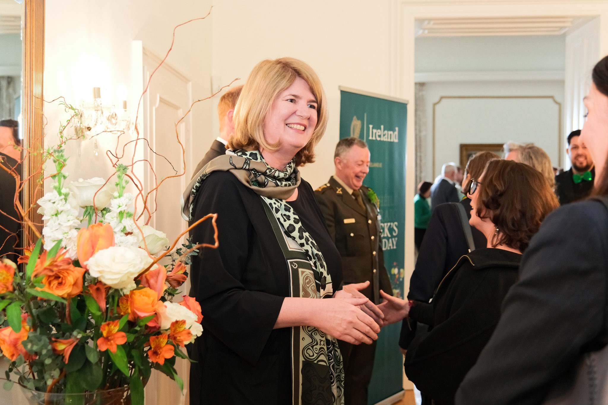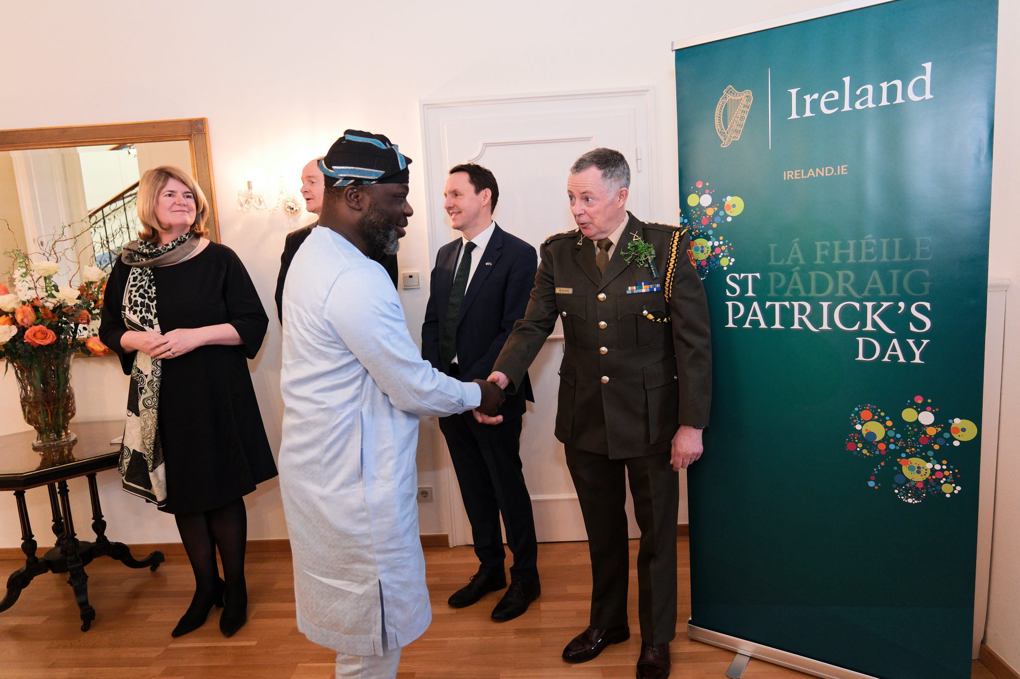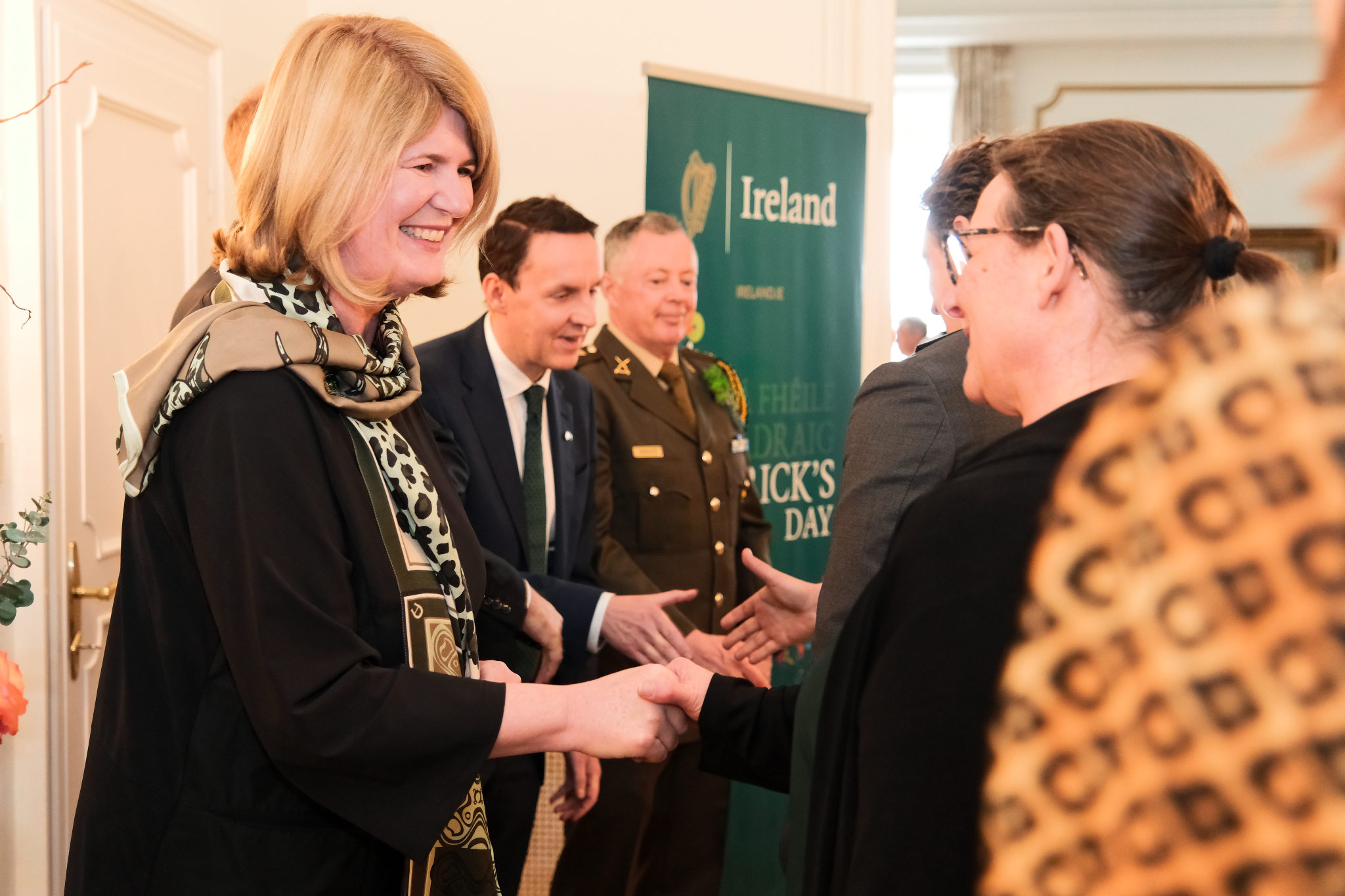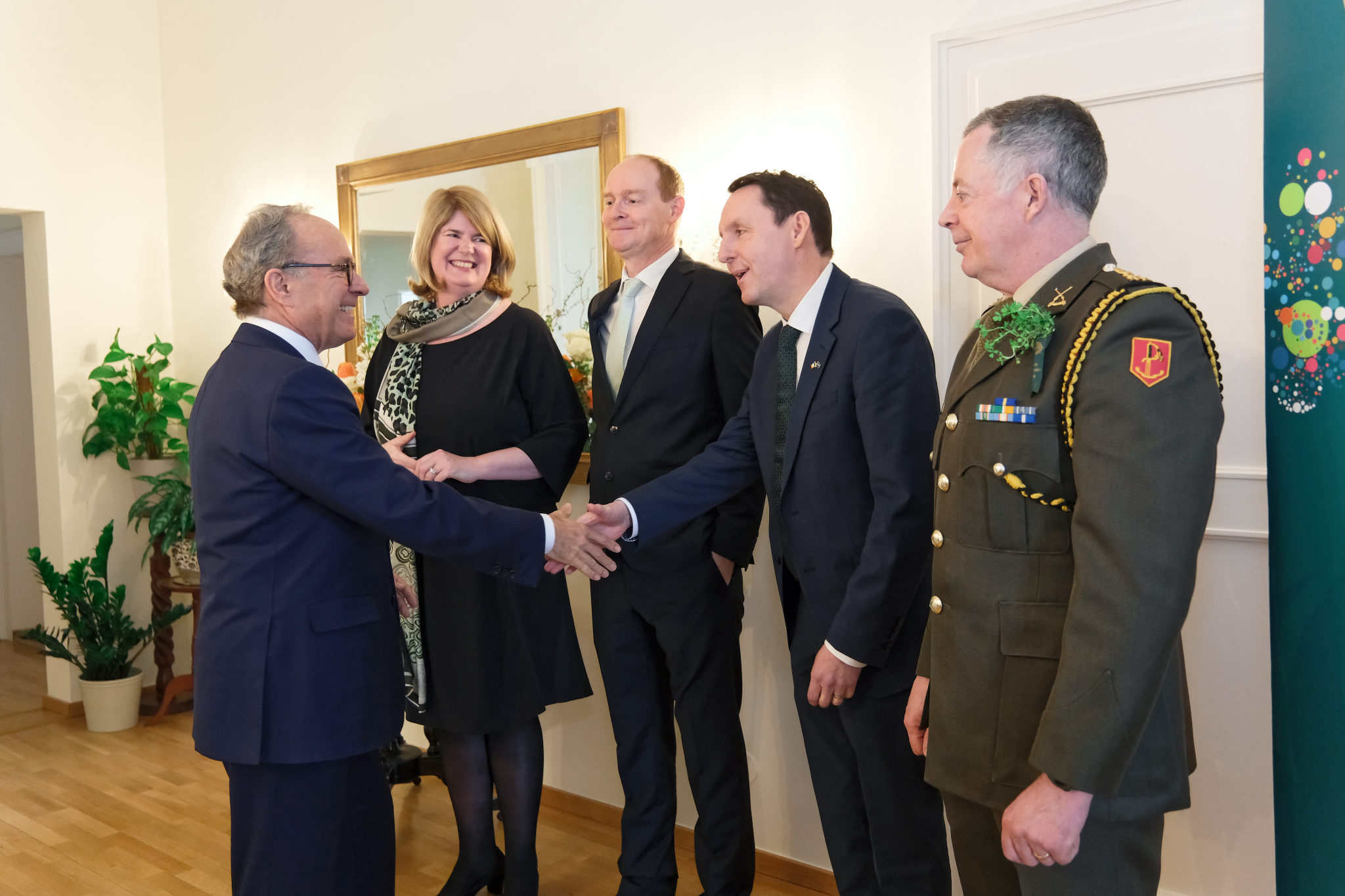 Die Botschafterin Irlands in Österreich und Ständige Vertreterin Irlands bei den Internationalen Organisationen in Wien, I. E. Barbara Cullinane, sowie der Botschafter und Ständiger Vertreter Irlands bei der OSZE, S. E. Brian Flynn, luden anlässlich des St. Patrick’s Day am 12. März zu einem Empfang in die Residenz.