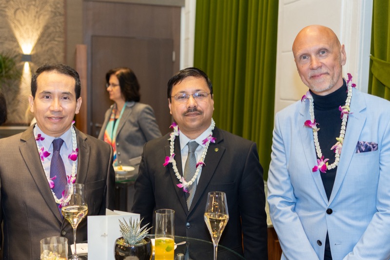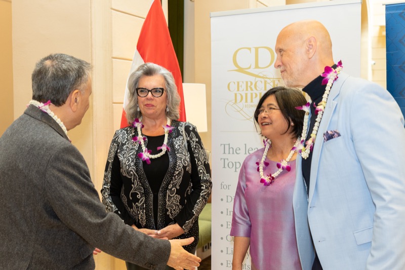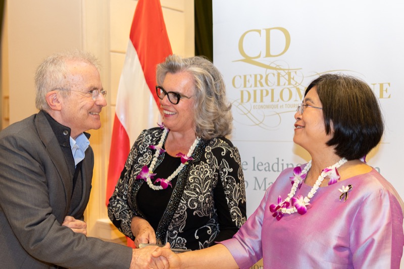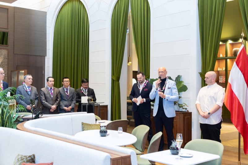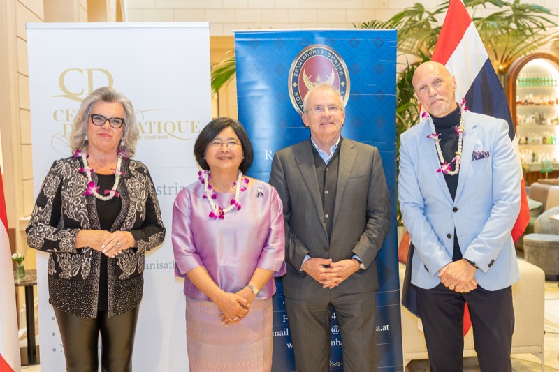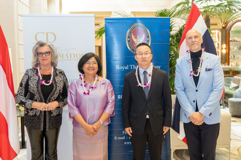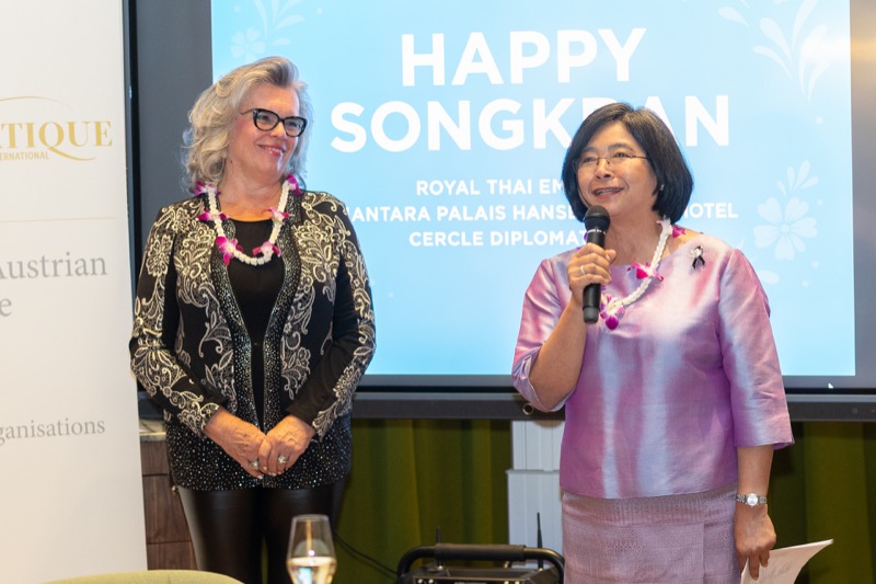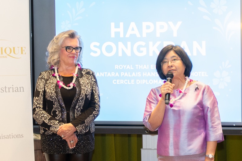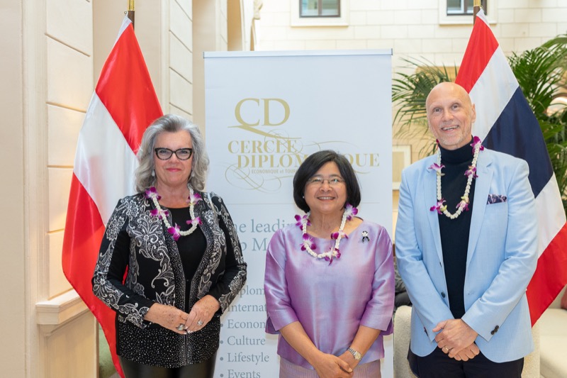 I.E. Pattarat Hongtong, Botschafterin des Königreichs Thailand in Österreich und ständige Vertreterin von Thailand bei den Vereinten Nationen und anderen Internationalen Organisationen in Wien, Andrea Fürnweger, Herausgeberin von CERCLE DIPLOMATIQUE, und Jürgen Ammerstorfer, Generaldirektor des Anantara Palais Hansen Vienna, luden erstmals anlässlich von Songkran zu einem Mittagessen mit österreichischen und thailändischen Spezialitäten in das Anantara Palais Hansen Vienna.
