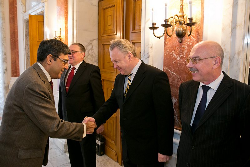 Die ständigen Vertreter der Russischen Föderation bei den internationalen Organisationen in Wien , S.E. Botschafter Vladimir Voronkov, und bei der OSZE, S.E. Botschafter Alexander Lukashevitch, sowie der Botschafter der Russischen Föderation in Österreich, S.E. Dmitry Lyubinskiy, luden anlässlich des Tages des Vaterlandsverteidigers zu Kranzniederlegungen bei den Grabstätten der gefallenen Soldaten der Roten Armee auf dem Zentralfriedhof und beim Denkmal der für die Befreiung Wiens gefallenen russischen Soldaten am Schwarzenbergplatz. Im Anschluss gab es einen Empfang in der Botschaft.