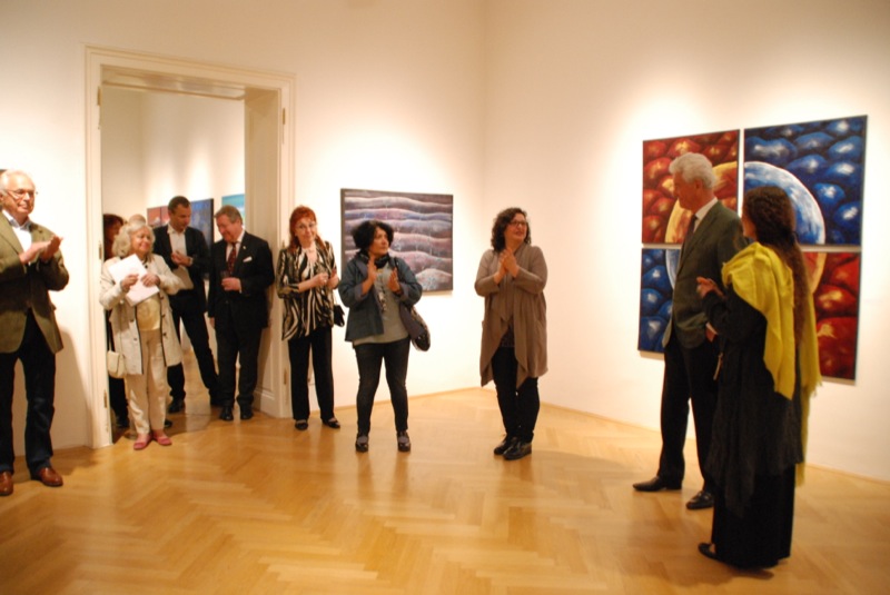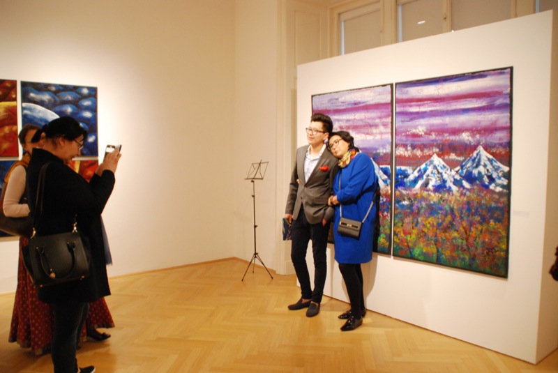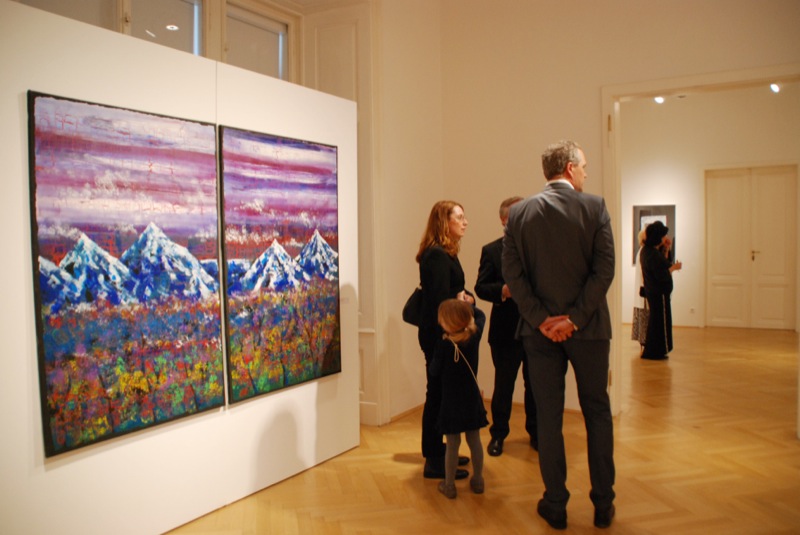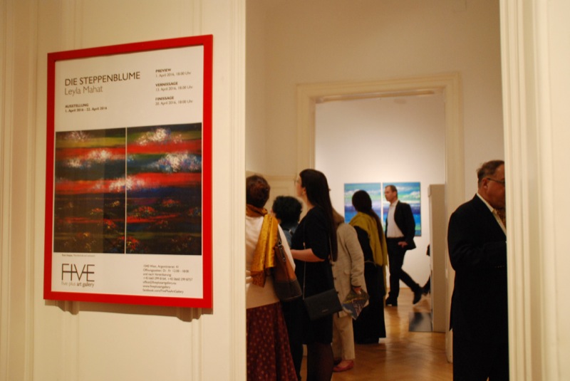 Die kasachische Künstlerin Leyla Mahat eröffnete gestern abend in der five plus art gallery in der Argentinierstrasse 41 ihre Ausstellung DIE STEPPENBLUME. Die mehrfach ausgezeichnete Künstlerin hatte schon Ausstellungen in mehreren Ländern, darunter Kasachstan, die Türkei, Russland, Japan, China, Deutschland, Singapur oder Grossbritannien.