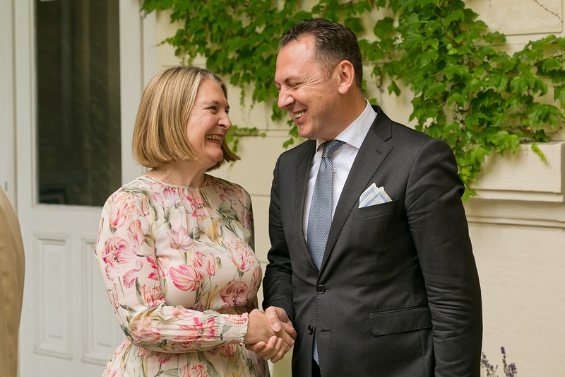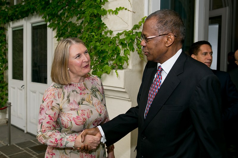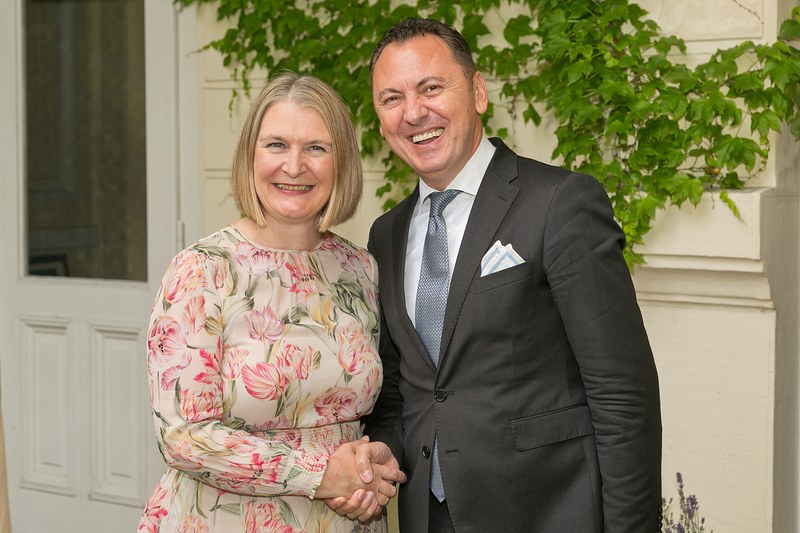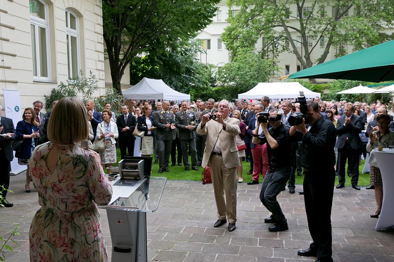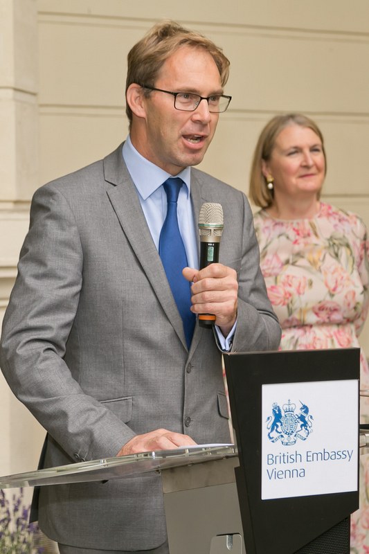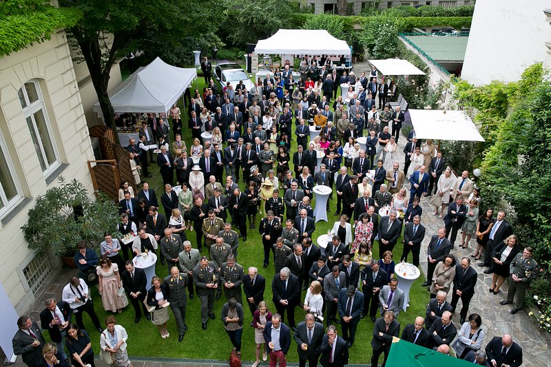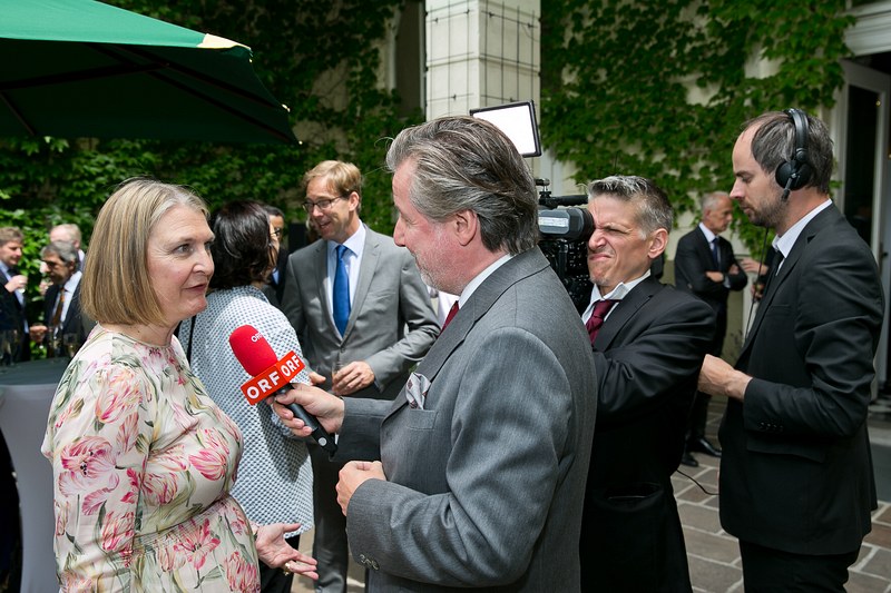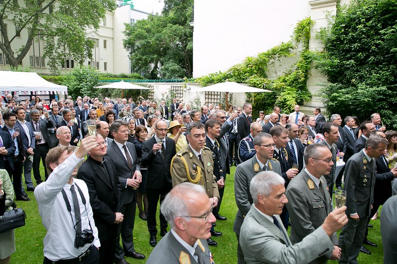 I.E. Susan le Jeune d´Allegeershecque, Botschafterin Grossbritanniens in Österreich und Ständige Vertreterin bei den Vereinten Nationen, und Sian MacLeod, Leiterin der Delegation Grossbritanniens bei der OSZE, luden zu einem Gartenfest in die Residenz der Botschafterin. Gefeiert wurde der 90. Geburtstag Ihrer Majestät, Königin Elisabeth II.