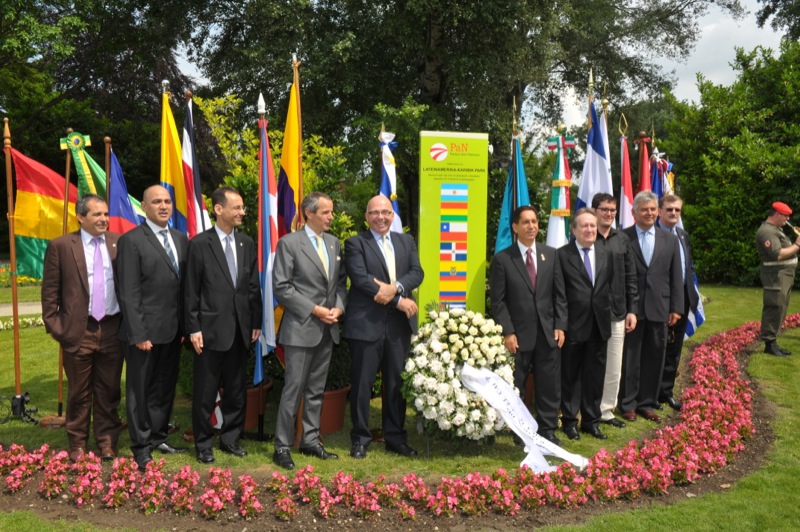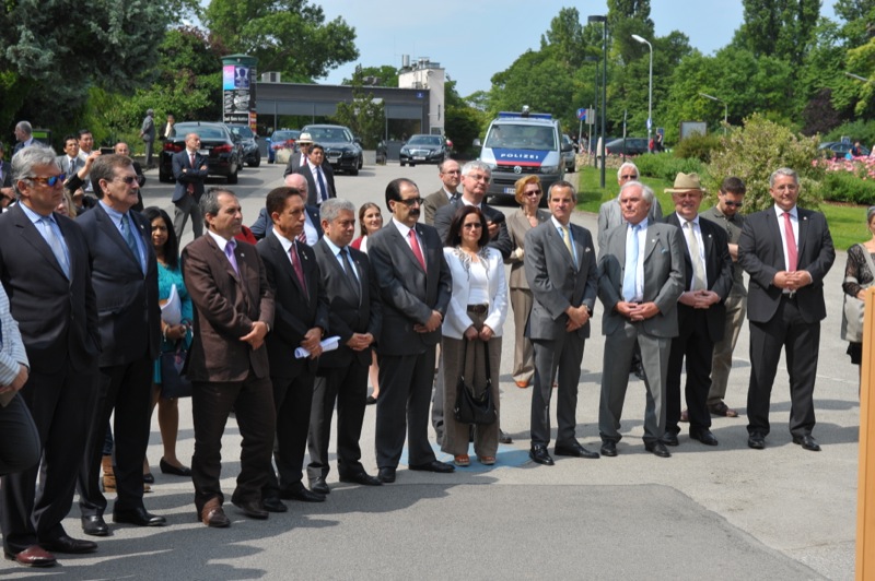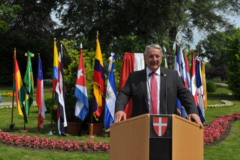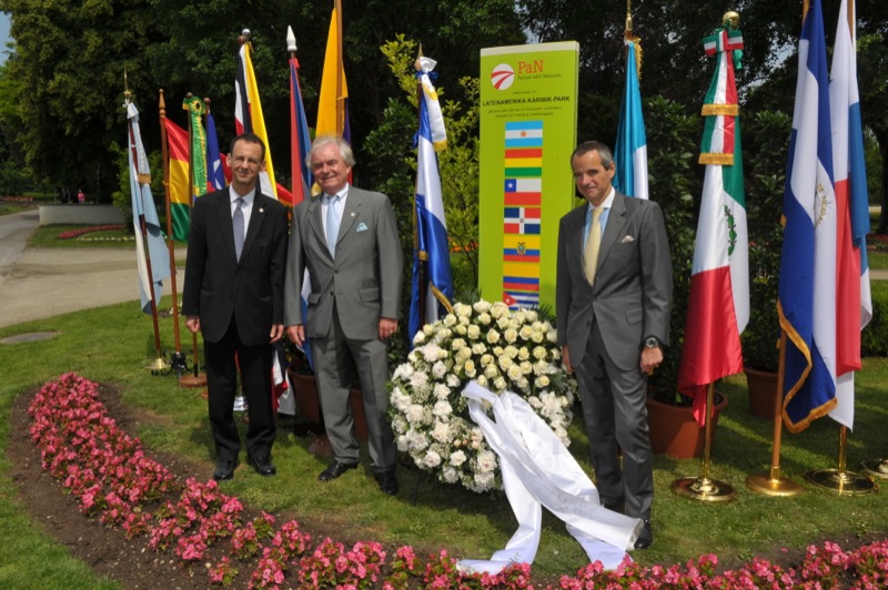 Die Magistratsdirektion der Stadt Wien, Geschäftsbereich Europa und Internationales, und der Dachverband aller österreichisch-Ausländischen Gesellschaften - PaN, luden gemeinsam zur Tafelenthüllung des "Lateinamerika-Karibik-Platzes" in den Donaupark.