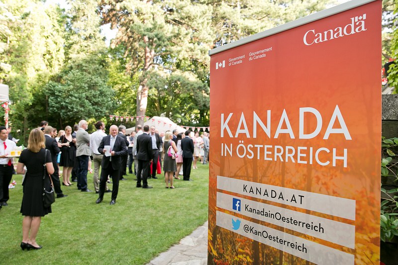 S.E. Mark Bailey, Botschafter von Kanada und ständiger Vertreter bei den internationalen Organisationen in Wien, und Frau Raja Bailey luden bei herrlichem Wetter zu einer Gartenparty, um den "Canada Day" gebührend zu feiern.