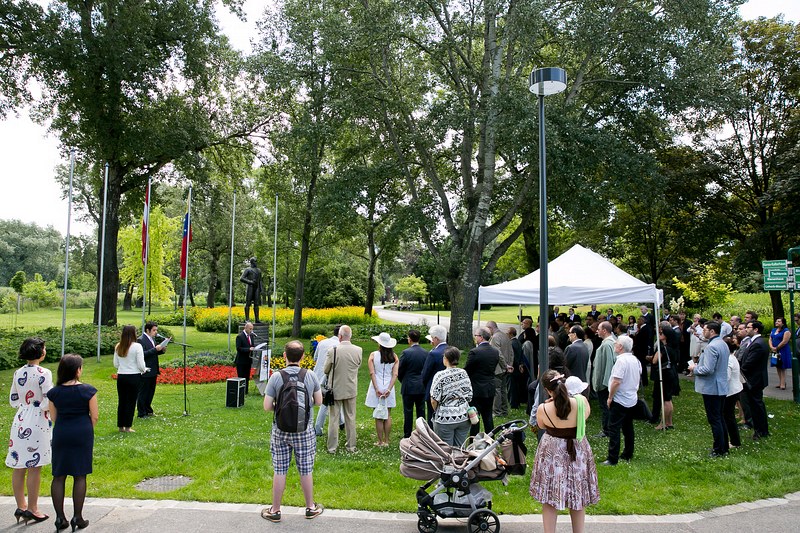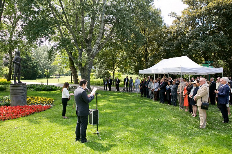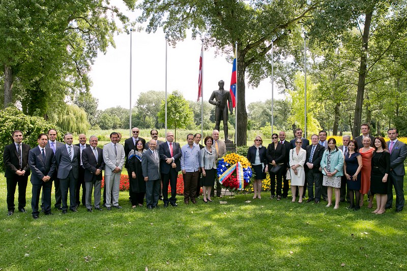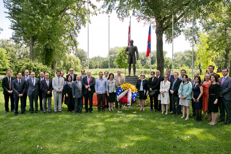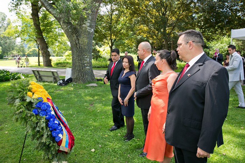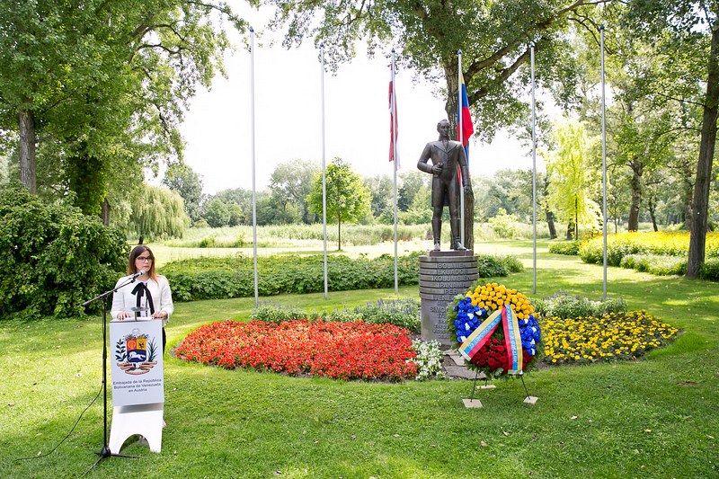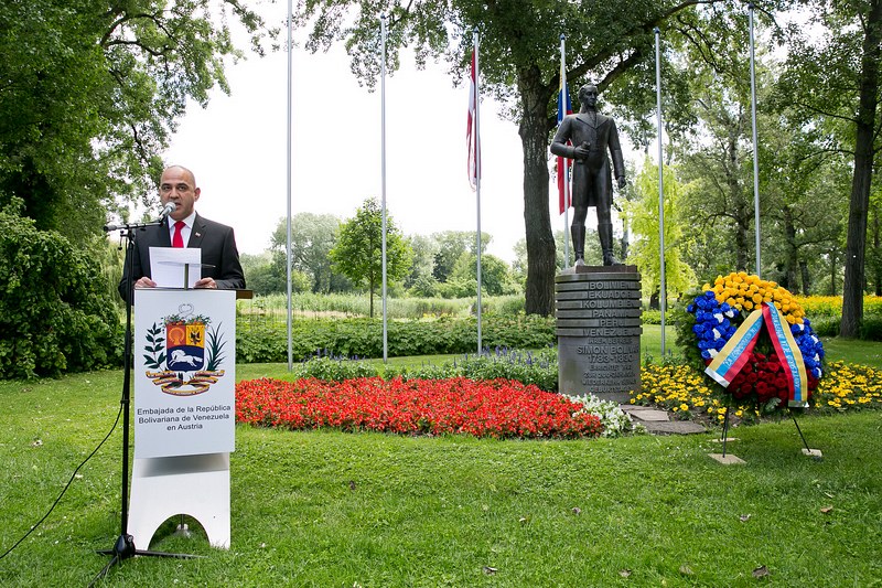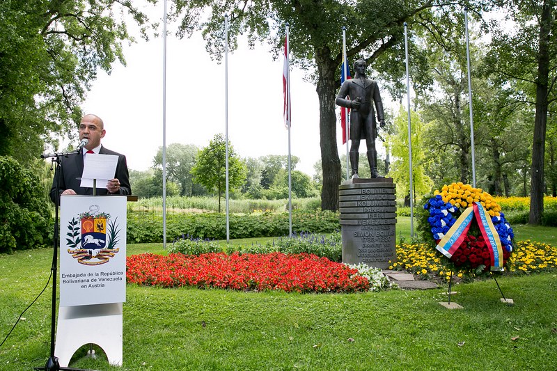 Anlässlich des Nationalfeiertages lud S.E. Jesse Chacón Escamillo, Botschafter der Bolivarischen Republik Venezuela, zu einer Kranzniederlegung beim Denkmal des Befreiers Simon Bolivar im Donaupark, gefolgt von einem Empfang.