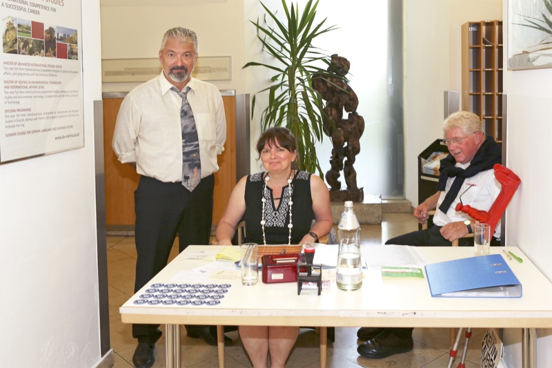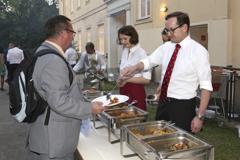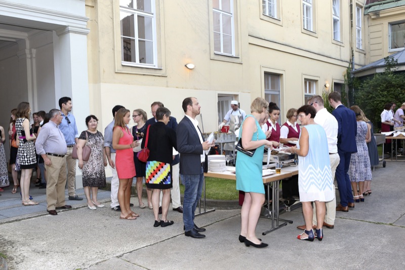 Botschafter Dr. Hans Winkler, Direktor der Diplomatischen Akademie, lud zum 17. Sommerfest auf den Campus der Diplomatischen Akademie. Neben der Aufnahme für neue Mitglieder der Alumni Hall of Fame gab es auch die Überreichung einer Spende der Lehrgänge an "Fremde werden Freunde".
