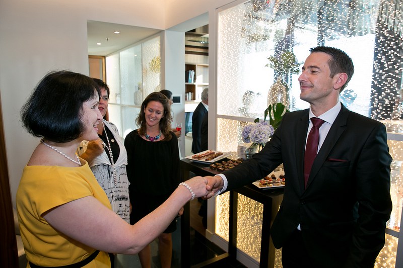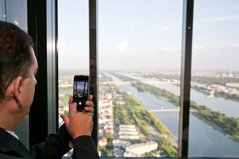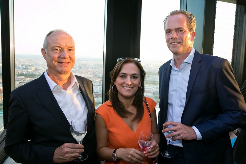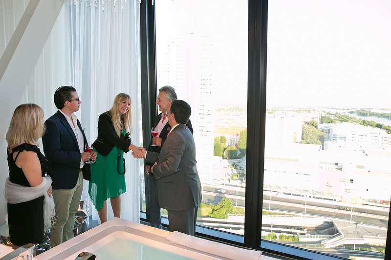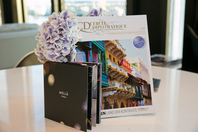 Gemeinsam mit Bastian Becker, General Manager des Hotel Meliá Vienna, lud Cercle Diplomatique zu einem get-together in die eindrucksvolle Präsidenten-Suite des Hotels. Einen gemütlichen Ausklang gab es im Anschluss auf der Aussenterrasse der höchsten Bar des Landes, der 57 Lounge im obersten Stockwerk des DC Towers, wo unsere Gäste bei musikalischer Begleitung von Sängerin Caroline Kreutzberger ihre Drinks und den prachtvollen Ausblick über Wien genossen.