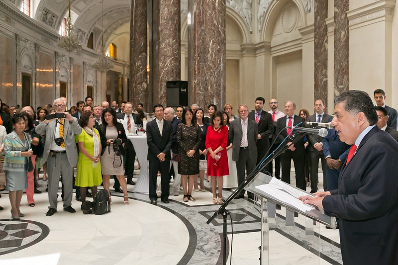 S.E. Alfredo Chuquihuara Chil, Botschafter und ständiger Vertreter von Peru in Österreich, lud anlässlich des 195. Unabhängigkeitstages zu einem Empfang in die prachtvollen Räumlichkeiten der Nationalbibliothek.