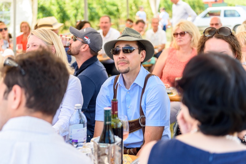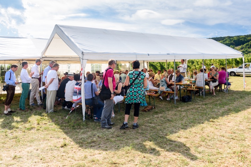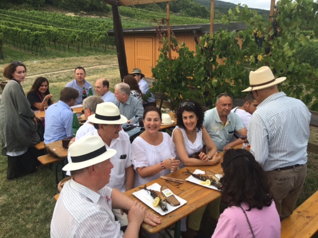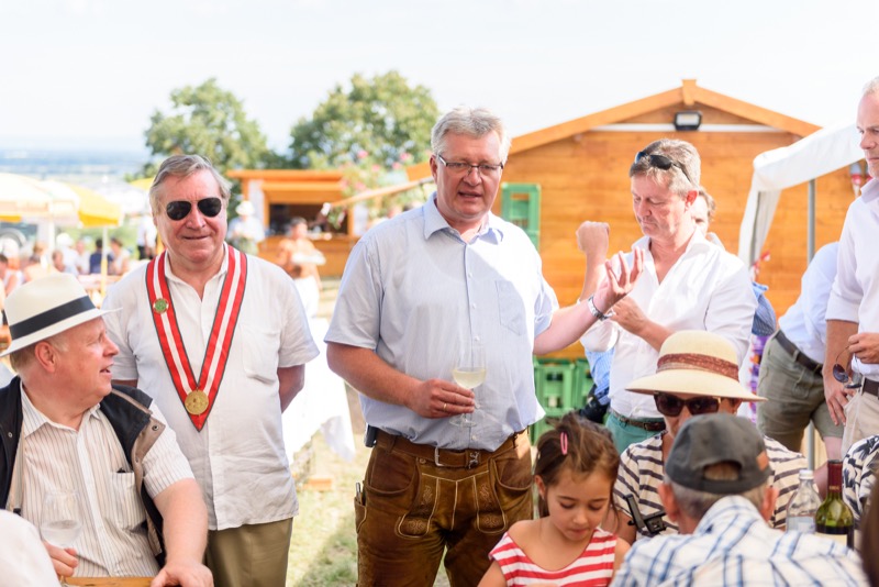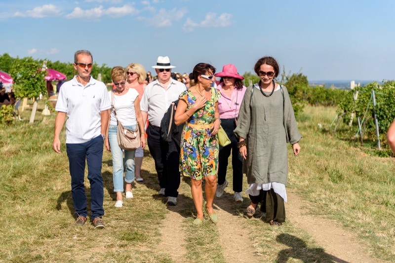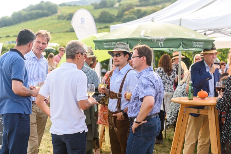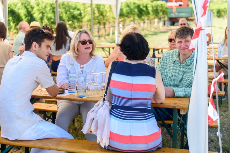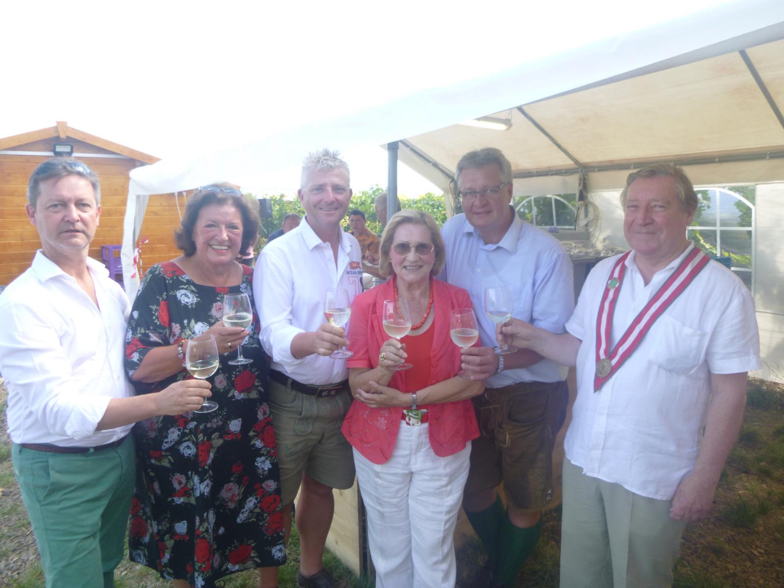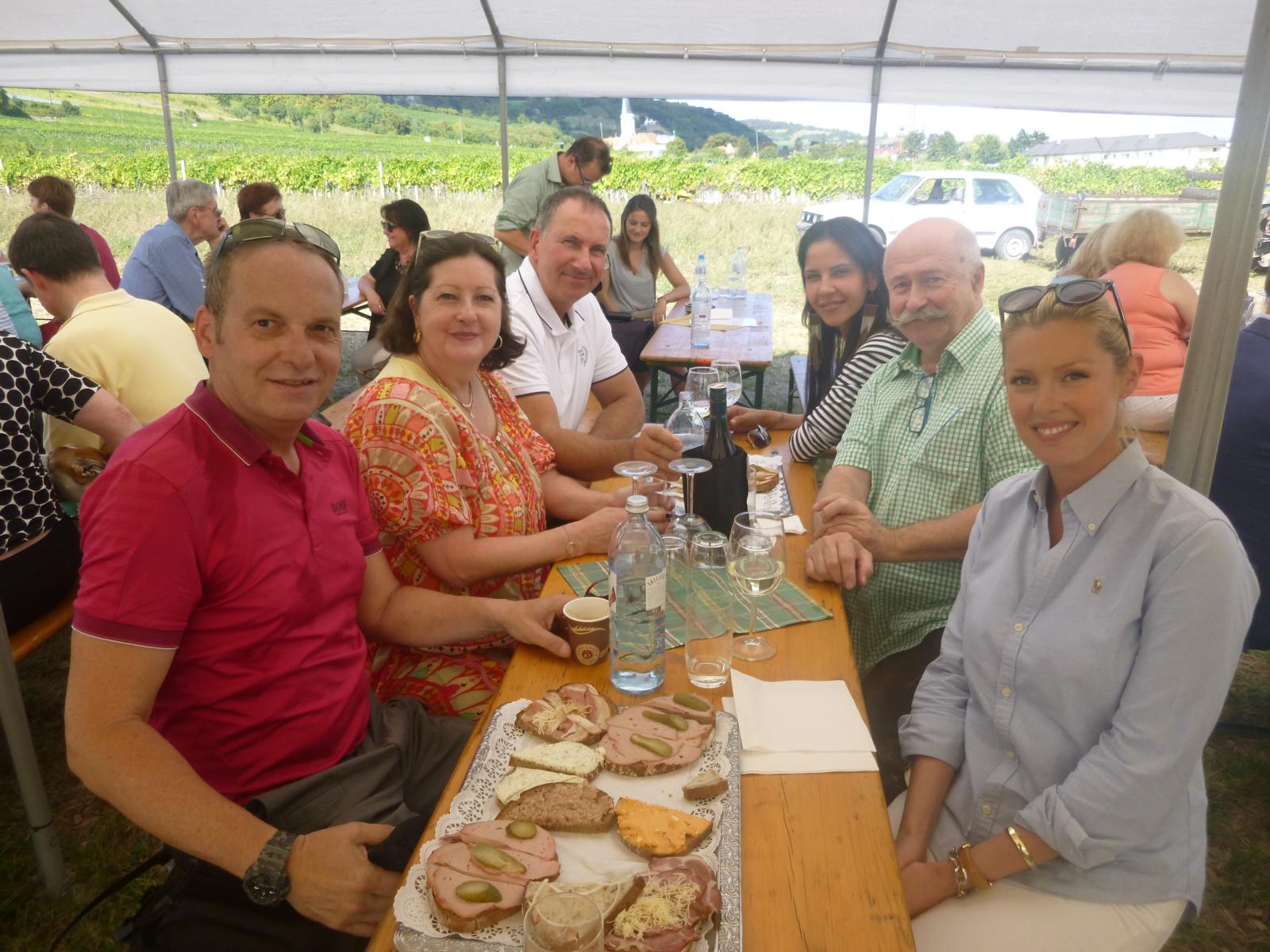 Wie schon in den Vorjahren fanden sich auch heuer wieder über 50 Gäste aus der Diplomatie ein, um bei herrlichem Wetter durch die Weingärten zu spazieren und die vorzüglichen Weine der Thermenregion sowie lokale Schmankerln zu geniessen.