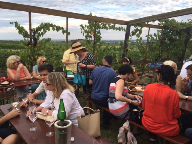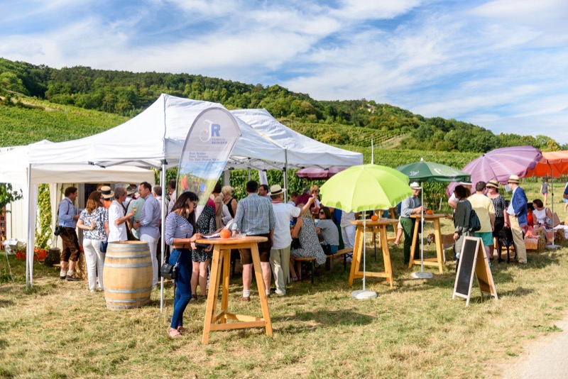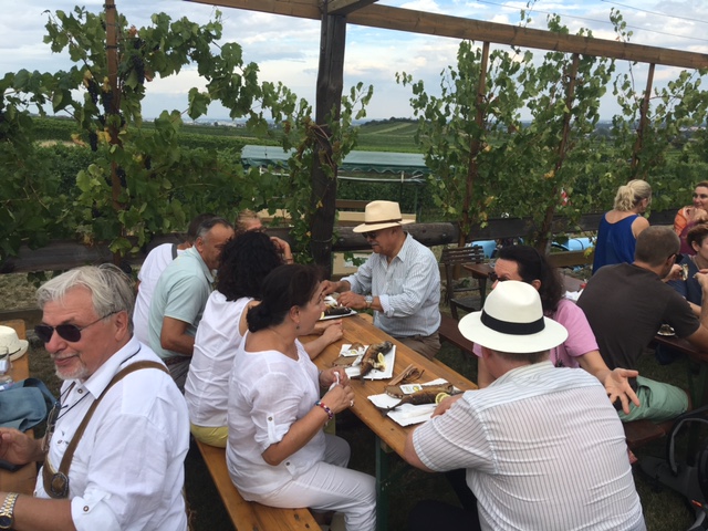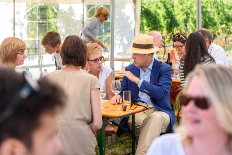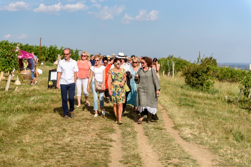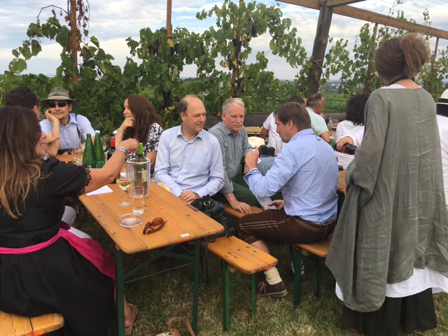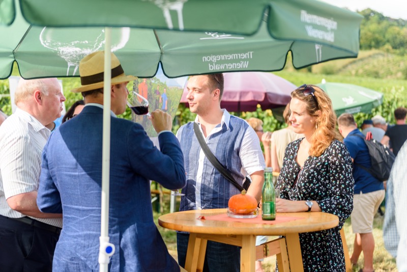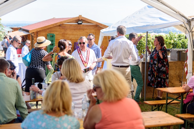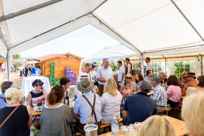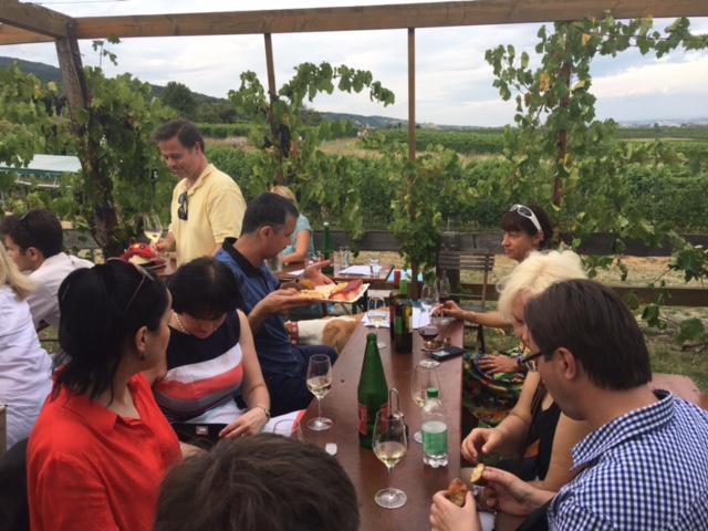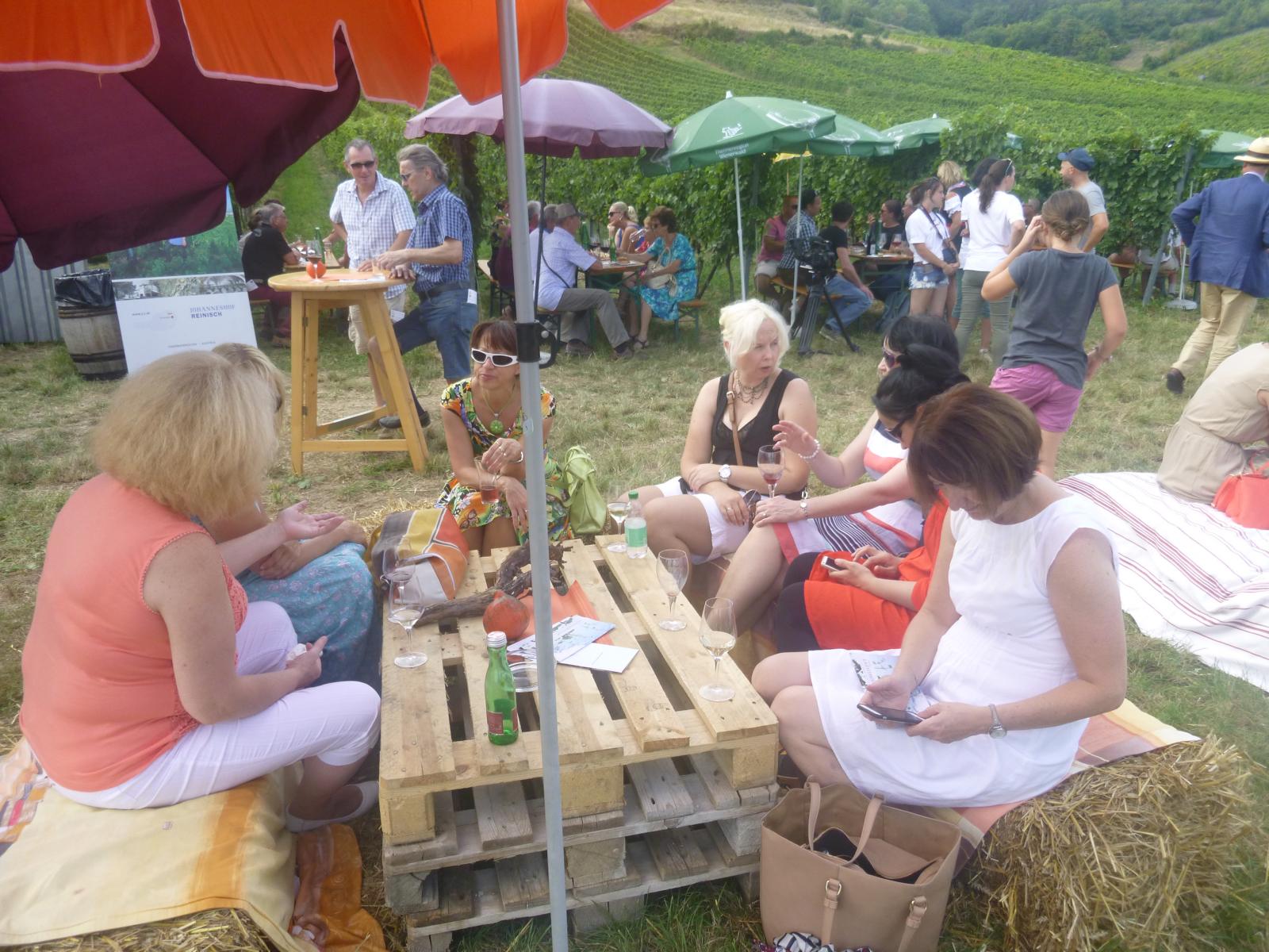 Wie schon in den Vorjahren fanden sich auch heuer wieder über 50 Gäste aus der Diplomatie ein, um bei herrlichem Wetter durch die Weingärten zu spazieren und die vorzüglichen Weine der Thermenregion sowie lokale Schmankerln zu geniessen.