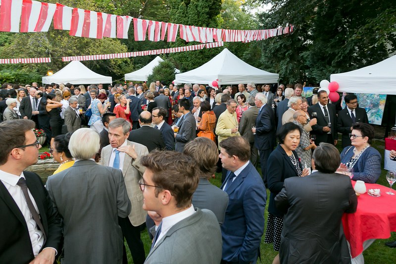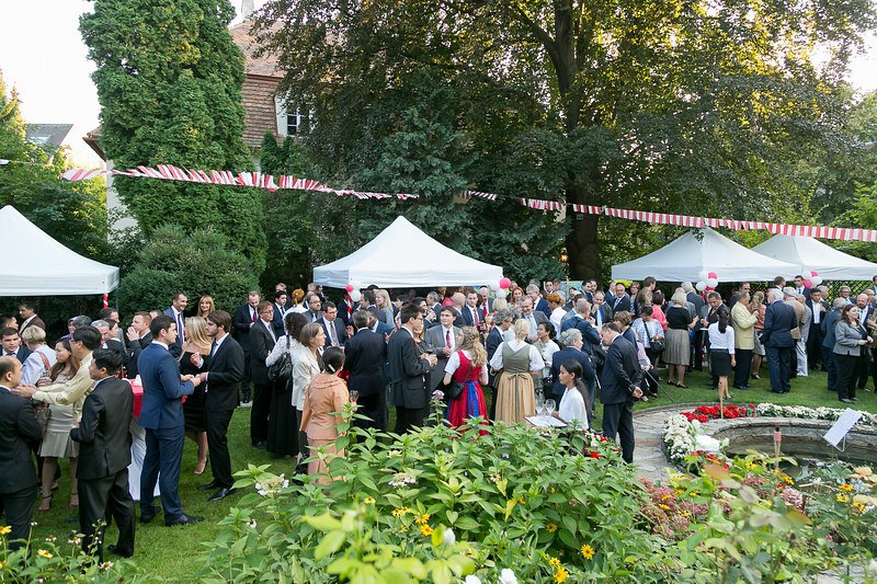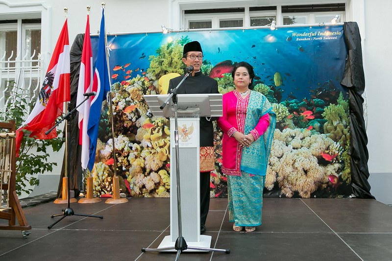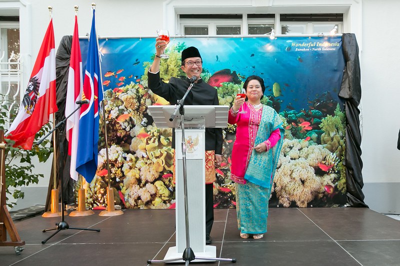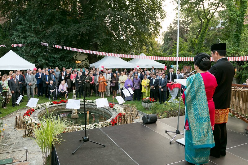 Anlässlich des 71. Unabhängigkeitstages der Republik Indonesien luden S.E. Rachmat Budiman, Botschafter von Indonesien in Österreich und ständiger Vertreter bei den internationalen Organisationen, und Frau Riet Rietanty zu einem Gartenempfang in die Residenz.