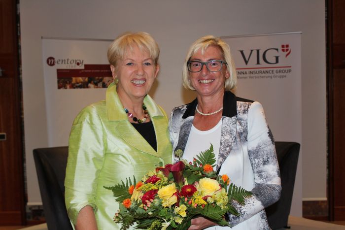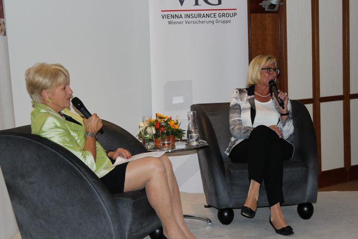 Beim Businesstalk, moderiert von Maria Rauch-Kallat, berichtete Prof. Elisabeth Stadler ausführlich über die Vienna Insurance Group (VIG), ihre persönlichen Erfahrungen im Top-Business und gab auch Einblicke in Ihren persönlichen Karriereweg und ihr Privatleben.