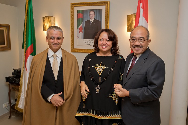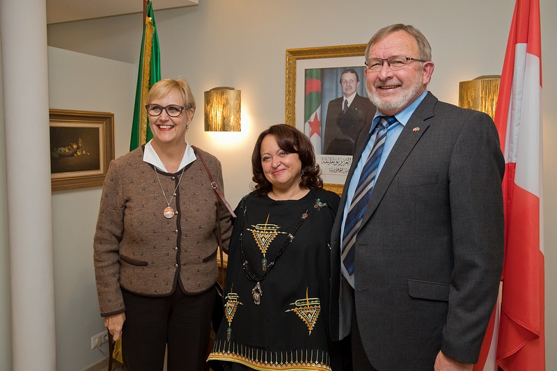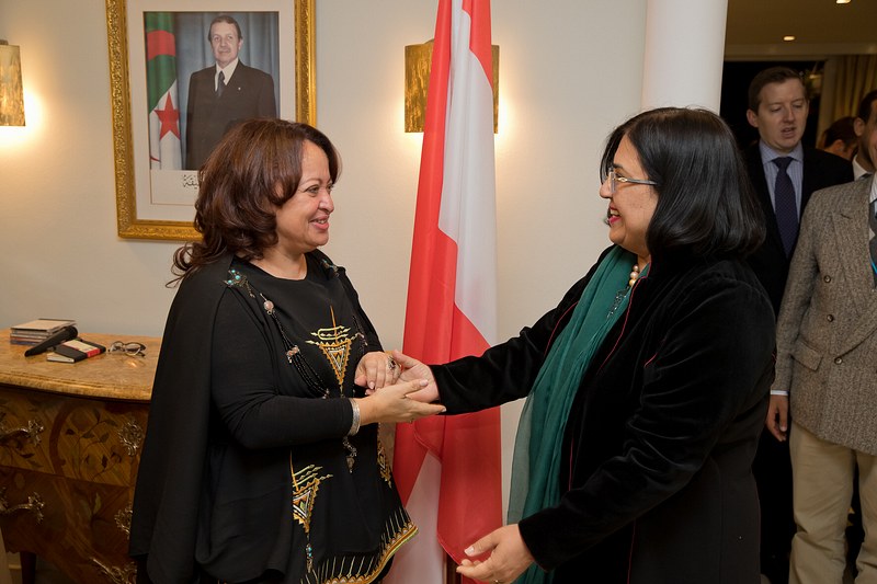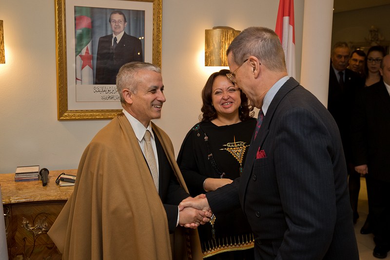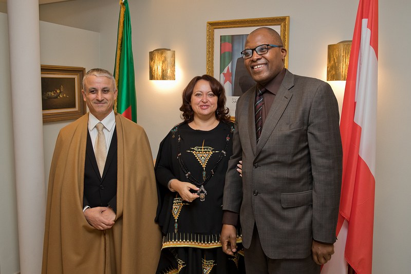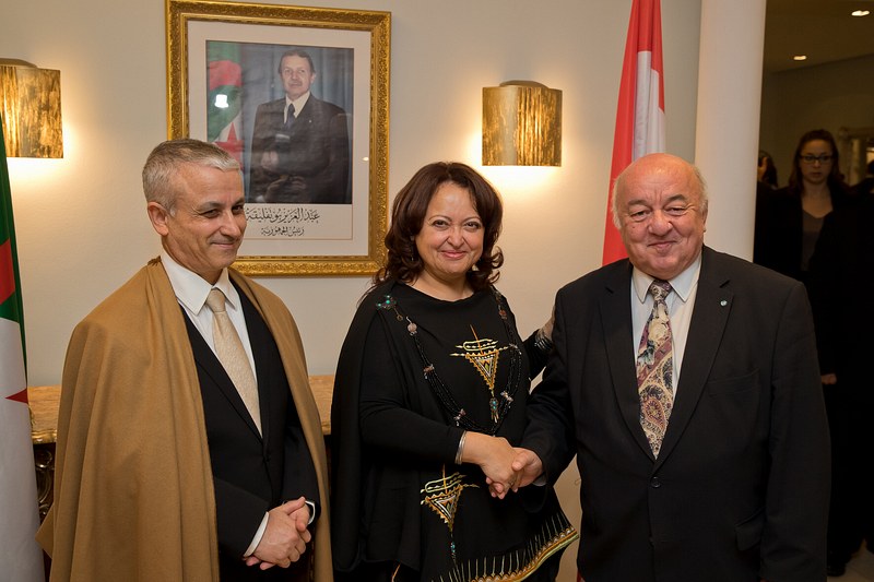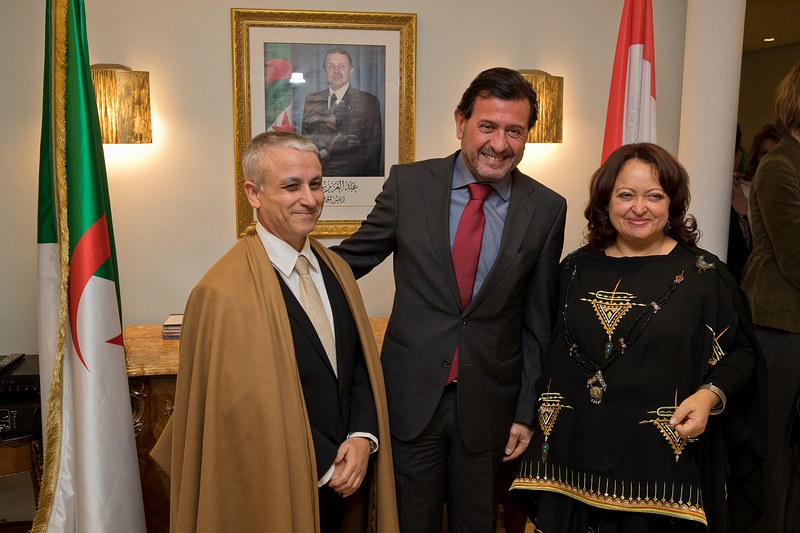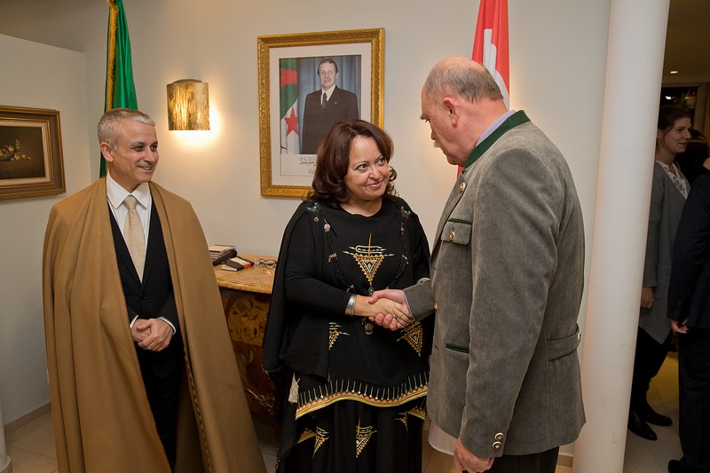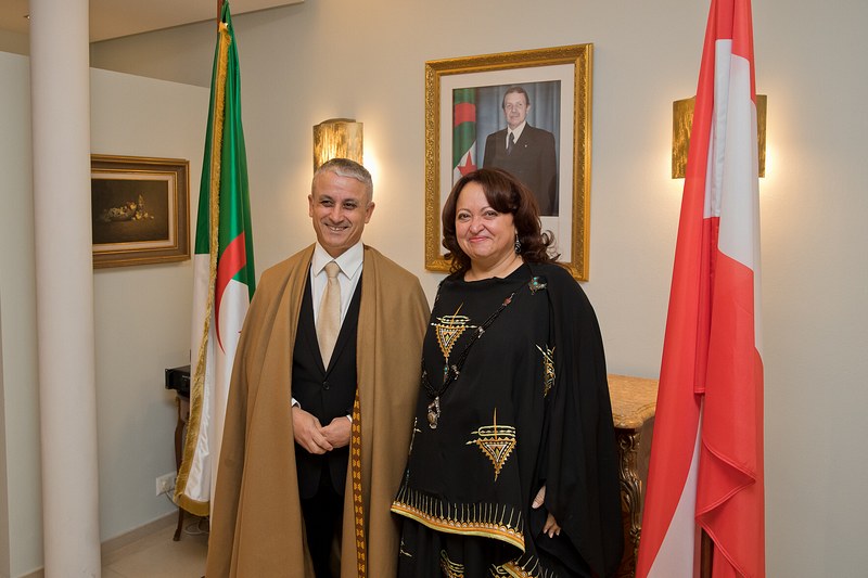 I.E. Faouzia Boumaiza Mebarki, Botschafterin Algeriens in Österreich und ständige Vertreterin bei den internationalen Organisationen, und Ahmed Mebarki luden zu einem Empfang in die Residenz.