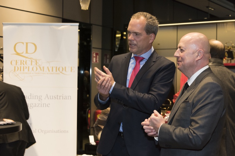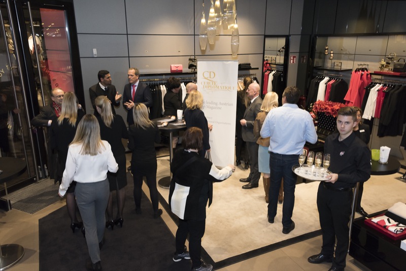 Cercle Diplomatique lud gemeinsam mit Wolfgang Gumhalter, Leiter des BOSS Stores in Wien, zu einem exklusiven Abend unter dem Motto "The Art of Tailoring by BOSS". Im Flagship-Store von HUGO BOSS auf der Kärntnerstrasse konnten sich die Gäste einen Einblick in die Modewelt von BOSS verschaffen und die neuesten Kreationen bestaunen. Als besonderes Highlight wurden personalisierte Stecktücher für die Herren sowie mit den eigenen Initialen versehene Taschen- bzw. Kofferanhänger für die Damen gefertigt.