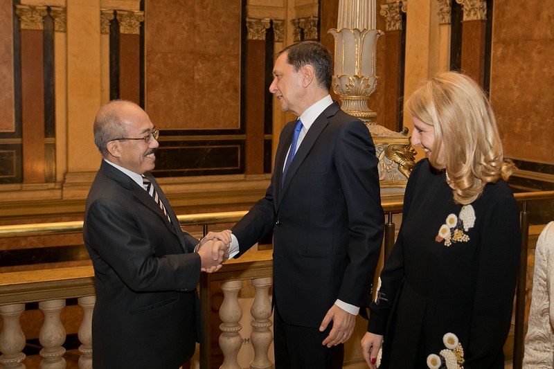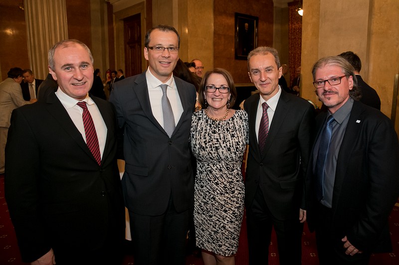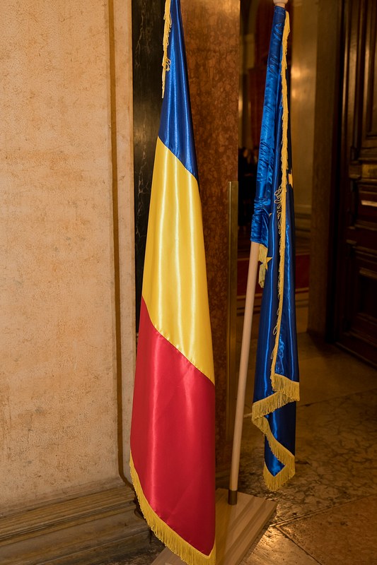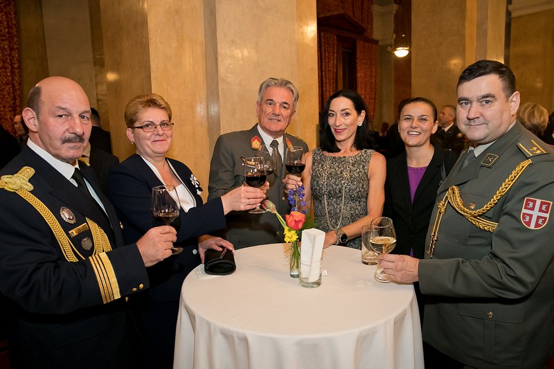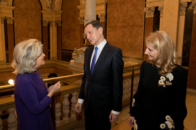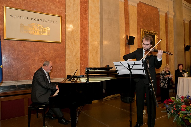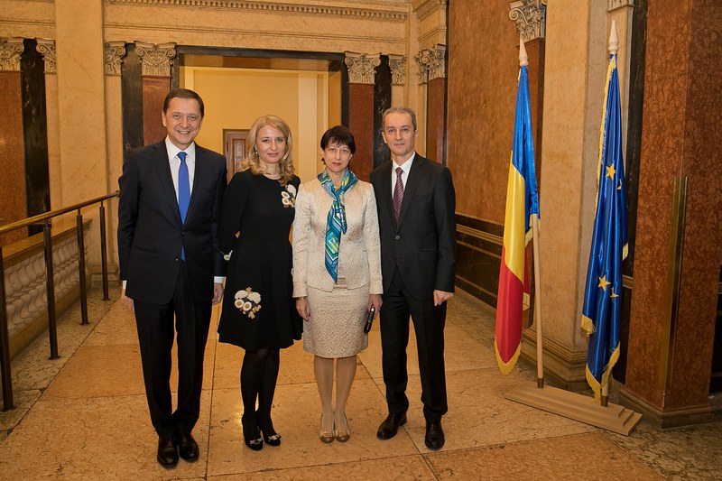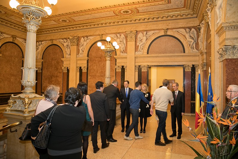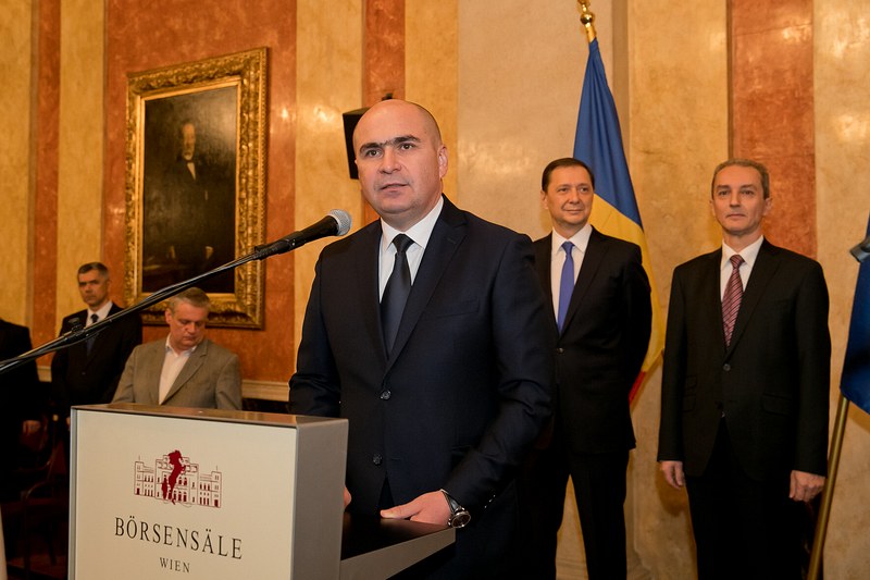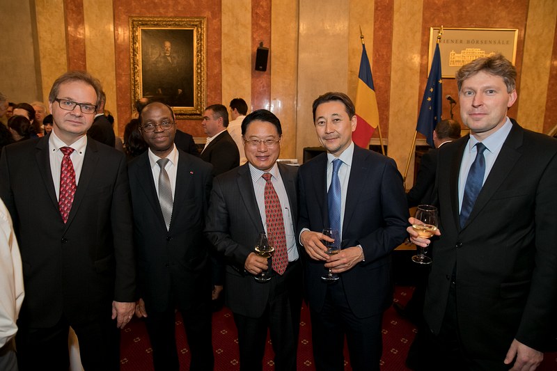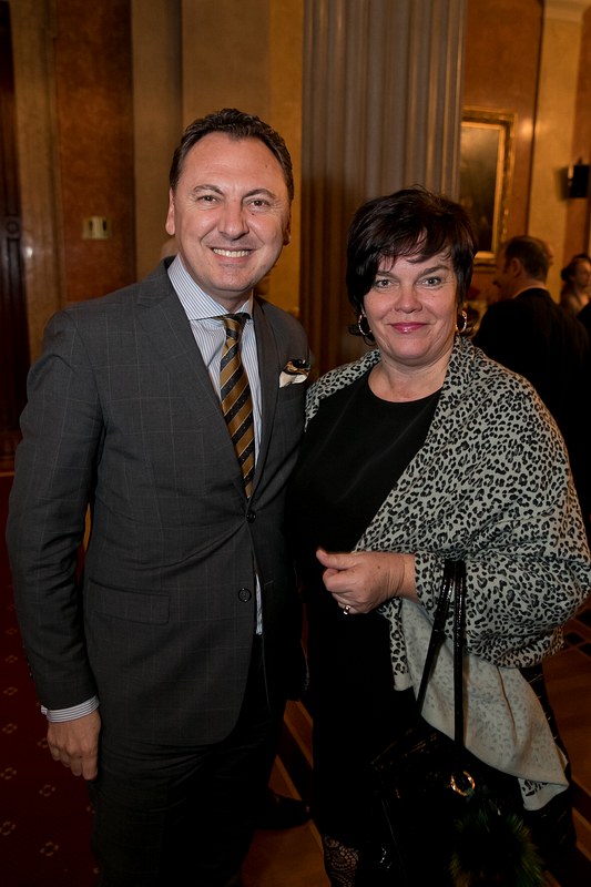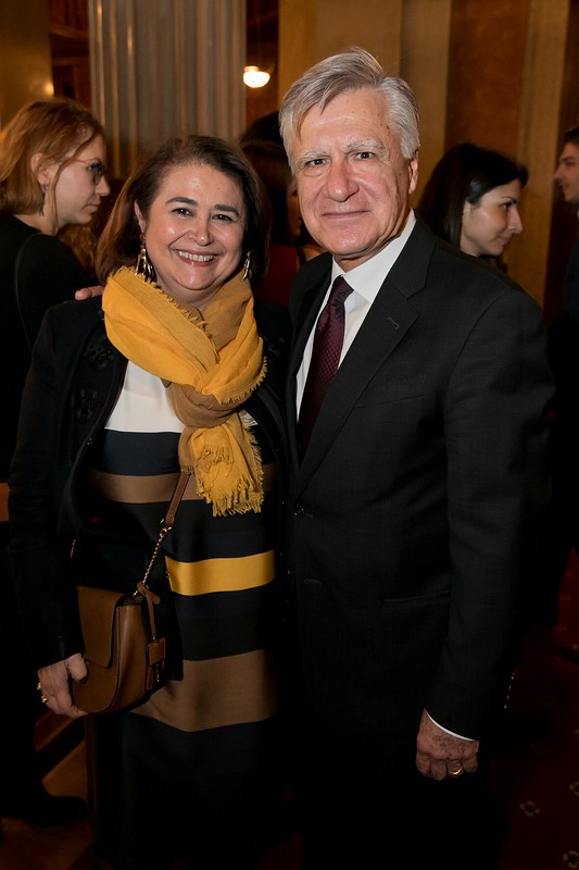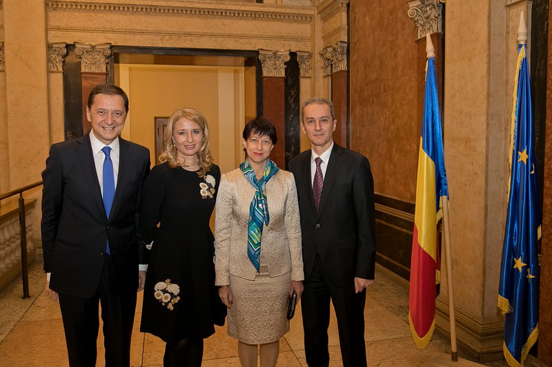 Der Botschafter von Rumänien in Österreich, S.E. Bogdan Mazuru, und Frau Emilia Mazuru sowie der ständige Vertreter von Rumänien bei der OSZE und den VN, S.E. Cristian Istrate, und Frau Gabriela Carmen Istrate, luden in Partnerschaft mit der Stadt Oradea zu einem Empfang anlässlich des Nationalfeiertages in die Wiener Börsensäle.