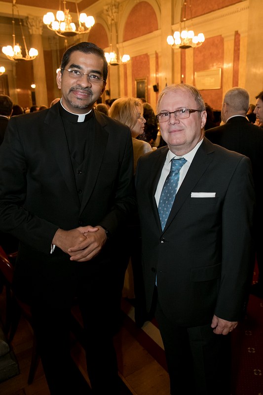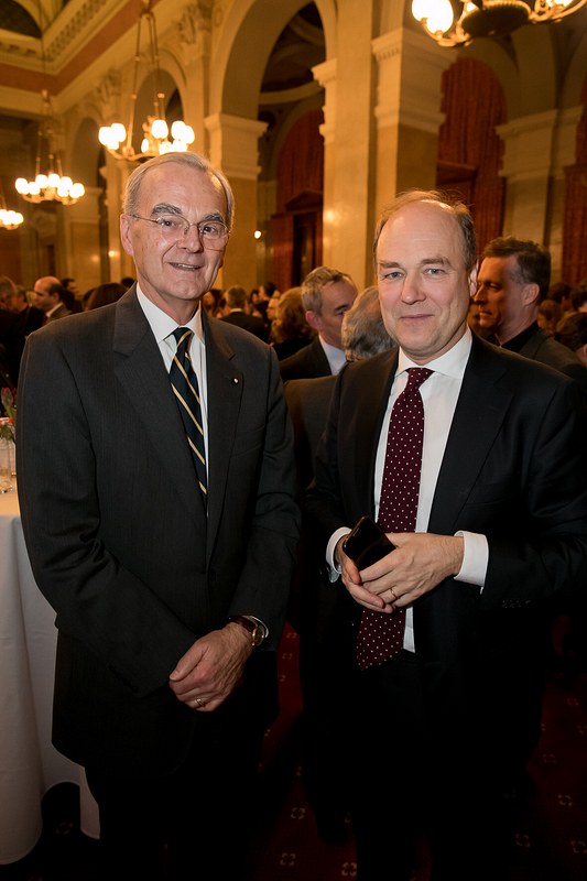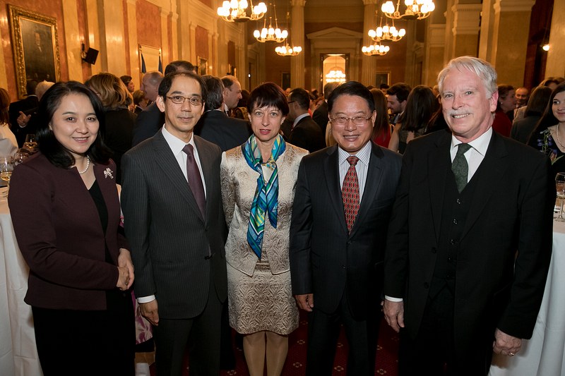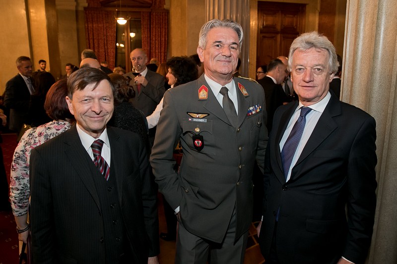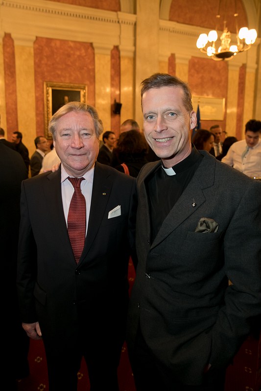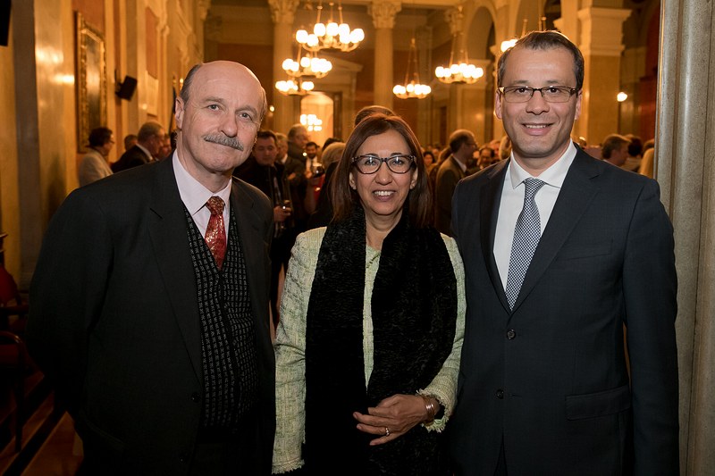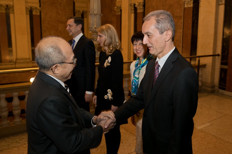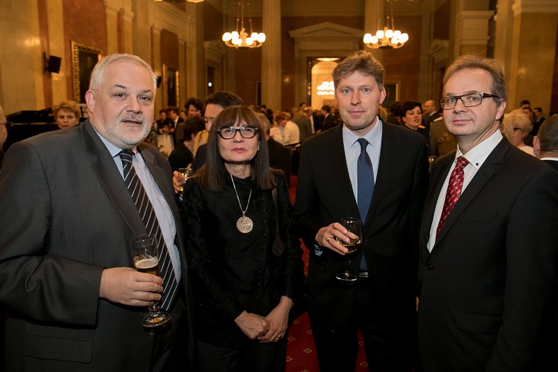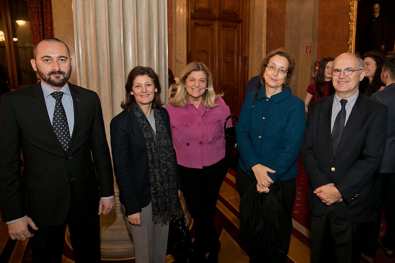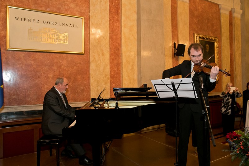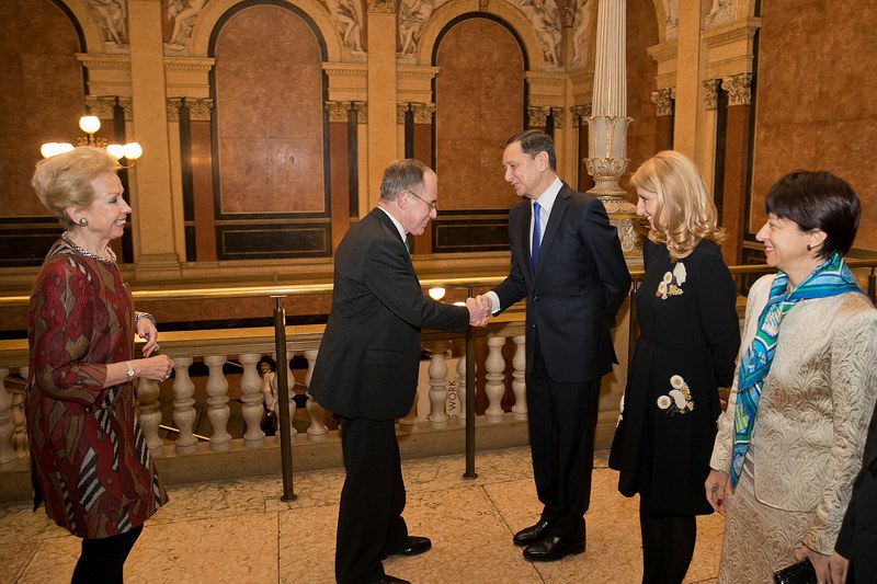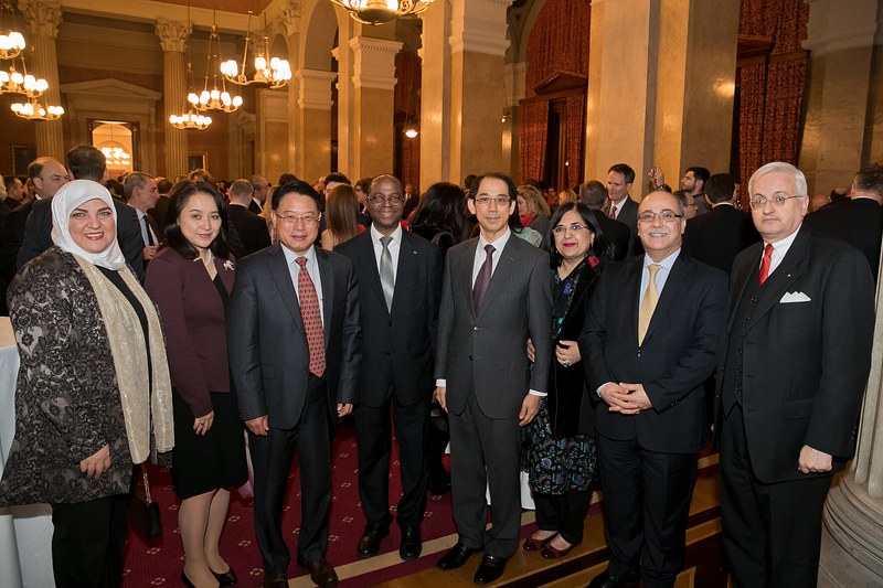 Der Botschafter von Rumänien in Österreich, S.E. Bogdan Mazuru, und Frau Emilia Mazuru sowie der ständige Vertreter von Rumänien bei der OSZE und den VN, S.E. Cristian Istrate, und Frau Gabriela Carmen Istrate, luden in Partnerschaft mit der Stadt Oradea zu einem Empfang anlässlich des Nationalfeiertages in die Wiener Börsensäle.