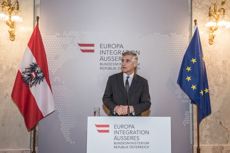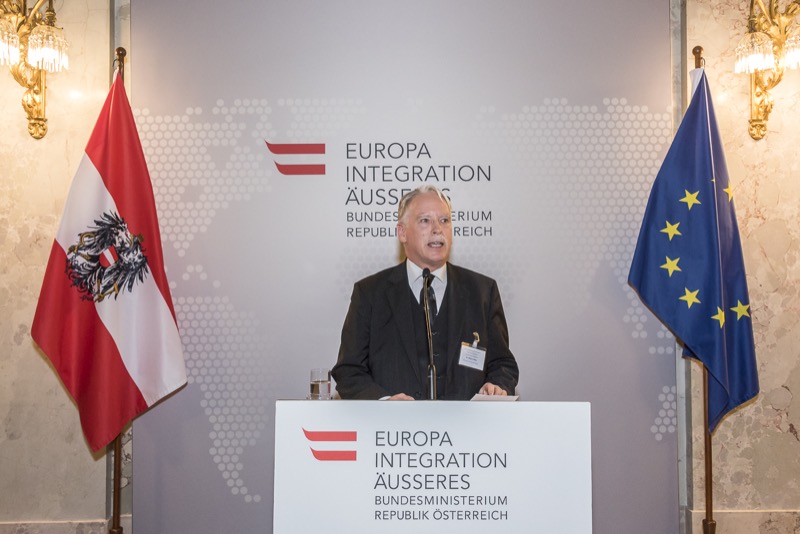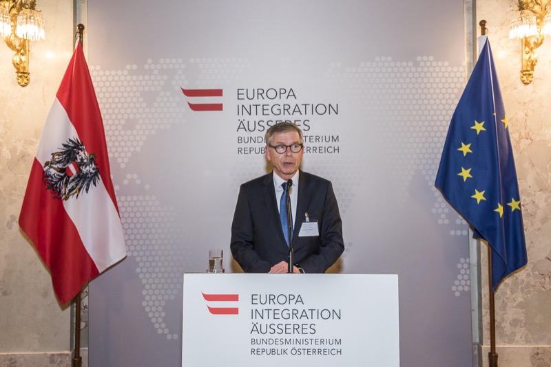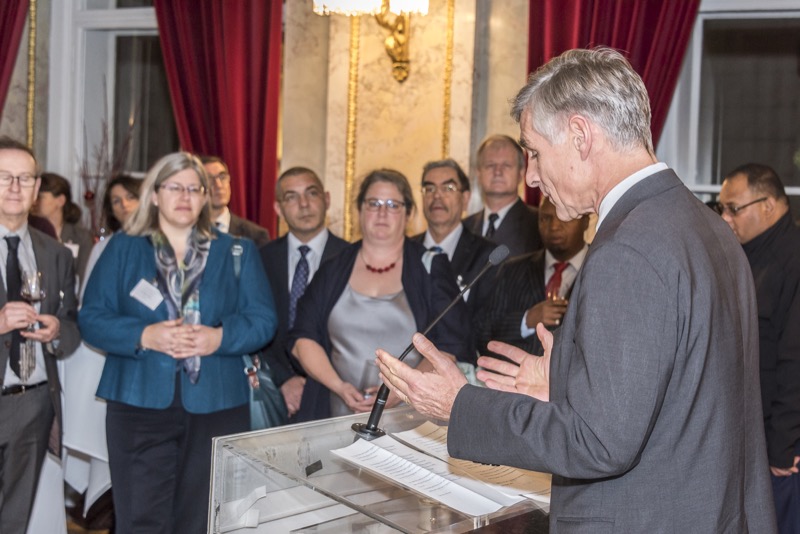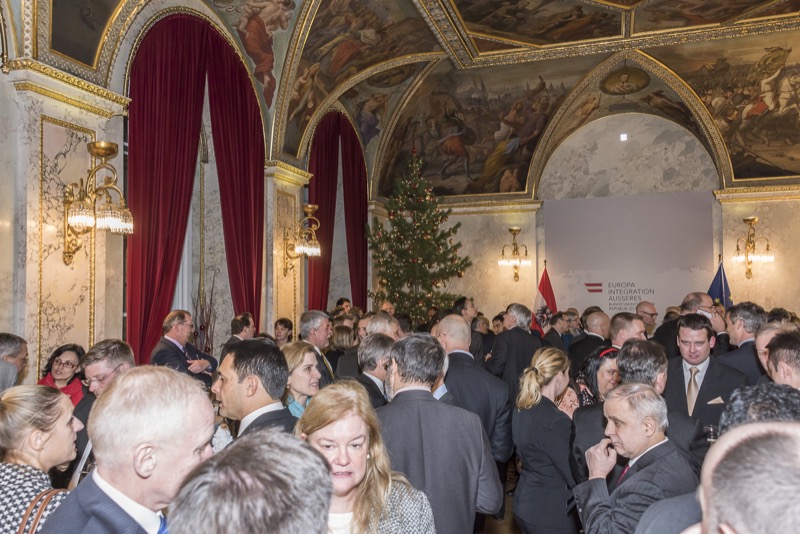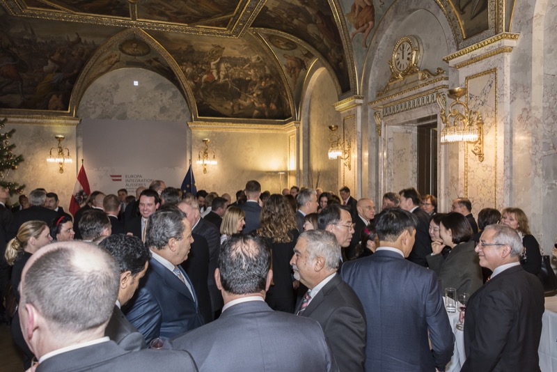 Anlässlich des 20-jährigen Bestehens des Wassenaar-Abkommens lud BM Sebastian Kurz zu einem Empfang in den Alois-Mock Saal in das Ministerium.
