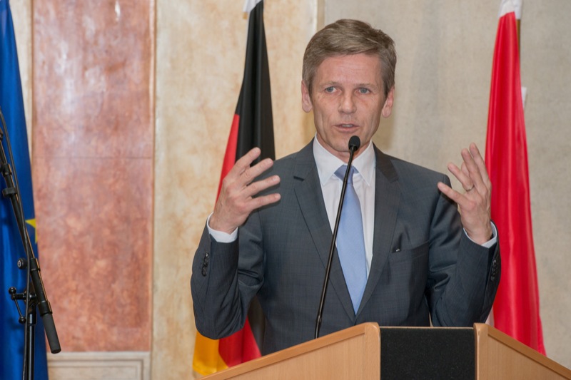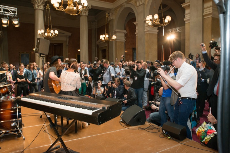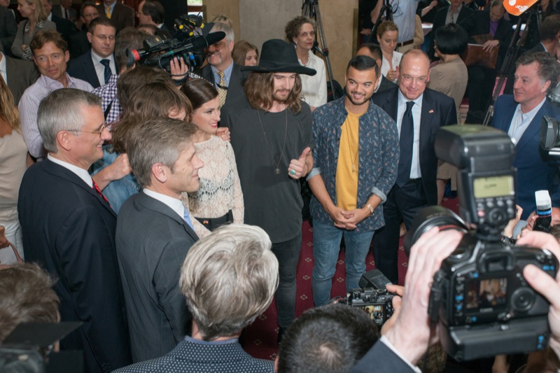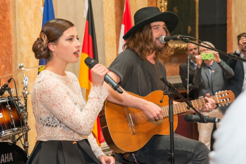 Der Botschafter der Bundesrepublik Deutschland, S.E. Detlev Rünger, lud anlässlich des bevorstehenden Eurovision Song Contest 2015 zu einem Empfang mit den Kandidaten Ann Sophie (Deutschland) sowie The Makemakes (Österreich) in die Wiener Börsensäle.