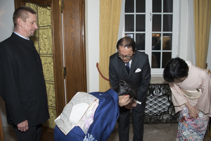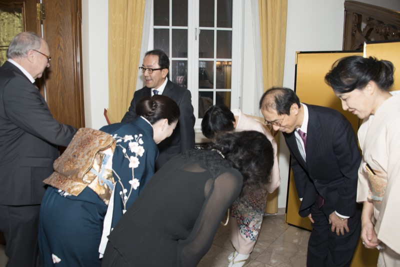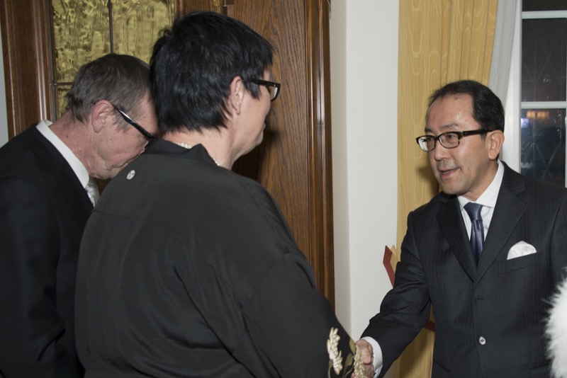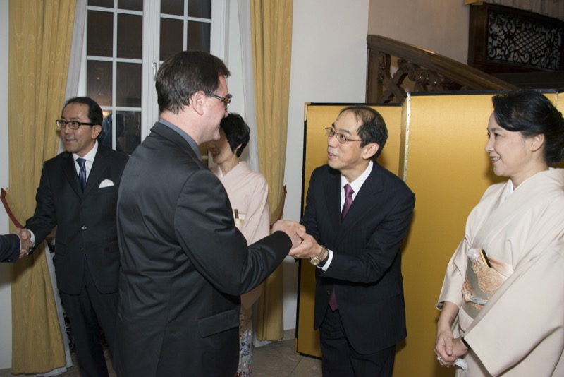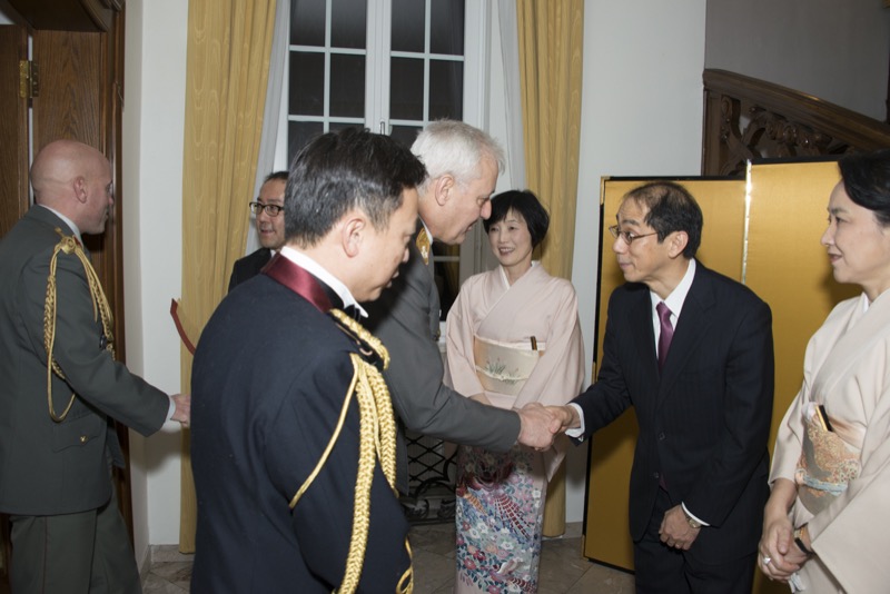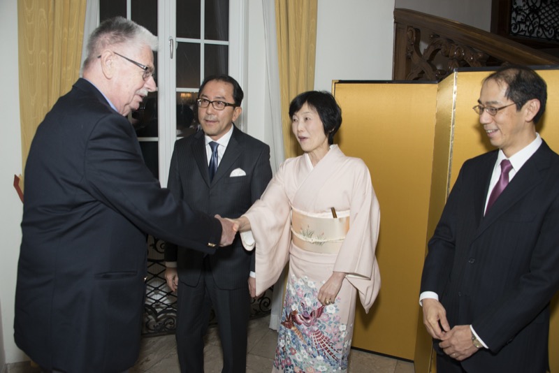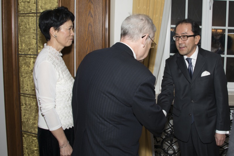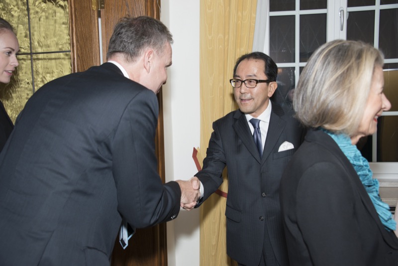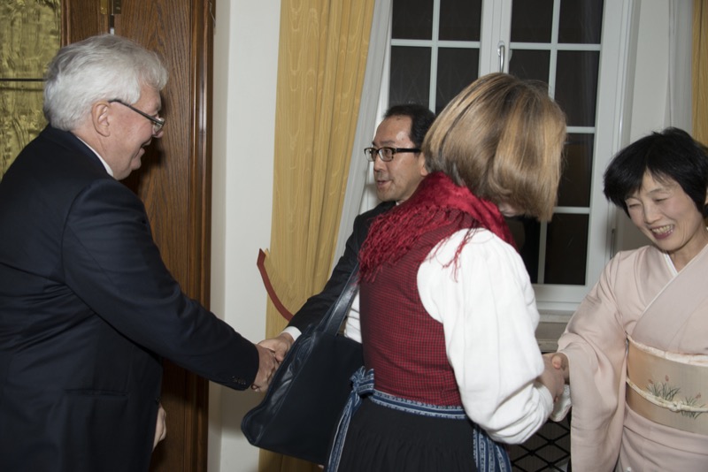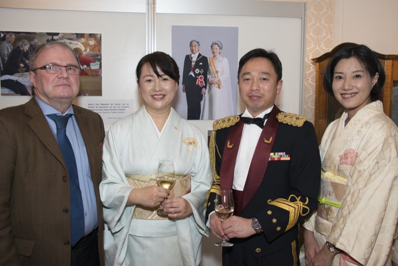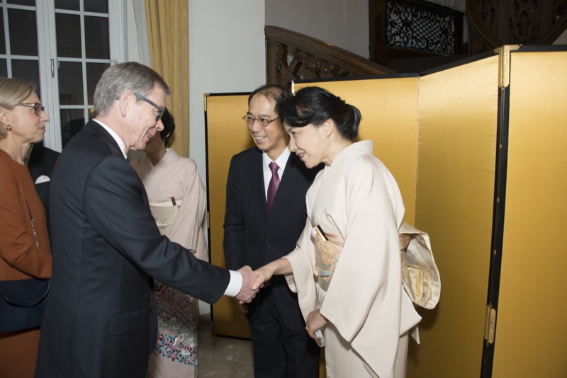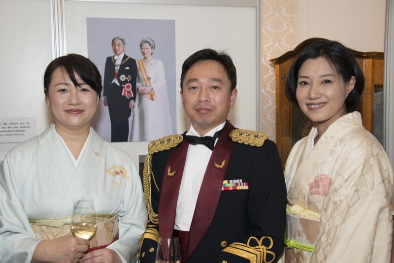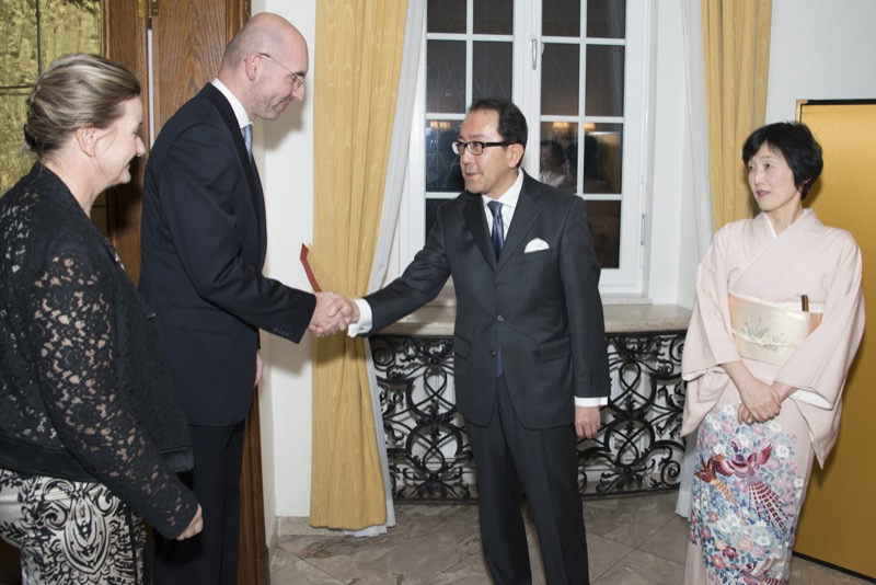 Aus Anlass des 83. Geburtstages Seiner Majestät des Kaisers Akihito luden S.E. Kiyoshi Koinuma, Botschafter von Japan, und Frau Meiko Koinuma sowie der Ständige Vertreter Japans bei den internationalen Organisationen, S.E. Mitsuro Kitano und Frau Yoshie Kitano, zu einem Empfang in die Residenz.