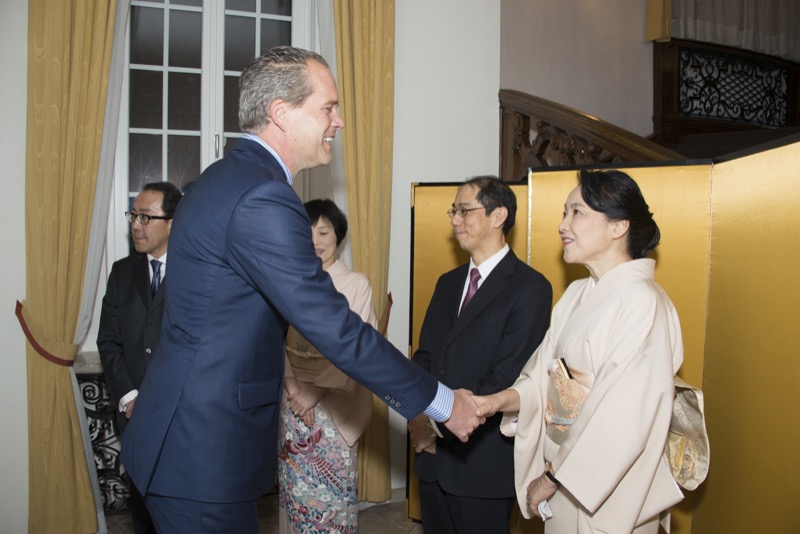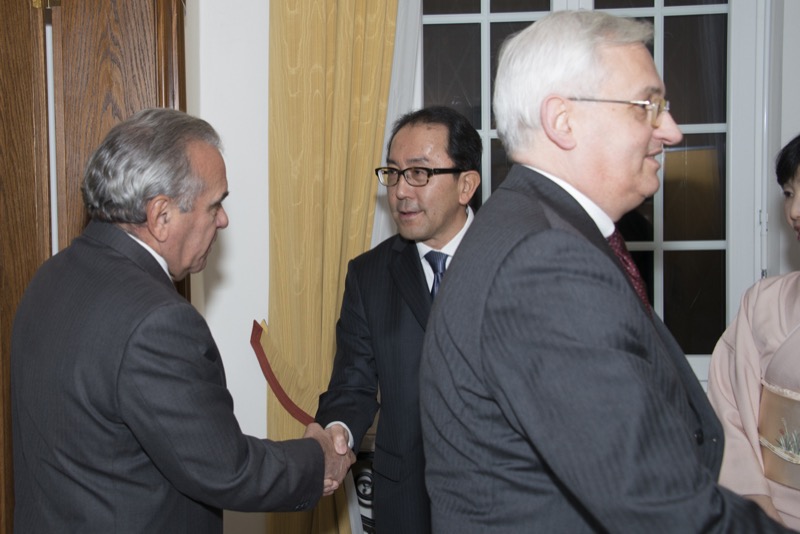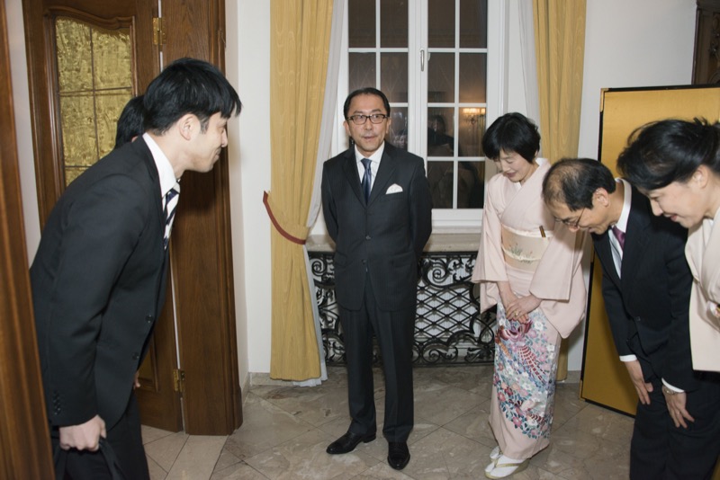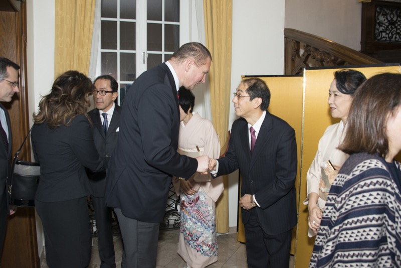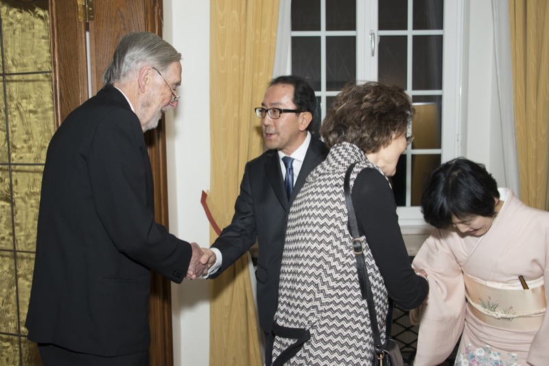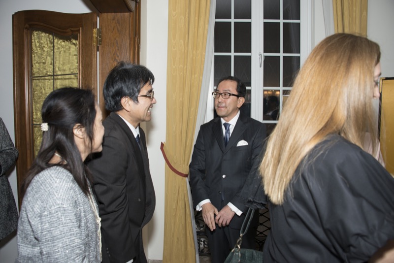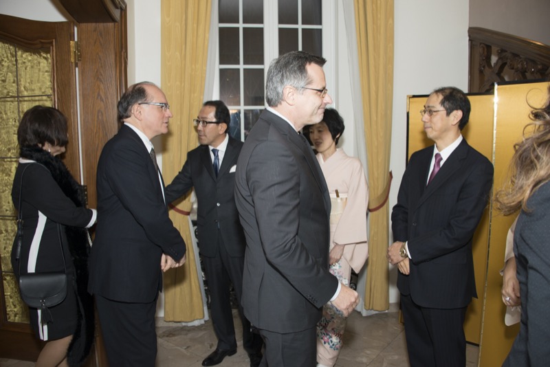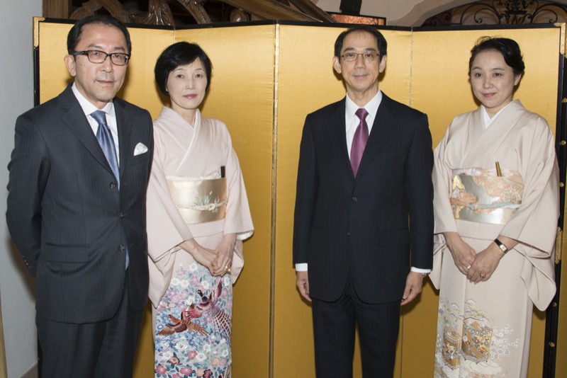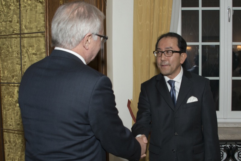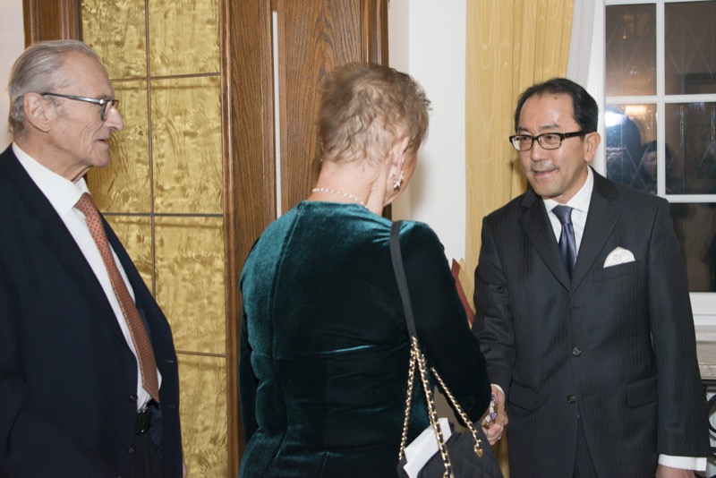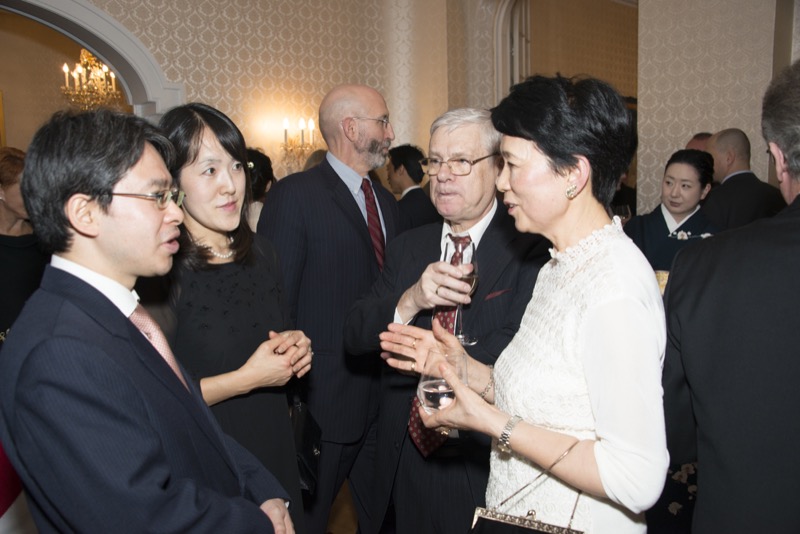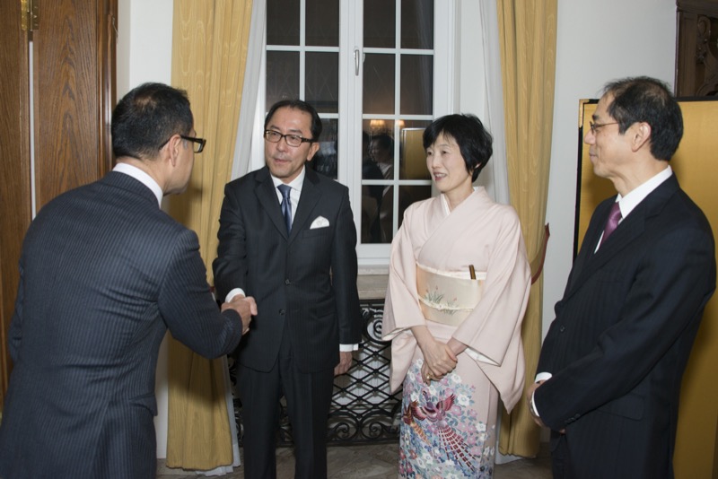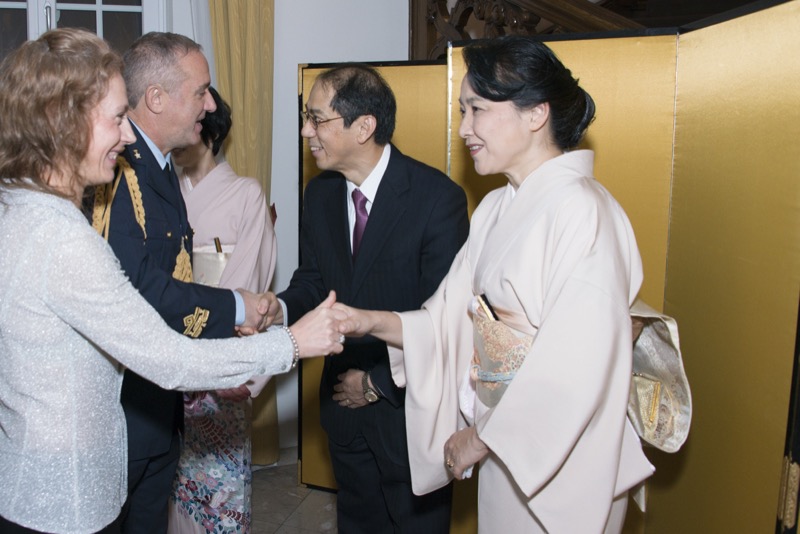 Aus Anlass des 83. Geburtstages Seiner Majestät des Kaisers Akihito luden S.E. Kiyoshi Koinuma, Botschafter von Japan, und Frau Meiko Koinuma sowie der Ständige Vertreter Japans bei den internationalen Organisationen, S.E. Mitsuro Kitano und Frau Yoshie Kitano, zu einem Empfang in die Residenz.