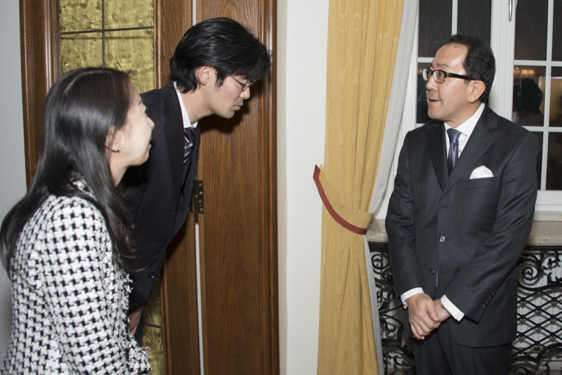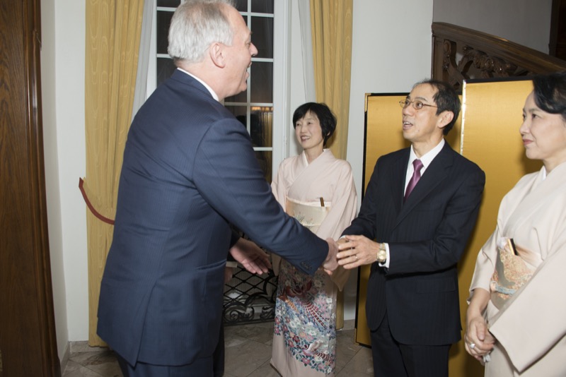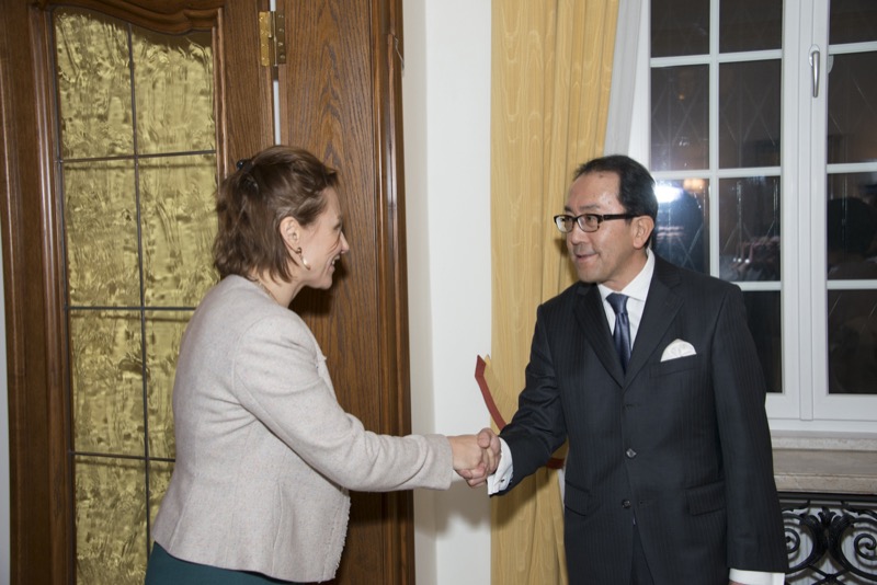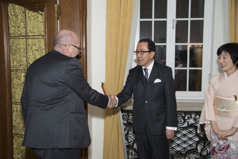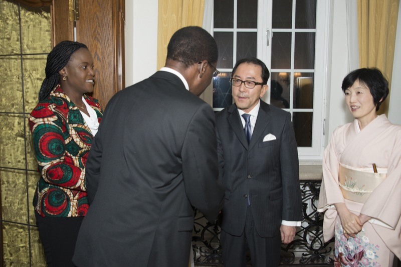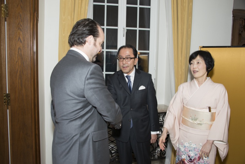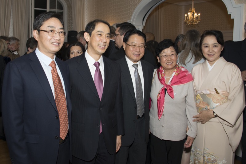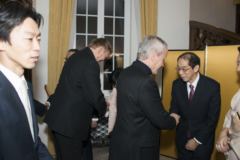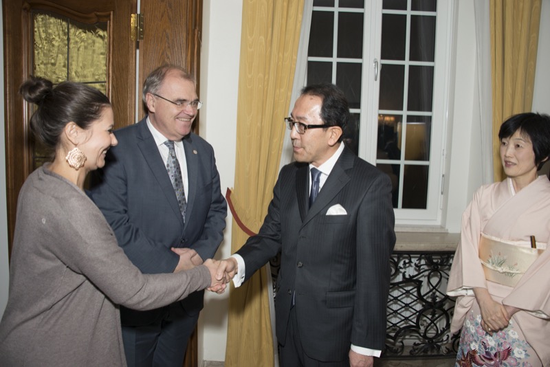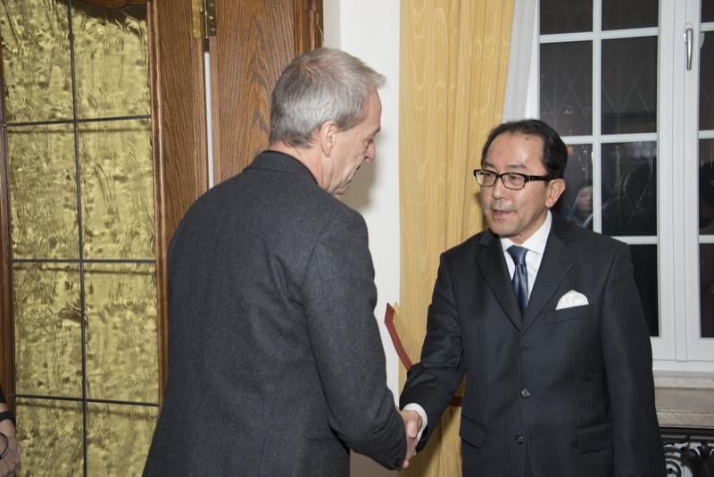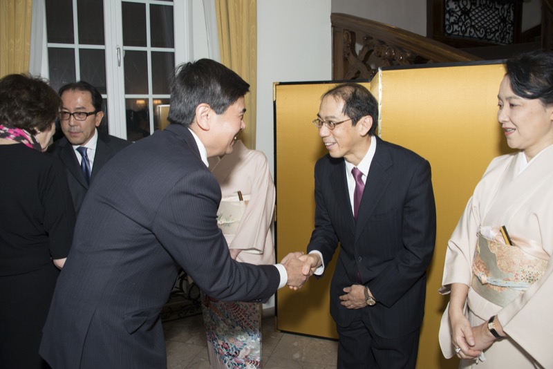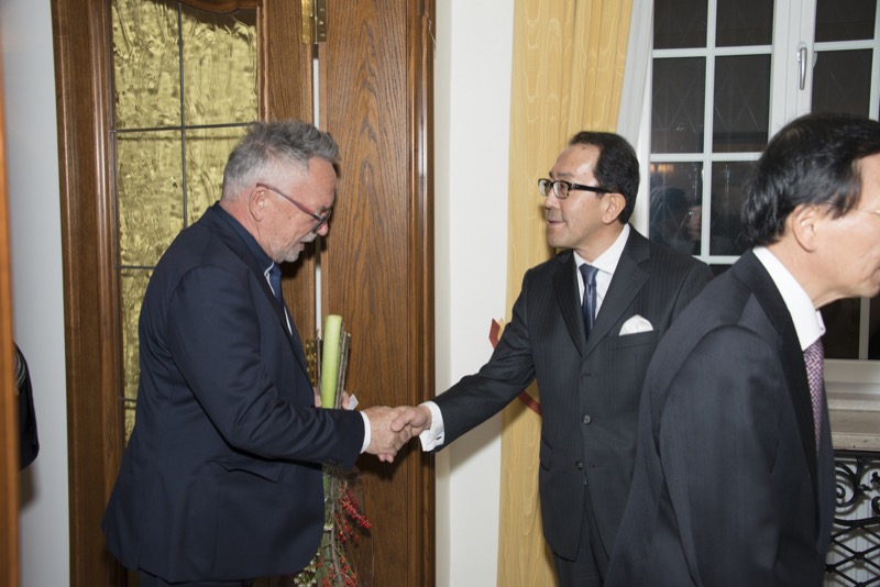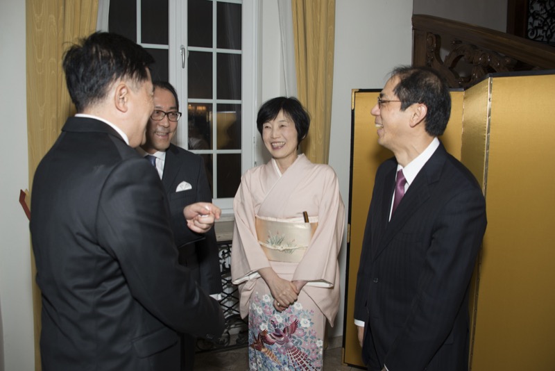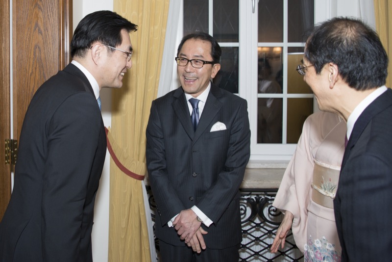 Aus Anlass des 83. Geburtstages Seiner Majestät des Kaisers Akihito luden S.E. Kiyoshi Koinuma, Botschafter von Japan, und Frau Meiko Koinuma sowie der Ständige Vertreter Japans bei den internationalen Organisationen, S.E. Mitsuro Kitano und Frau Yoshie Kitano, zu einem Empfang in die Residenz.