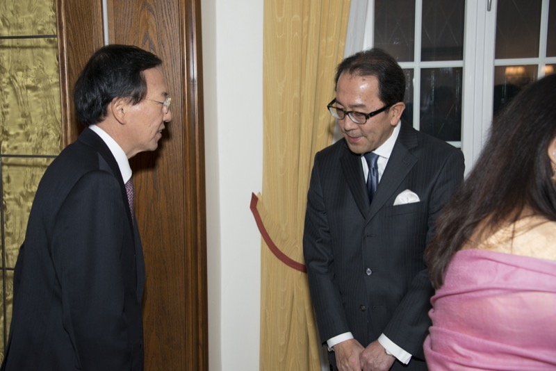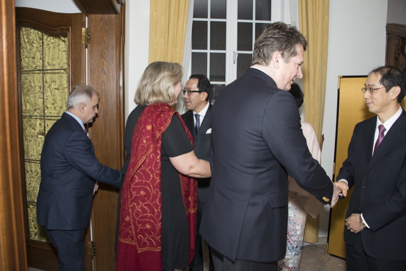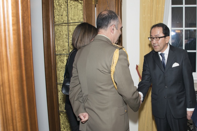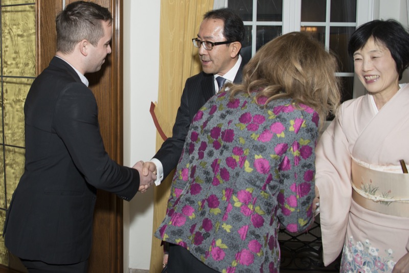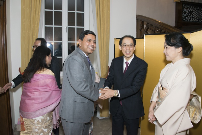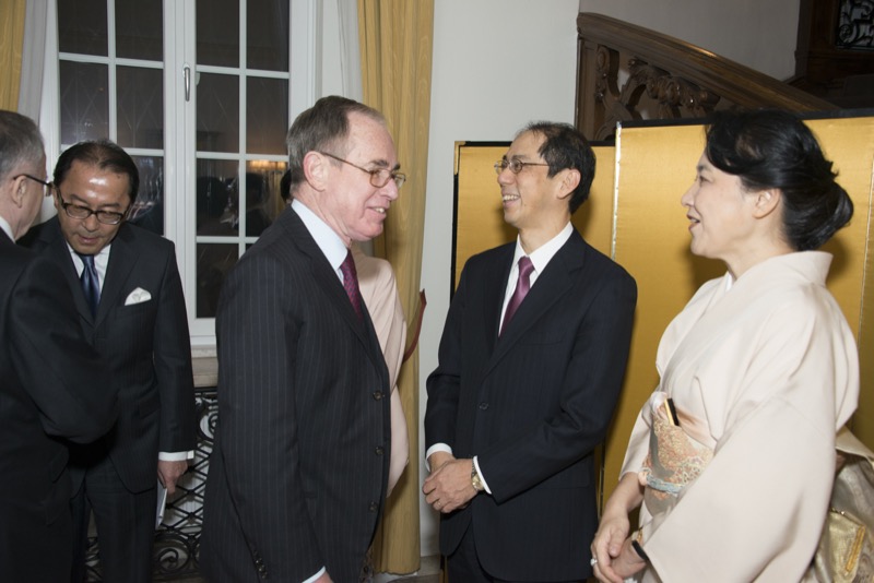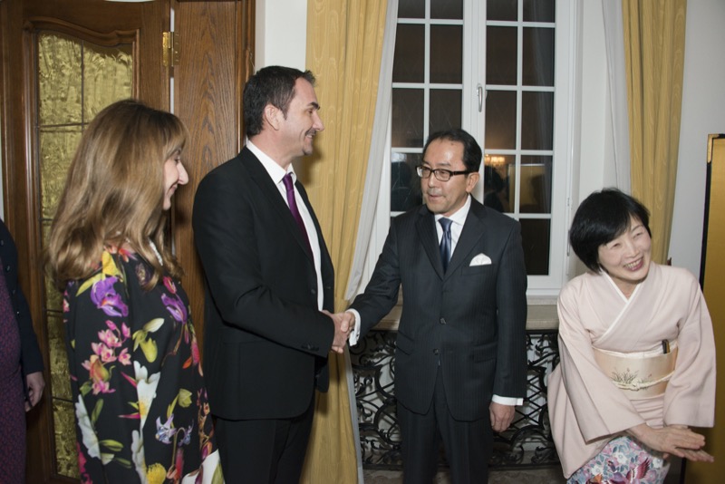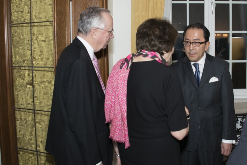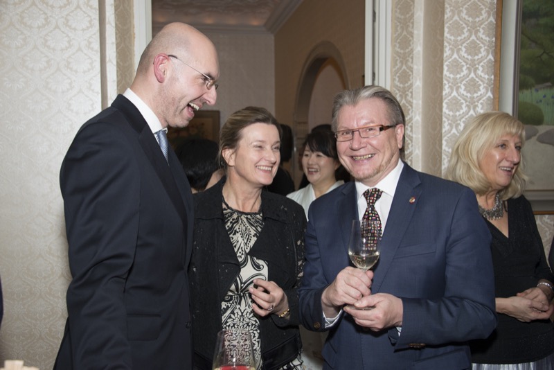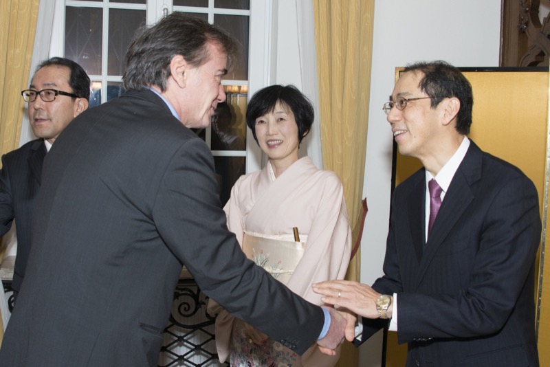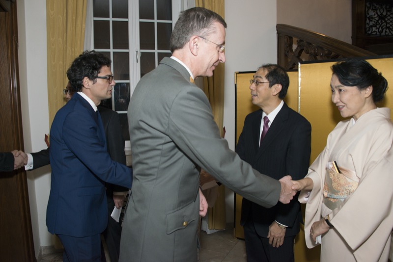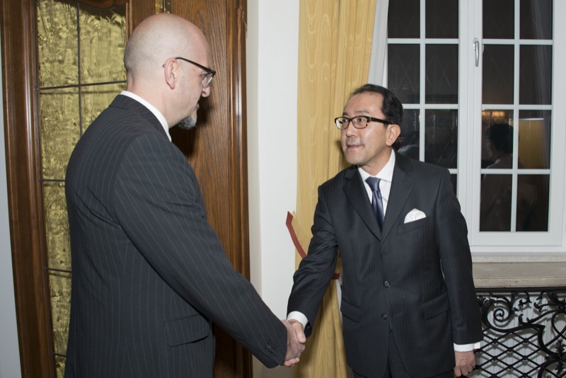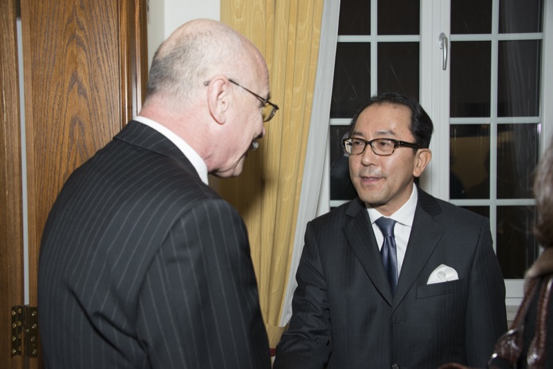 Aus Anlass des 83. Geburtstages Seiner Majestät des Kaisers Akihito luden S.E. Kiyoshi Koinuma, Botschafter von Japan, und Frau Meiko Koinuma sowie der Ständige Vertreter Japans bei den internationalen Organisationen, S.E. Mitsuro Kitano und Frau Yoshie Kitano, zu einem Empfang in die Residenz.