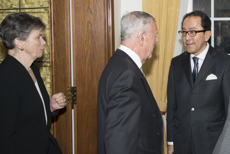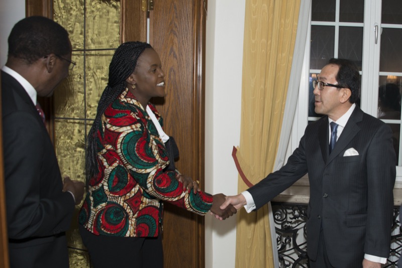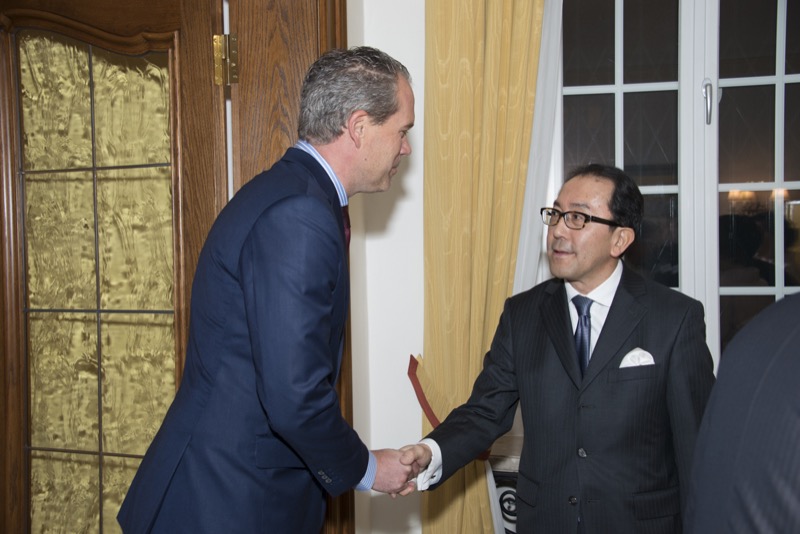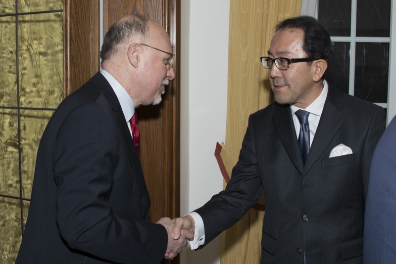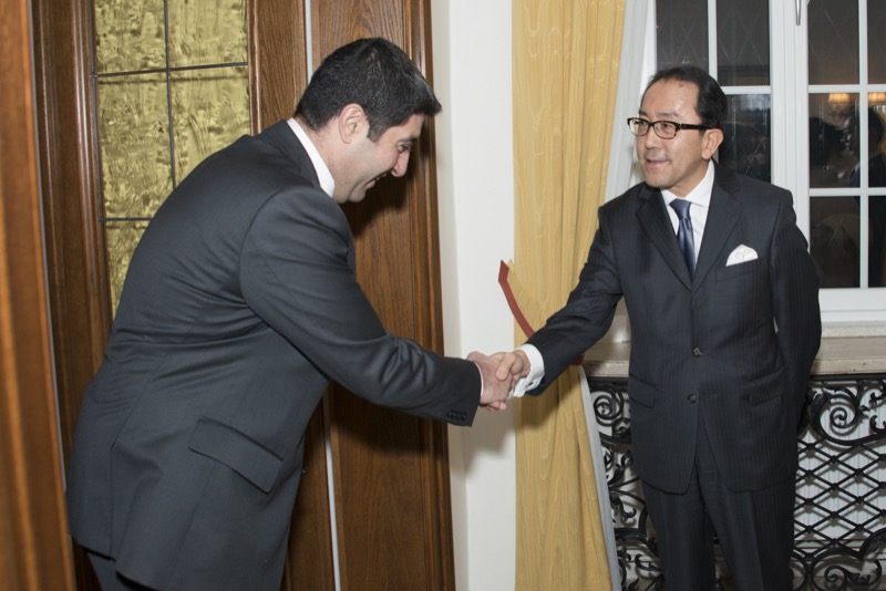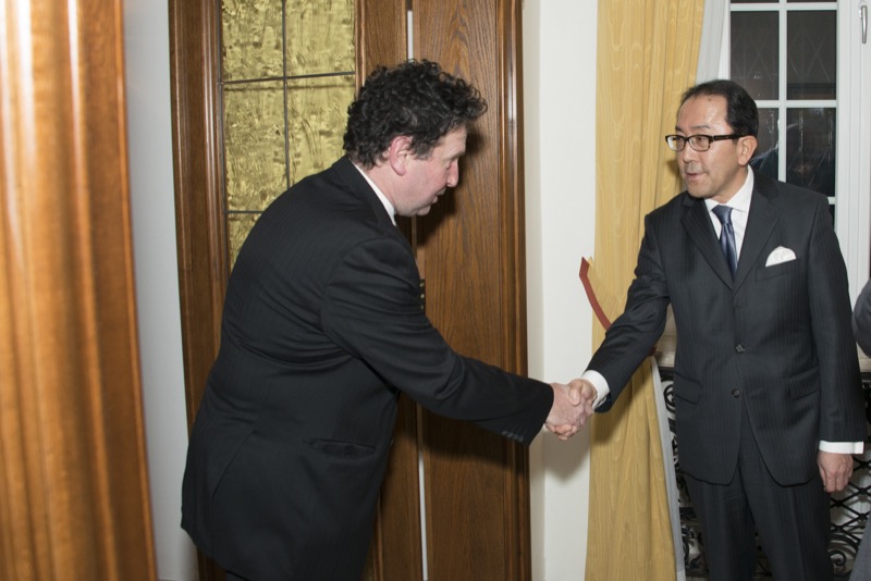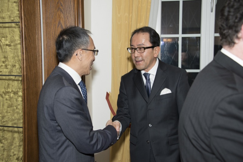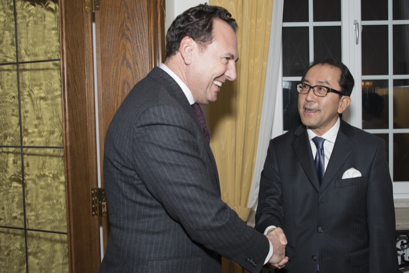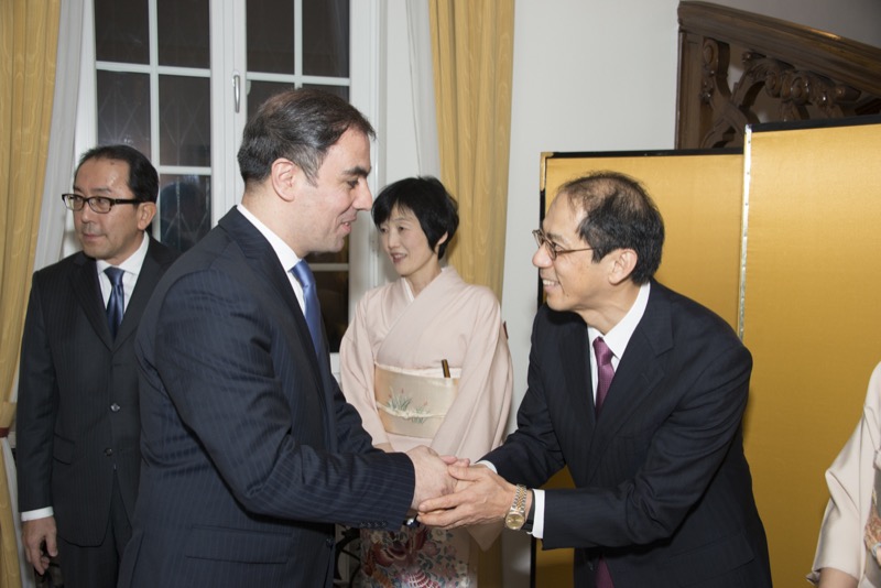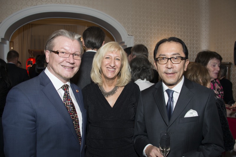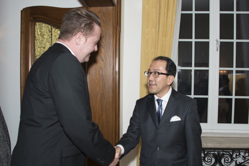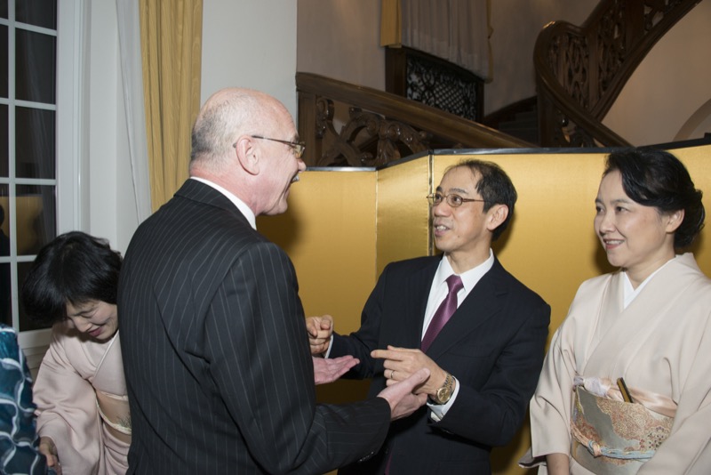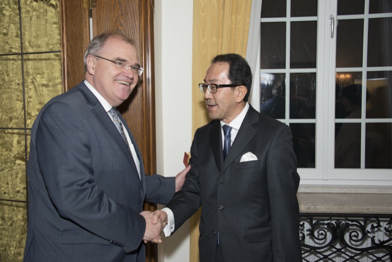 Aus Anlass des 83. Geburtstages Seiner Majestät des Kaisers Akihito luden S.E. Kiyoshi Koinuma, Botschafter von Japan, und Frau Meiko Koinuma sowie der Ständige Vertreter Japans bei den internationalen Organisationen, S.E. Mitsuro Kitano und Frau Yoshie Kitano, zu einem Empfang in die Residenz.