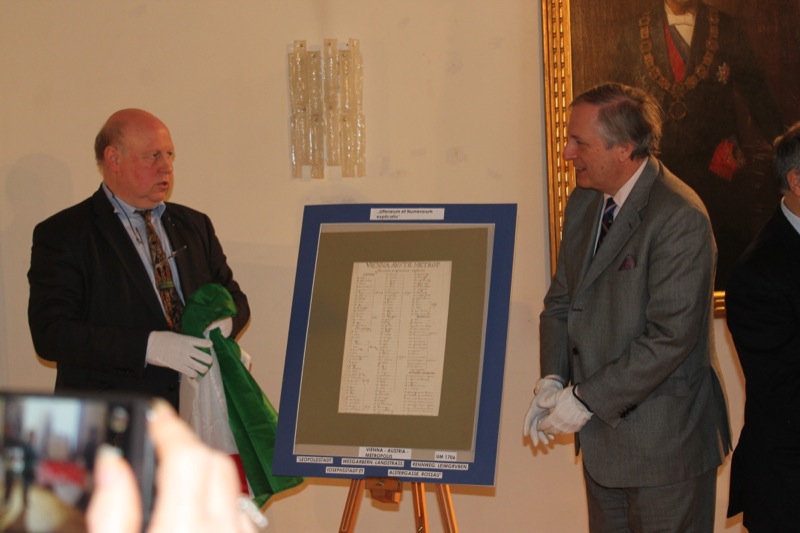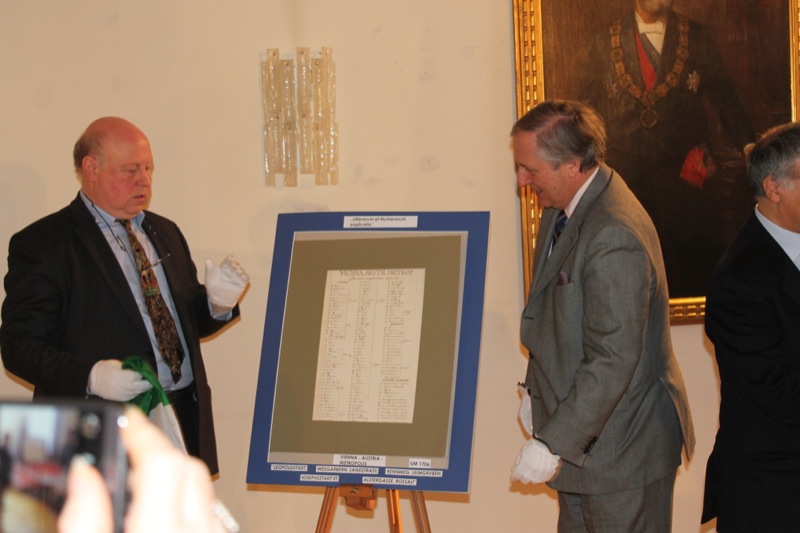 Präsentiert wurde der Öffentlichkeit dieser Fund, der bislang gefaltet und unauffällig in einem Wiener Schrank lag und sich im Privatbesitz befindet, am 1. Februar 2017 von der Bezirksvorsteher-Stellvertreterin des Ersten Wiener Gemeindebezirks Mag. Isabelle Jungnickel und Dr. Stefaan Missinne, IMCOS REPRESENTANT AUSTRIA und ÖBG Präsident, im Alten Rathaus der Stadt Wien in der Wipplingerstraße 8.