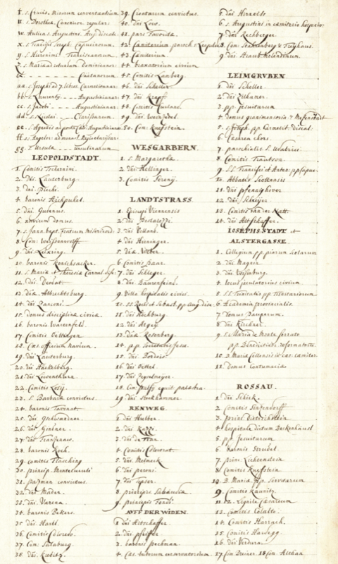 Die älteste Reinzeichnung der HABSBURGER METROPOLE WIEN - DER HEUTIGEN BEZIRKE 1. SAMT ANGRENZENDEN BEZIRKSTEILE 2. bis 9. - und eine Namensliste der Eigentümer inkl. des Ersten Wiener Kaffee Hauses wurde in Wien entdeckt.