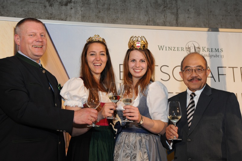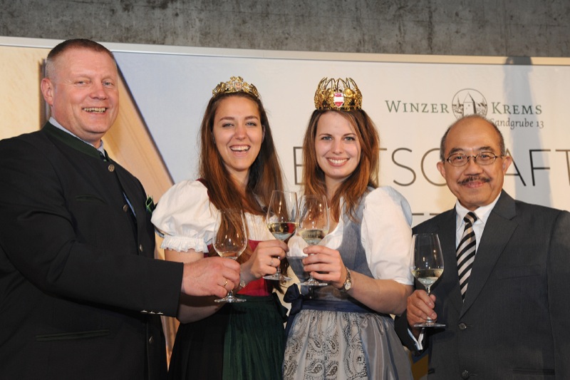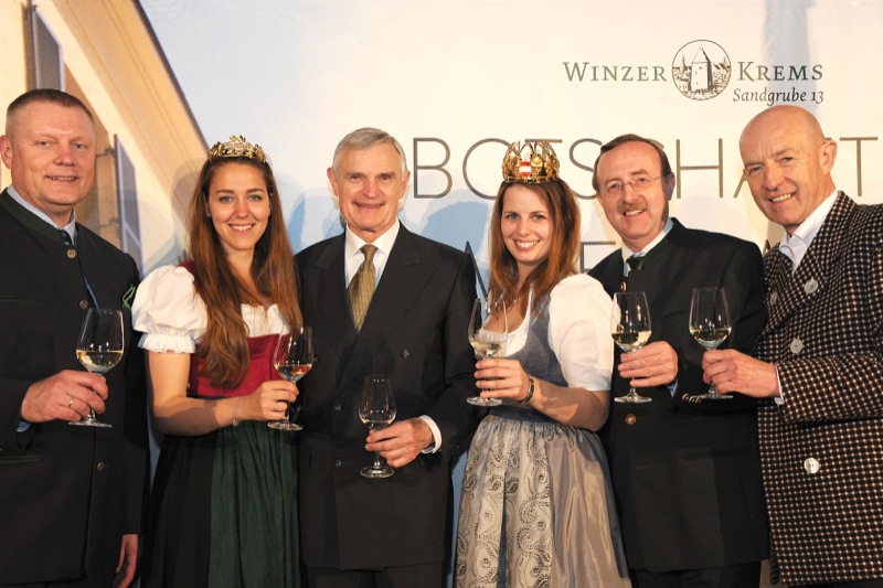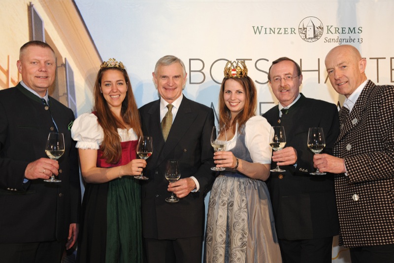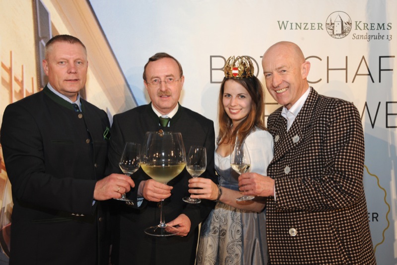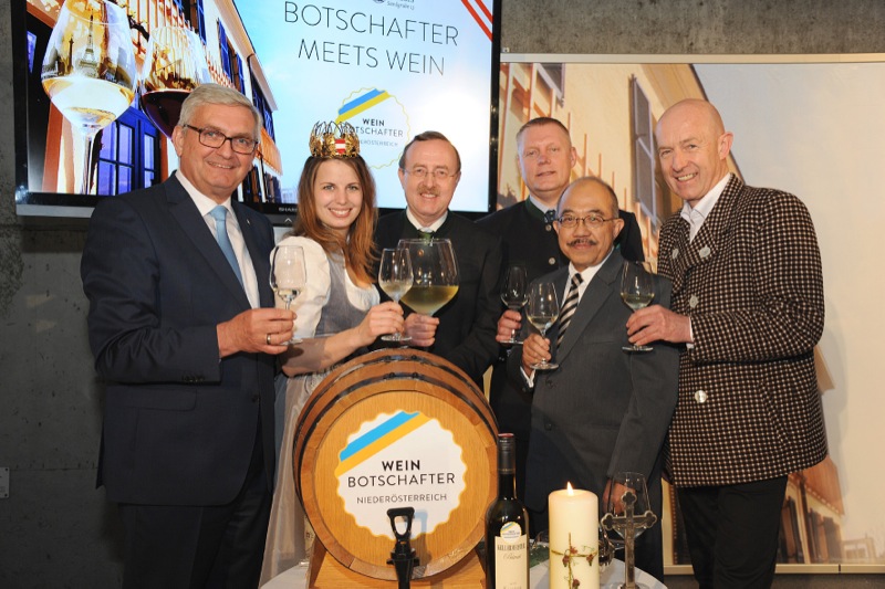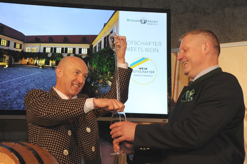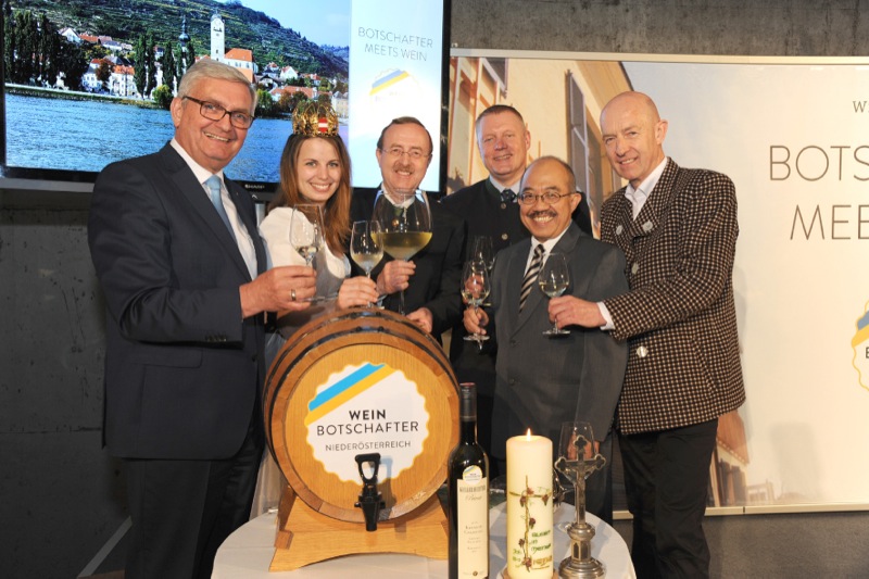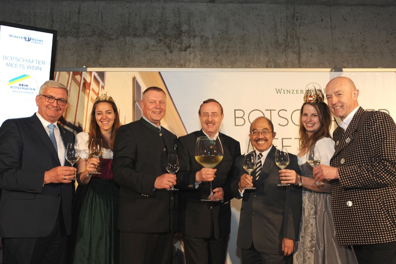 Der niederösterreichische Weinbotschafter Landespolizeidirektor Hofrat Dr. Franz Prucher und sein Weinpate Dir. Franz Ehrenleitner luden zur Veranstaltung "Botschafter meets Wein" nach Krems. Im Mittelpunkt stand die Weinsegnung des "Botschafterweins", ein Grüner Veltliner 2016 vom Kremser Goldberg, ein würdiger Botschafter für den Kremser Wein in die ganze Welt.