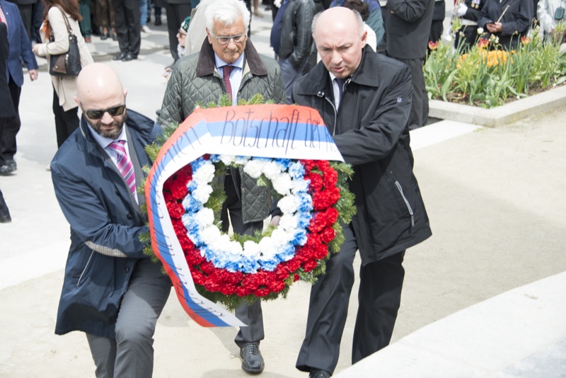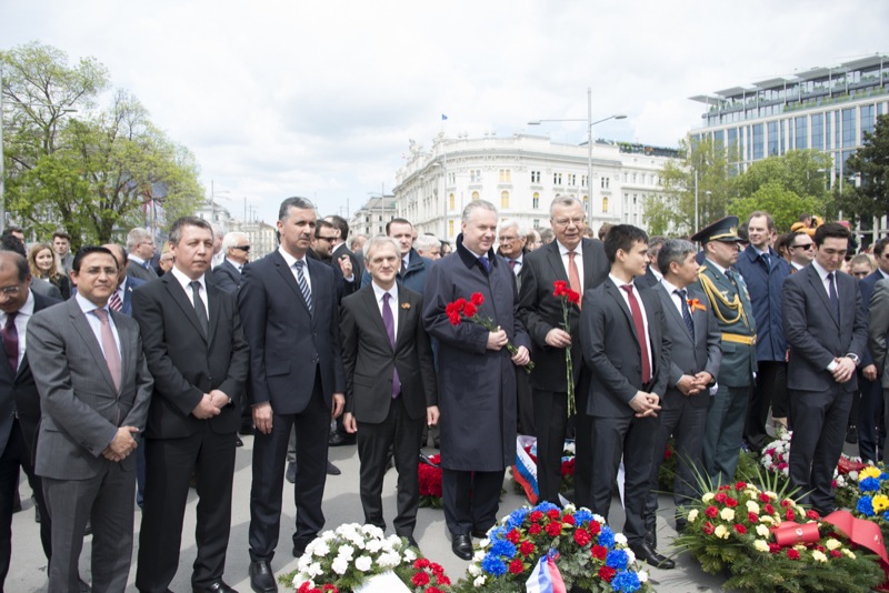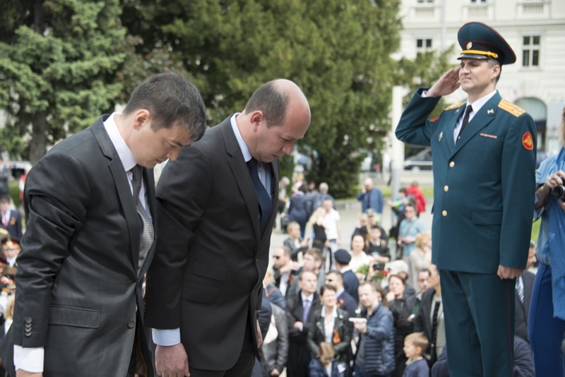 Vor 72 Jahren wurde der 2 Weltkrieg beendet, zu diesem Anlass wurden bei den Grabstätten der gefallenen Soldaten der Roten Armee am Zentralfriedhof und beim Ehrendenkmal der für die Befreiung Wiens gefallenen Soldaten der Roten Armee am Schwarzenbergplatz Kränze niedergelegt. Anschliessend gab es einen Empfang in der Botschaft der Russischen Föderation.