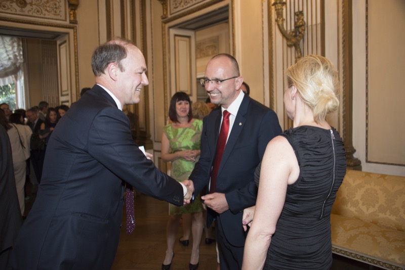 luden der Italienische Botschafter, S.E. Giorgio Marrapodi, und Frau Marrapodi, die Ständige Vertreterin Italiens bei den Internationalen Organisationen, Botschafterin Maria Assunta Accili und Dr. Paolo Sabbatini, sowie der Ständige Vertreter Italiens bei der OSZE, Botschafter Alessandro Azzoni und Frau Azzoni, zu einem Empfang in die Botschaft.
