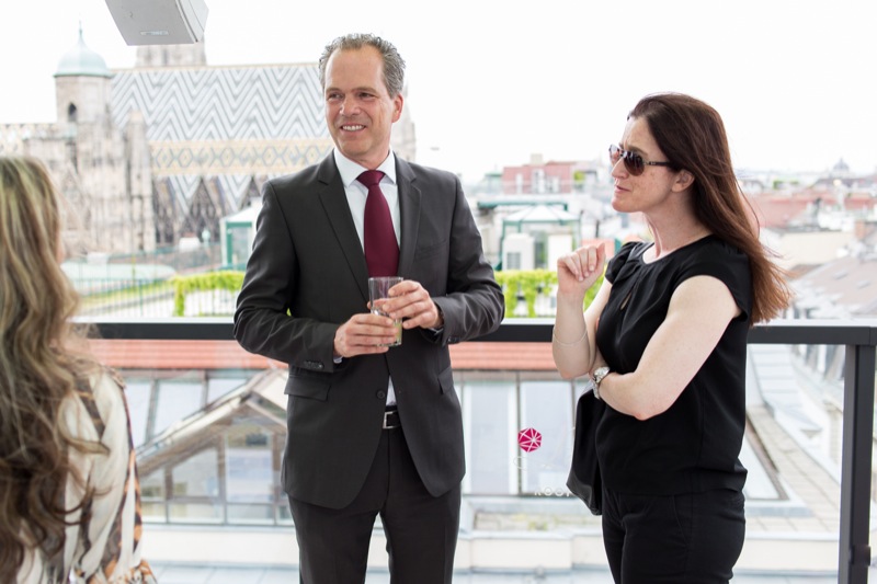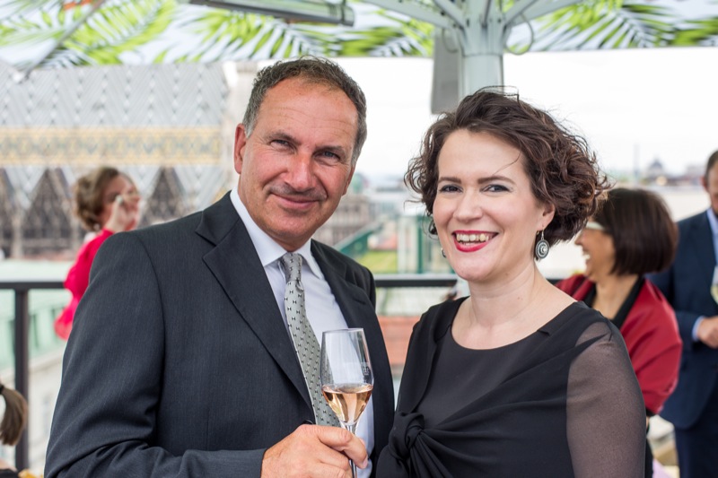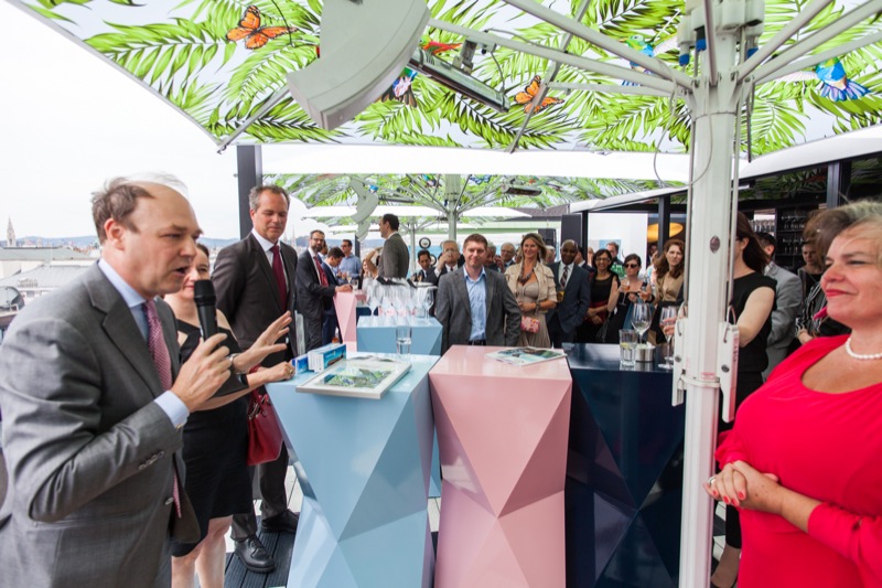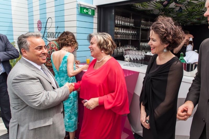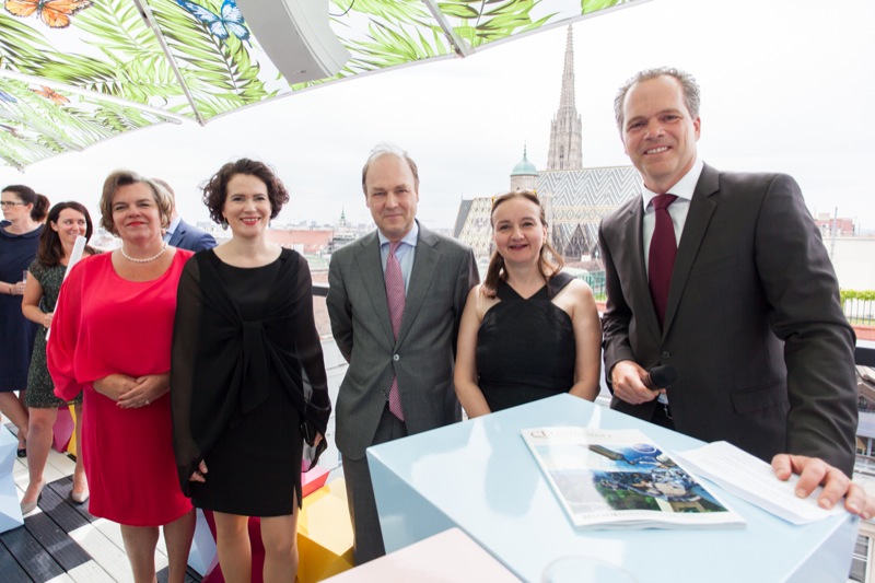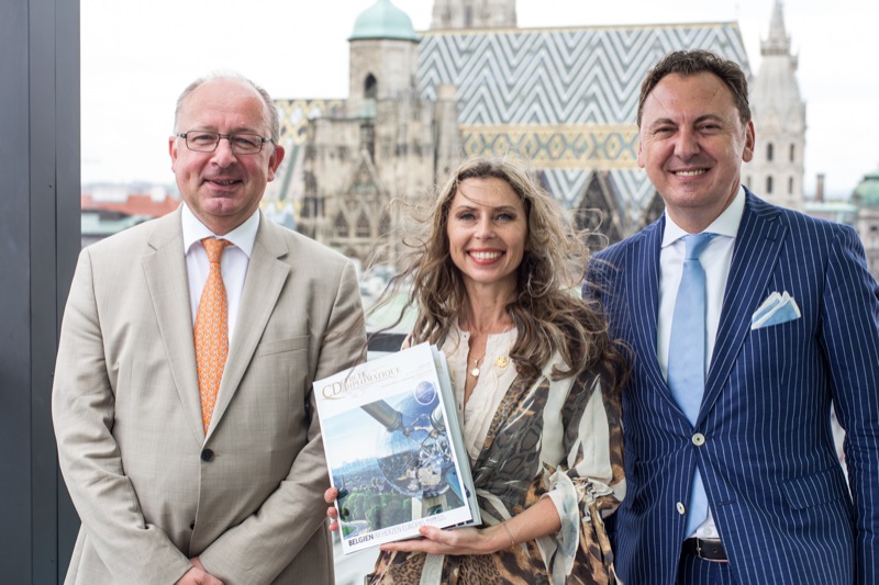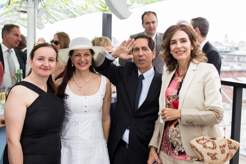 Zur Präsentation der Sommer-Ausgabe von Cercle Diplomatique luden die Herausgeber Andrea Fürnweger & Alexander Bursky gemeinsam mit Isabella Wexberg, Direktorin des Hotel Lamée, zu einem Empfang über den Dächern Wiens. Die Dachterrasse des Hotel Lamée in der Wiener Innenstadt bot eine luftige & farbenfrohe Kulisse für diese Veranstaltung, bei der wir neben dem Ehrengast, S.E. Willem van de Voorde, Botschafter des Königreich Belgiens in Österreich, und seiner Frau, viele weitere Gäste aus Diplomatie, Wirtschaft und Kultur begrüssen konnten.