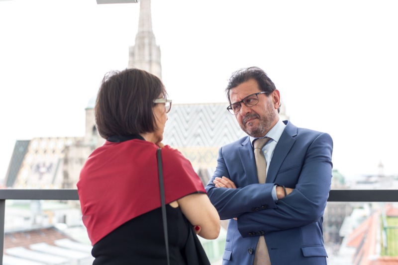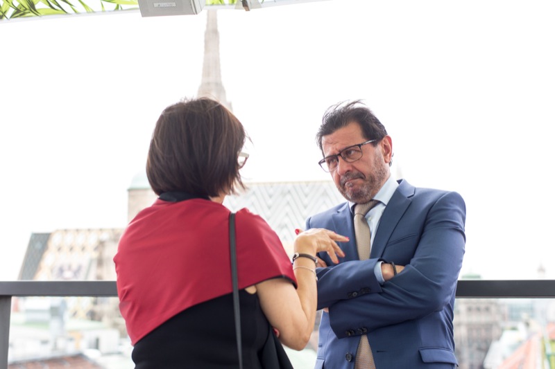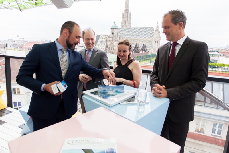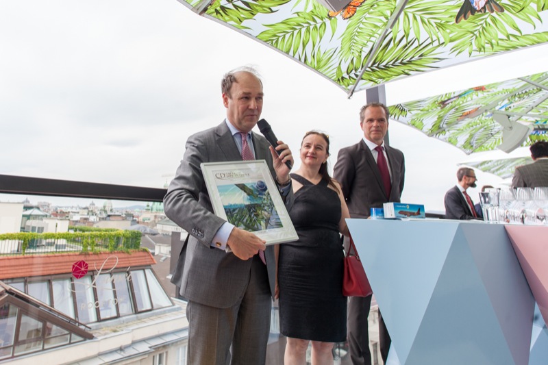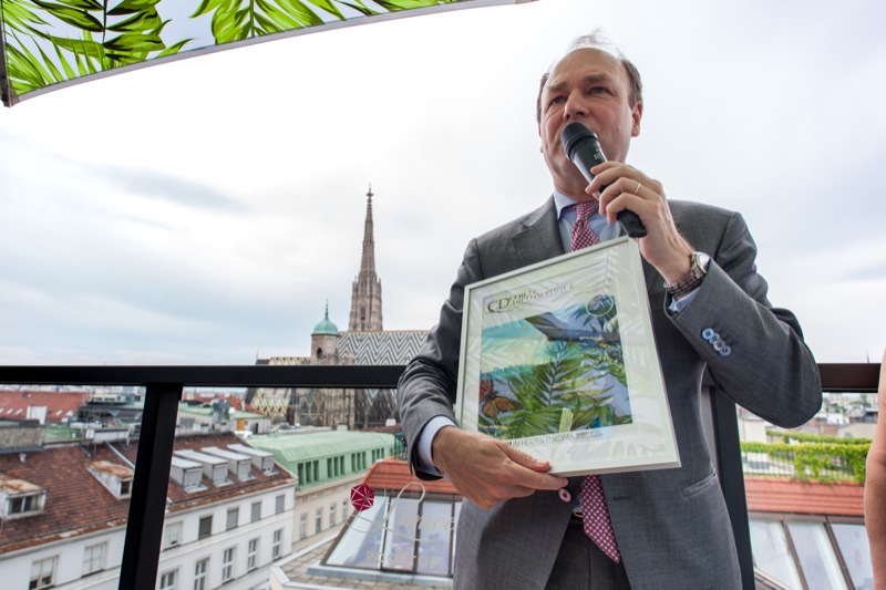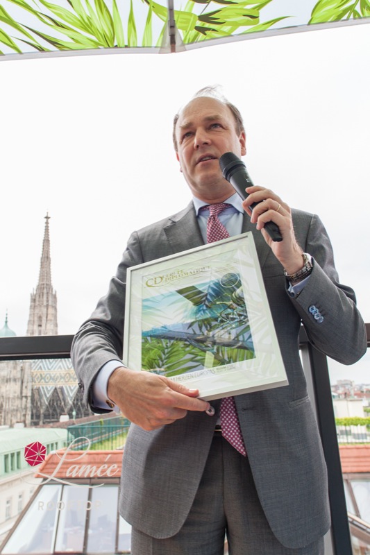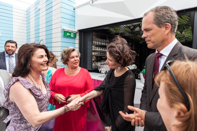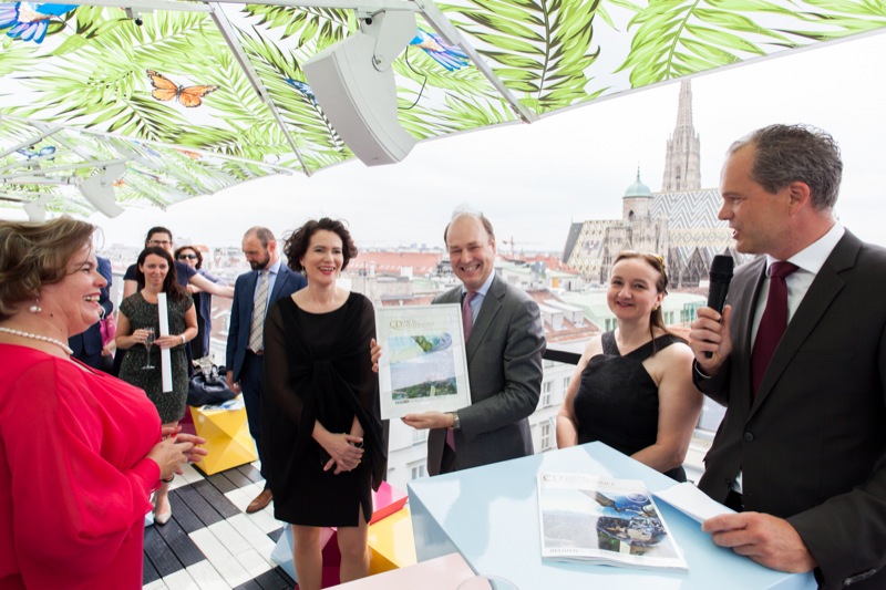 Zur Präsentation der Sommer-Ausgabe von Cercle Diplomatique luden die Herausgeber Andrea Fürnweger & Alexander Bursky gemeinsam mit Isabella Wexberg, Direktorin des Hotel Lamée, zu einem Empfang über den Dächern Wiens. Die Dachterrasse des Hotel Lamée in der Wiener Innenstadt bot eine luftige & farbenfrohe Kulisse für diese Veranstaltung, bei der wir neben dem Ehrengast, S.E. Willem van de Voorde, Botschafter des Königreich Belgiens in Österreich, und seiner Frau, viele weitere Gäste aus Diplomatie, Wirtschaft und Kultur begrüssen konnten.