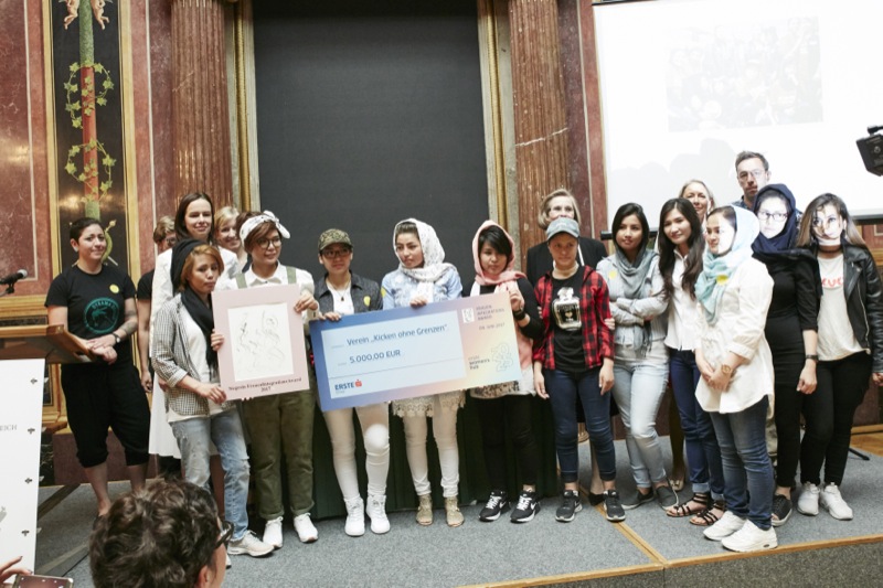 Die "Austrian Section of the European Union of Women" überreichte kürzlich im Rahmen einer festlichen Veranstaltung im Parlament den FrauenIntegrationsAward 2017. Aus den drei nominierten Initiativen "Kicken ohne Grenzen", "Kreativ Aktiv" sowie "Nachbarinnen Oberösterreich - migrare" ging die Initiative "Kicken ohne Grenzen" von Katarina Lackner als Siegerin hervor.