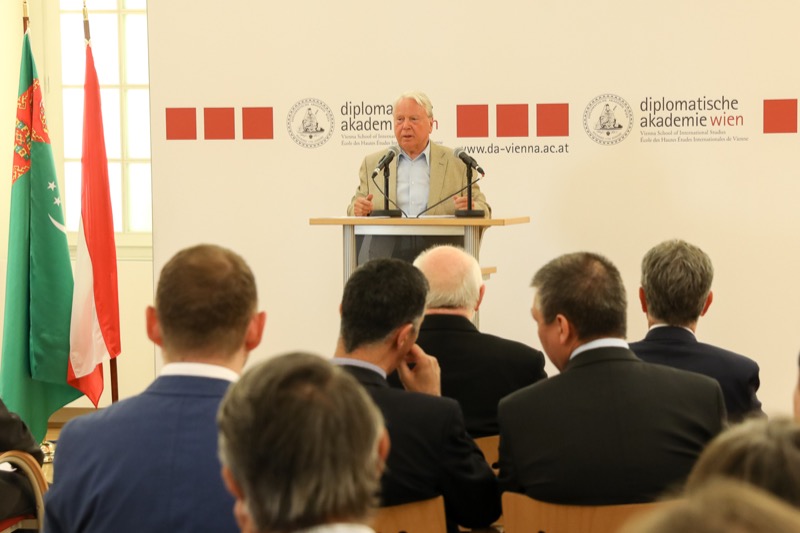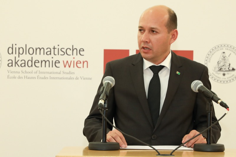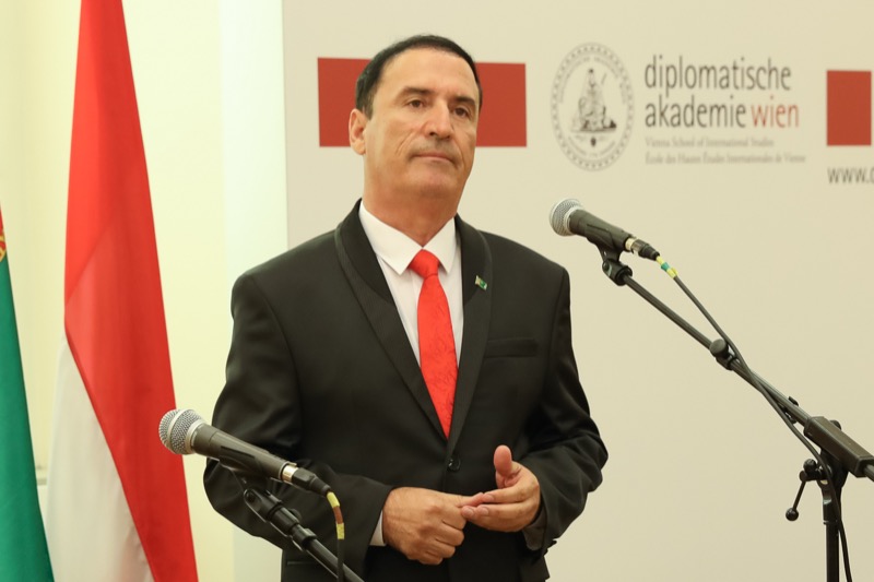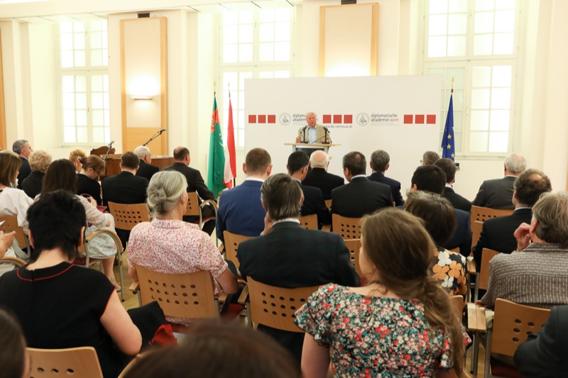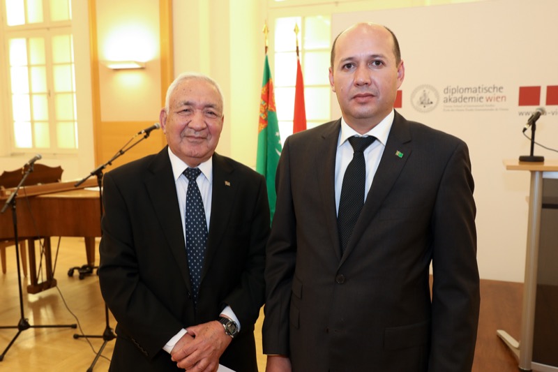 Anlässlich der Aufnahme diplomatischer Beziehungen zwischen Turkmenistan und Österreich vor 25 Jahren lud der Botschafter von Turkmenistan, S.E. Silapberdi Nurberdiev, zu einer Veranstaltung in die Diplomatische Akademie.