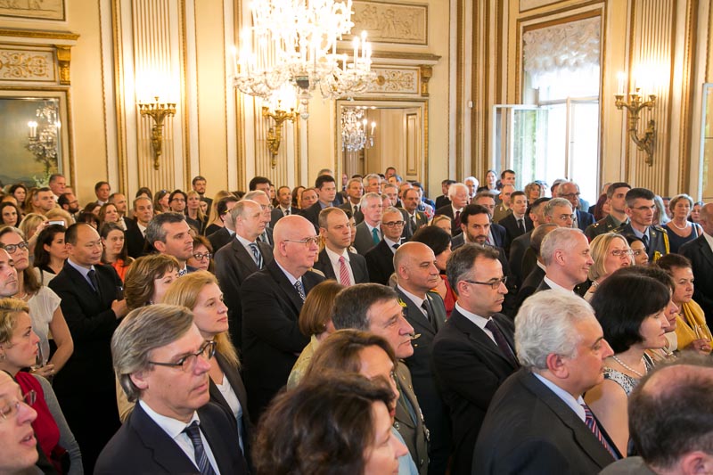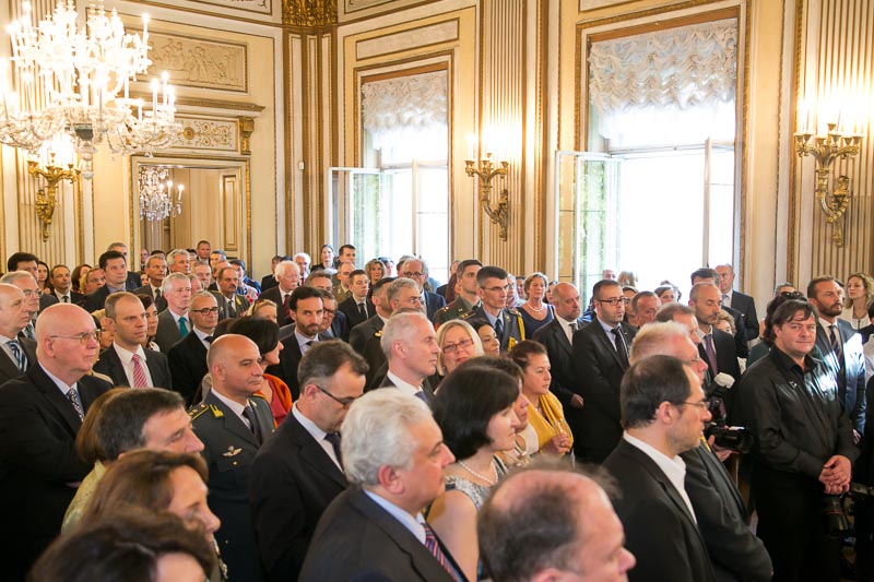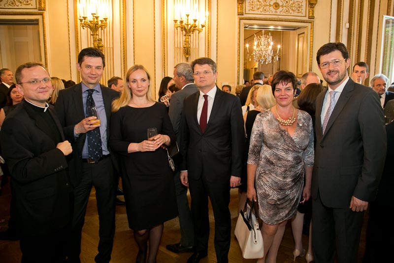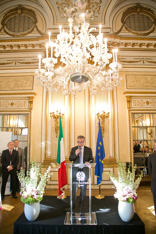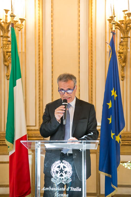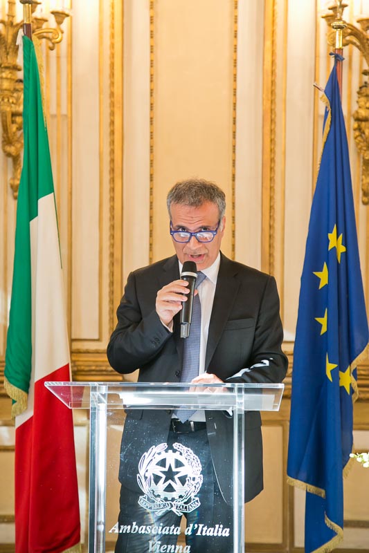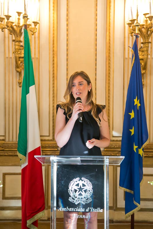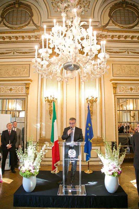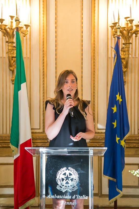 S.E. Giorgio Marrapodi und Frau Marrapodi sowie der ständige Vertreter Italiens bei der OSZE und Frau Rocco di Torrepadula luden anlässlich des italienischen Nationalfeiertages zu einem Empfang in das Palais Metternich, Sitz der italienischen Botschaft. Anwesend war auch Maria Elena Boschi, Ministerin für Verfassungsreform.
