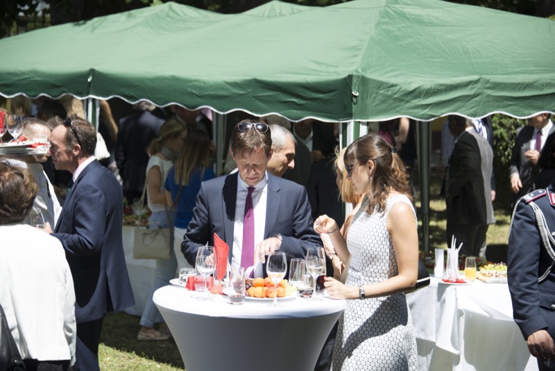 I.E. Alena Kupchyna, Botschafterin der Republik Belarus in Österreich,ständige Vertreterin bei den internationalen Organisationen und Delegationsleiterin bei der OSZE, lud anlässlich des Unabhängigkeitstages zu einem Garten-Empfang in die Botschaft.