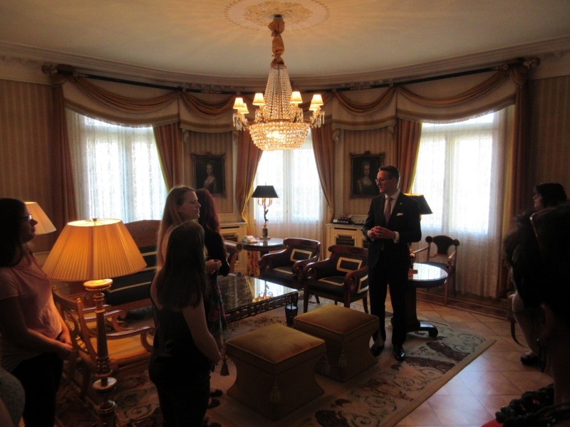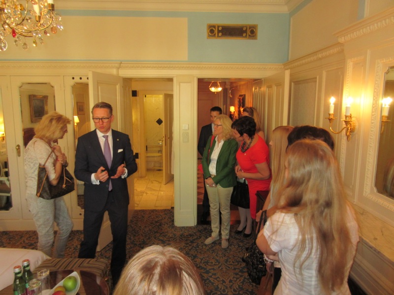 Nach einem gemeinsamen Frühstück nahm sich Herr Generaldirektor Krischek noch die Zeit für eine persönliche Führung durch sein Haus. Höhepunkt war die Besichtigung der „Prince of Wales“ Suite, in der bereits Persönlichkeiten wie König Juan Carlos, König Ibn Saud oder Paul McCartney übernachtet hatten.