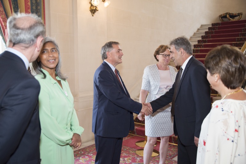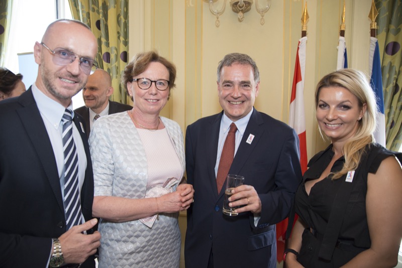 S.E. Francois Saint-Paul, neuer Botschafter der Republik Frankreich in Österreich, S.E. Jean-Louis Falconi, ständiger Vertreter Frankreichs bei den Internationalen Organisationen und I.E. Véronique Roger-Lacan, ständige Vertreterin bei der OSZE, luden anlässlich des Nationalfeiertages zu einem Empfang in die prachtvolle Botschaft.