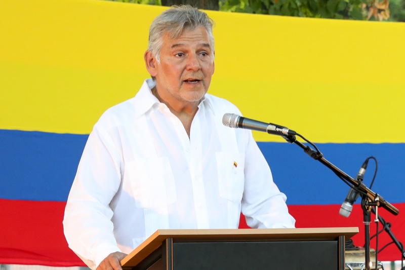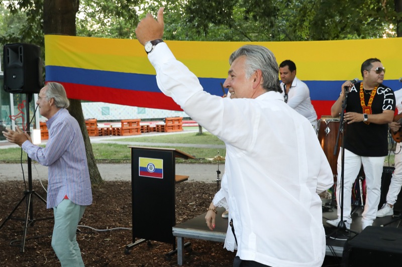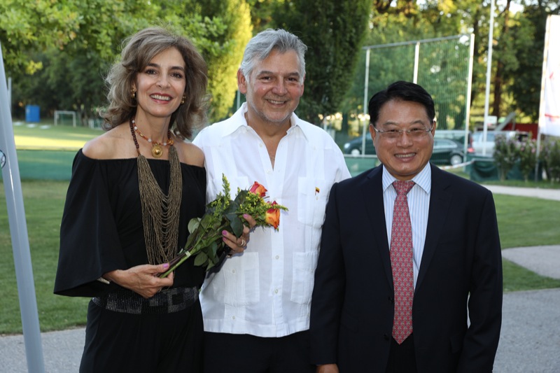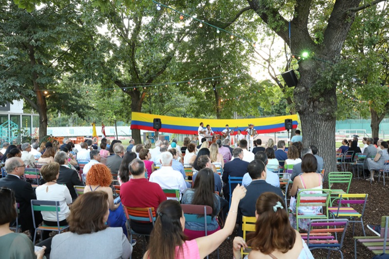 S.E. Jaime Alberto Cabal Sanclemente, Botschafter der Republik Kolumbien, und Frau Claudia Calero de Cabal, luden anlässlich des 207. Unabhängigkeitstages zu einer Gartenparty in den Wiener Prater. Bei prachtvollem Wetter spielte die kolumbianische Band "Los Amigos del Vallenato" und kaum einer der Gäste schwang nicht das Tanzbein.