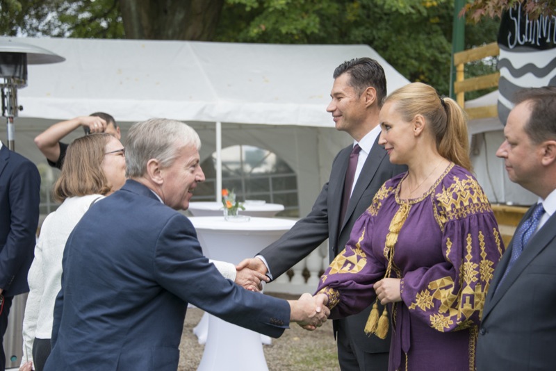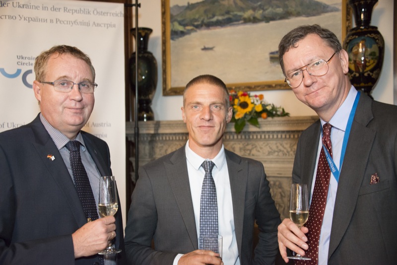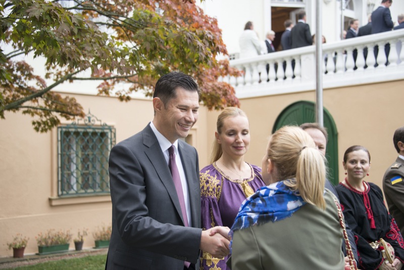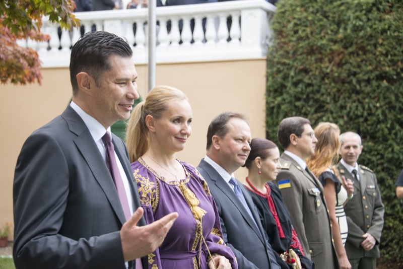 Anlässlich des Unabhängigkeitstages und der Aufnahme diplomatischer Beziehungen mit Österreich vor 25 Jahren luden S.E. Olexander Scherba, Botschafter der Ukraine in Österreich, und Frau Yaroslawa Scherba sowie der ständige Vertreter der Ukraine bei den Internationalen Organisationen, S.E. Ihor Prokopchuk, und Frau Oksana Prokopchuk zu einem Empfang in die prachtvolle Botschaft.