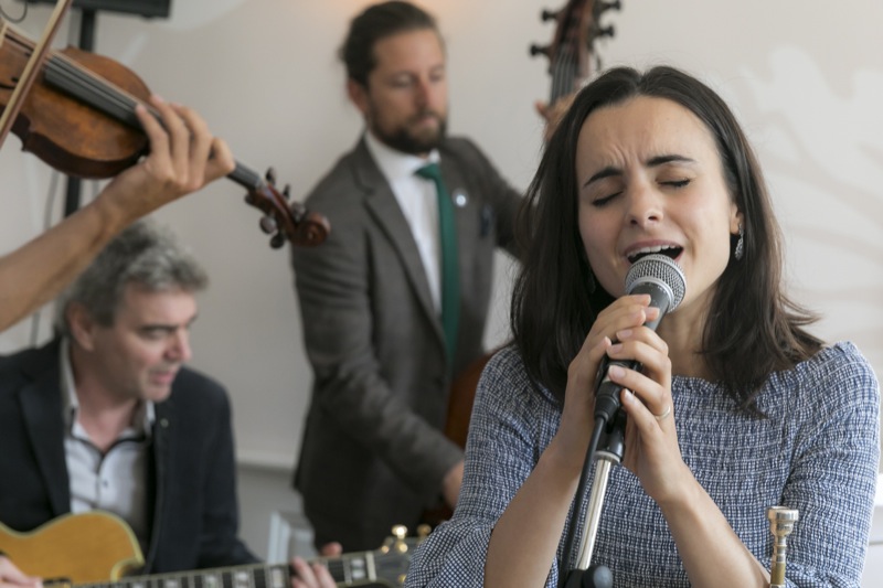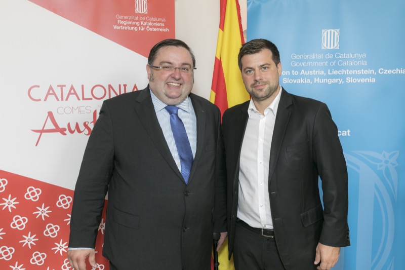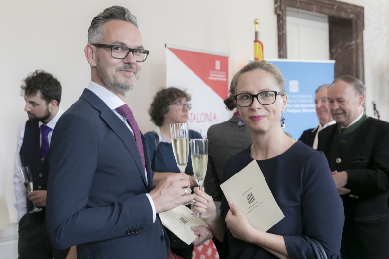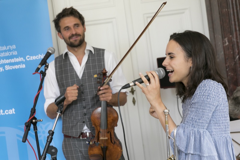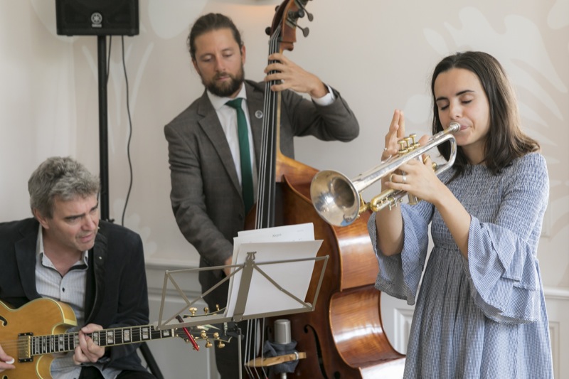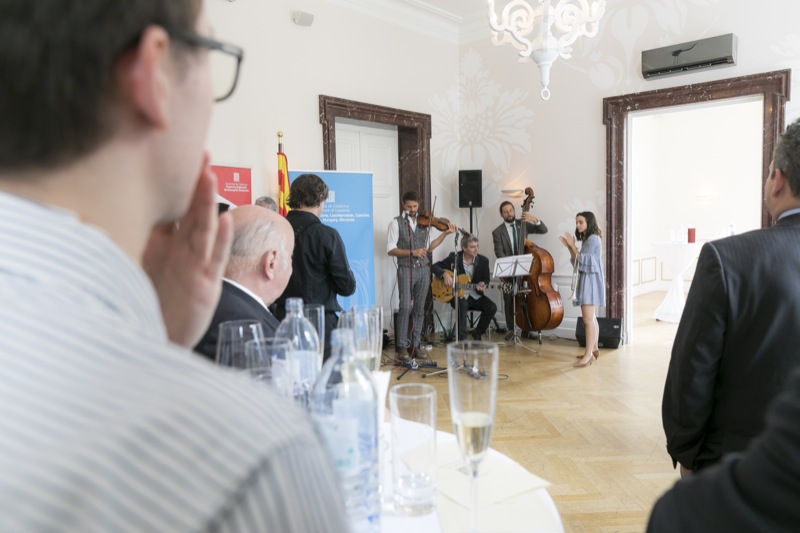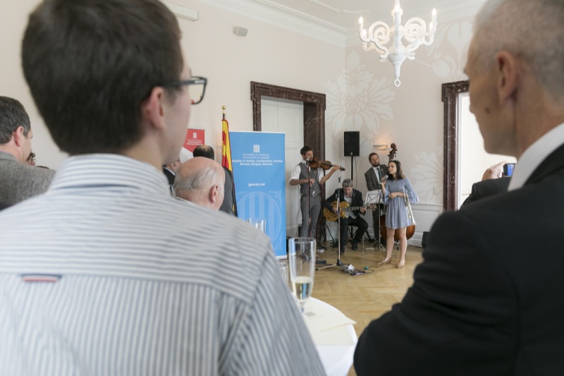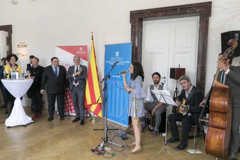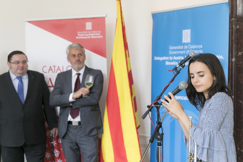Der Gesandte der katalanischen Regierung, Adam Casals, lud anlässlich des katalanischen Nationalfeiertages zu einem Cocktailempfang und Jazzkonzert von Andrea Motis in die Bel Etage des Landtmann.